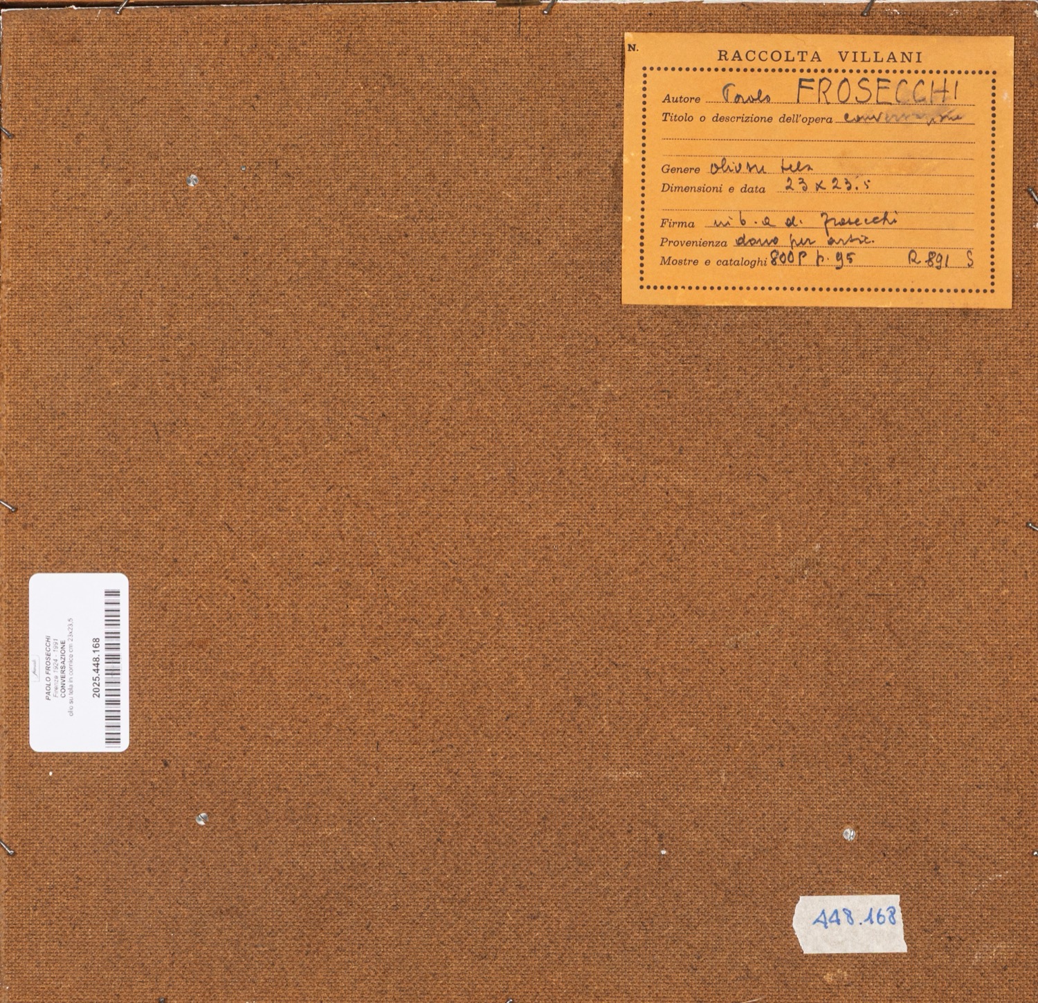 Provenienza: "Raccolta Villani" etichetta al retro con dettagli dell'opera.