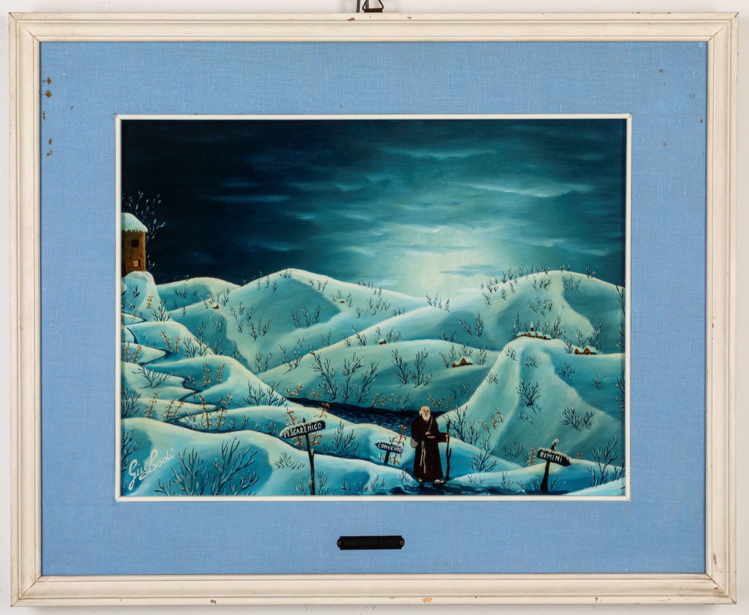 olio su cartone telato in cornice