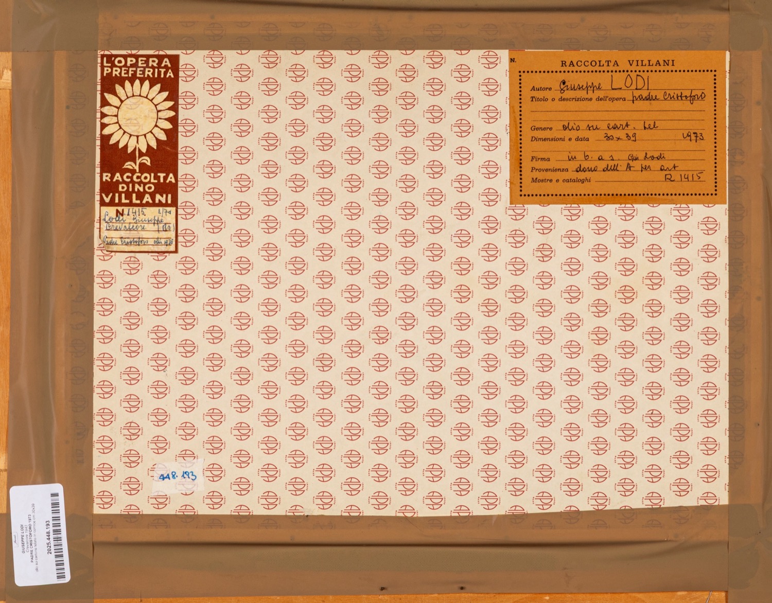 Provenienza: "Raccolta Villani" etichetta al retro con dettagli dell'opera.