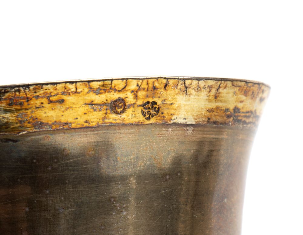 Coppa punzonata con il marchio camerale in uso a Roma (Stato Pontificio) per gli oggetti in argento, non perfettamente leggibile, rappresentato dal padiglione con le chiavi incrociate di San Pietro, in uso all'inizio del XVIII secolo.