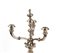 piede circolare sagomato con decori floreali, fusto scanalato con nodo basso e ulteriori decorazioni florali, sul quale si innesta la parte superiore a tre bracci con tre fiamme laterali ed una centrale. Basi appesantite.