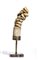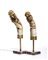 in corna di cervo, montate su basi tornite in ottone con plinti in pietra marmorea. Le due sculture rappresentano personaggi caricaturali, raffigurati con volti fortemente espressivi, barbe folte, sopracciglia marcate e bocche aperte in atteggiamenti vivaci e teatrali. I copricapi rustici e gli abiti dalle pieghe profonde contribuiscono a intensificare l’effetto satirico e popolare delle figure, volutamente inclinate per suggerire un dialogo ironico tra i due soggetti.