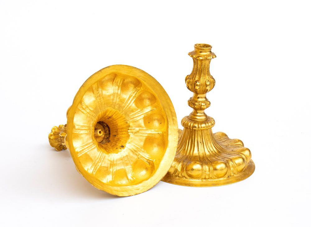 Coppia candelieri tedeschi in metallo dorato - Germania, XIX secolo