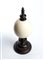 montato su una base in legno tornito a forma circolare decorata con sottili fasce sovrapposte. La parte superiore è completata da un coronamento in legno, costituito da elementi circolari sovrapposti.