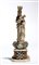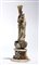 scolpita a tutto tondo, posta su una ricca decorazione di nuvole in madreperla e poggiante su una base in alabastro.