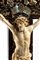 La figura del Cristo scolpita in avorio di elefante, finemente scolpito a tutto tondo e composto da tre parti unite tra loro, il corpo con il perizoma e le braccia. La figura è caratterizzata da un modellato accurato, proporzioni armoniose e un realismo anatomico tipico della scultura devozionale di alta qualità. La croce, in palissandro, è impreziosita da ricchi intarsi in madreperla che formano motivi floreali e ornamentali distribuiti lungo tutta la superficie, culminando in terminali trilobati di gusto barocco.