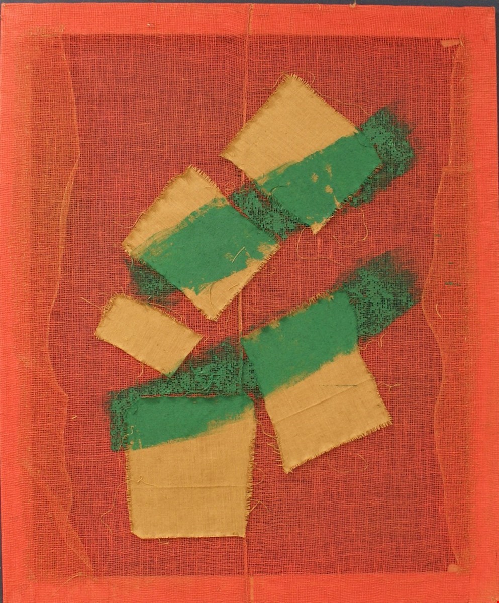 Salvatore Emblema, SENZA TITOLO, 2005, Terra colorata su tela di iuta detessuta, 170x140 cm.