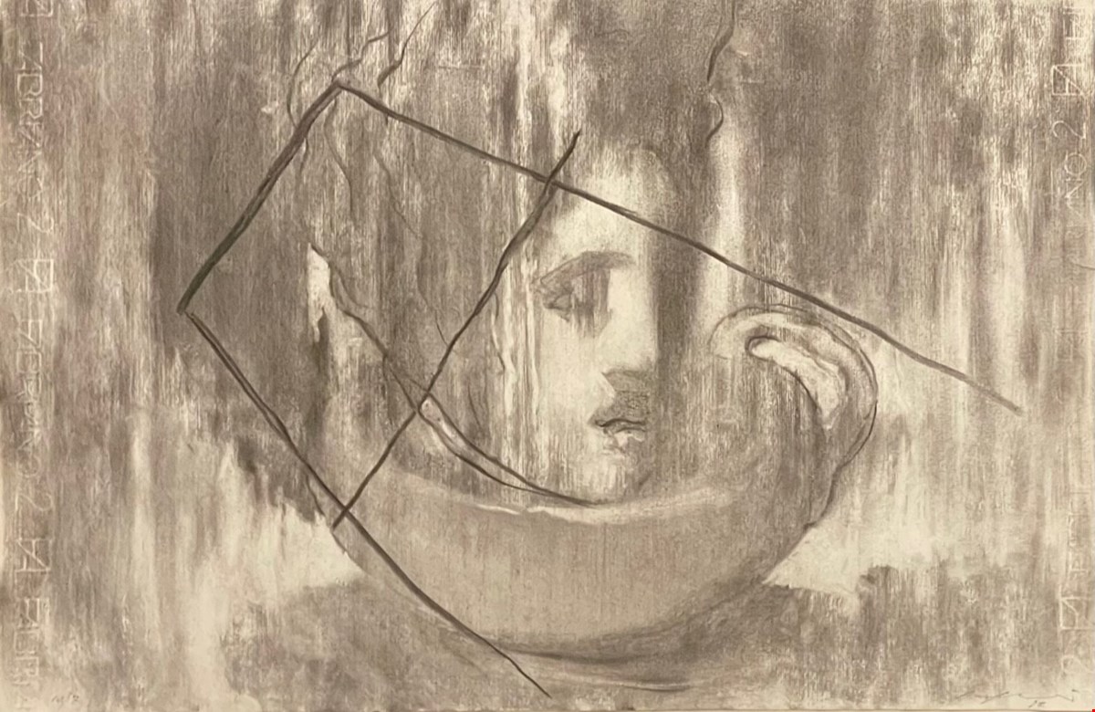 Omar Galliani, SENZA TITOLO, anni Duemila, Carboncino e grafite su cartoncino, 33x47,5 cm.
