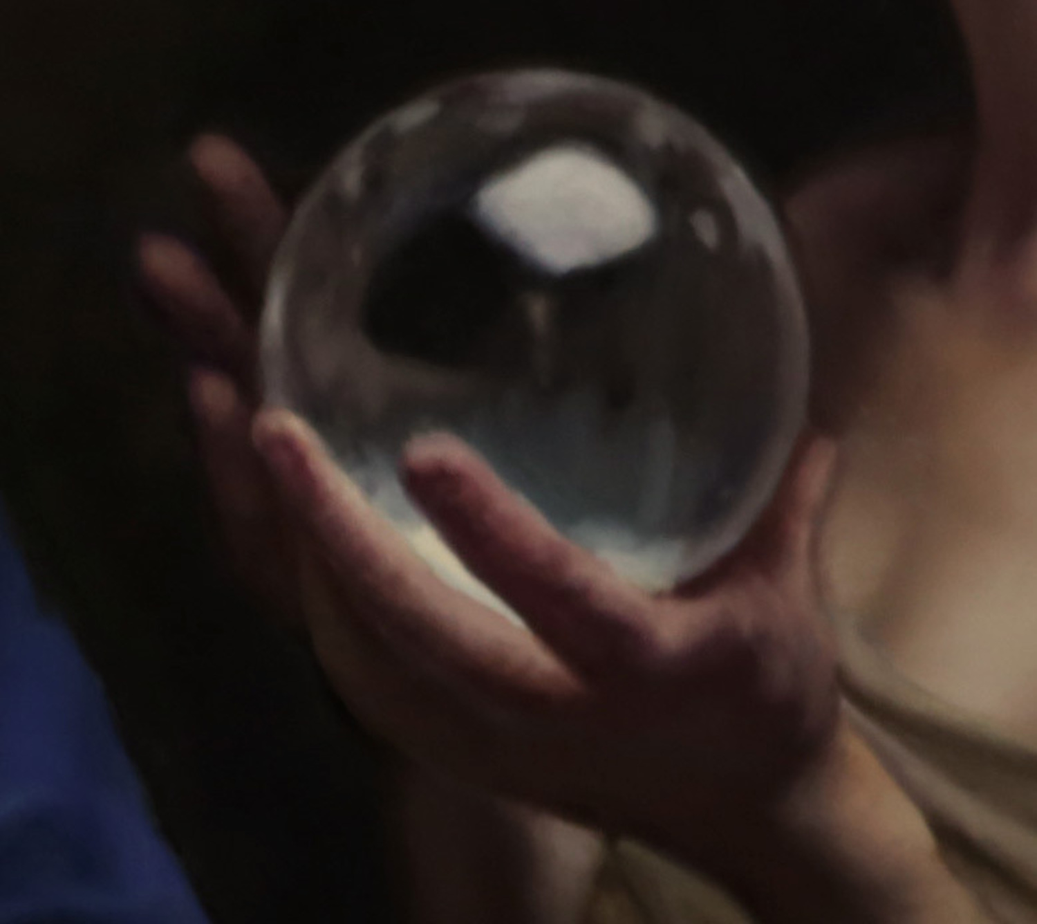 Un uomo dai capelli bianchi si incontra in un corridoio con due figure femminili, probabilmente le figlie. Le loro posture sembrano delineare un evento particolare. Le sfere rappresentano doni dal cielo: uno di questi potrebbe essere, ad esempio, la guarigione dell’uomo.