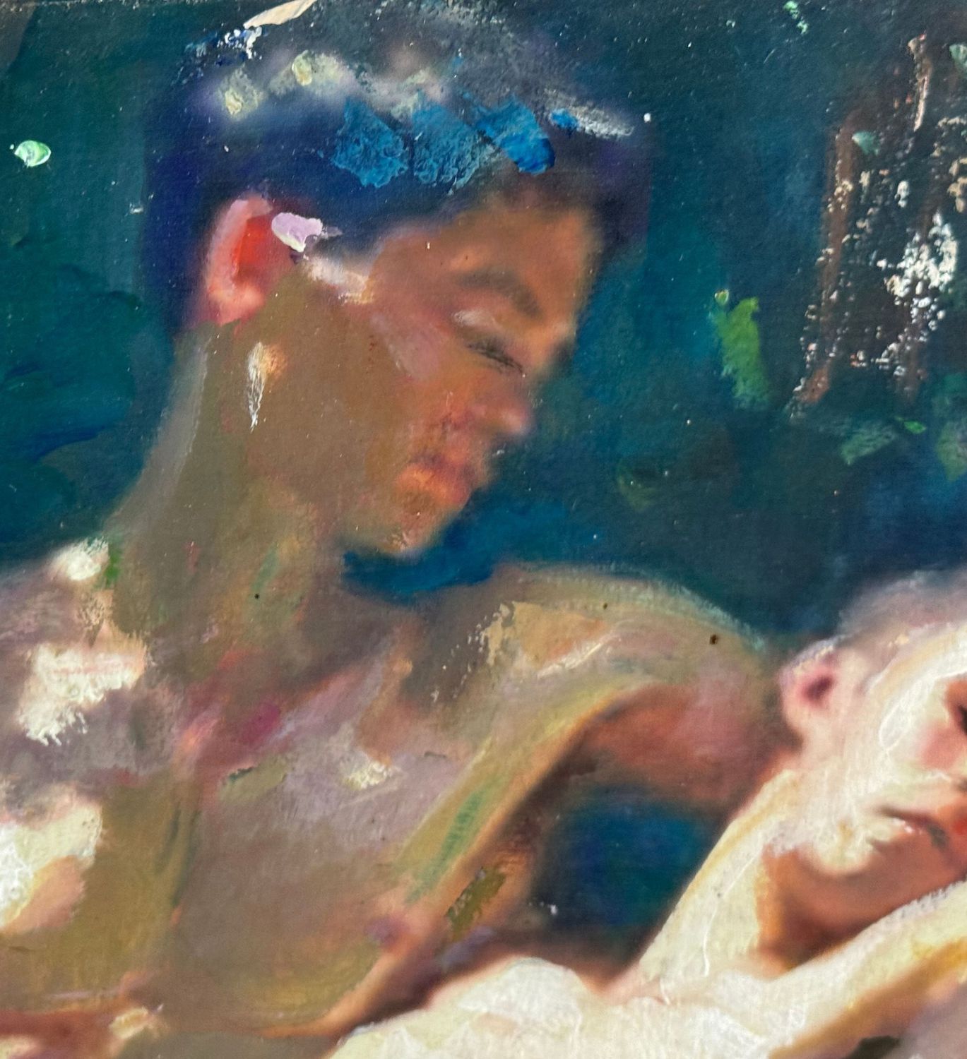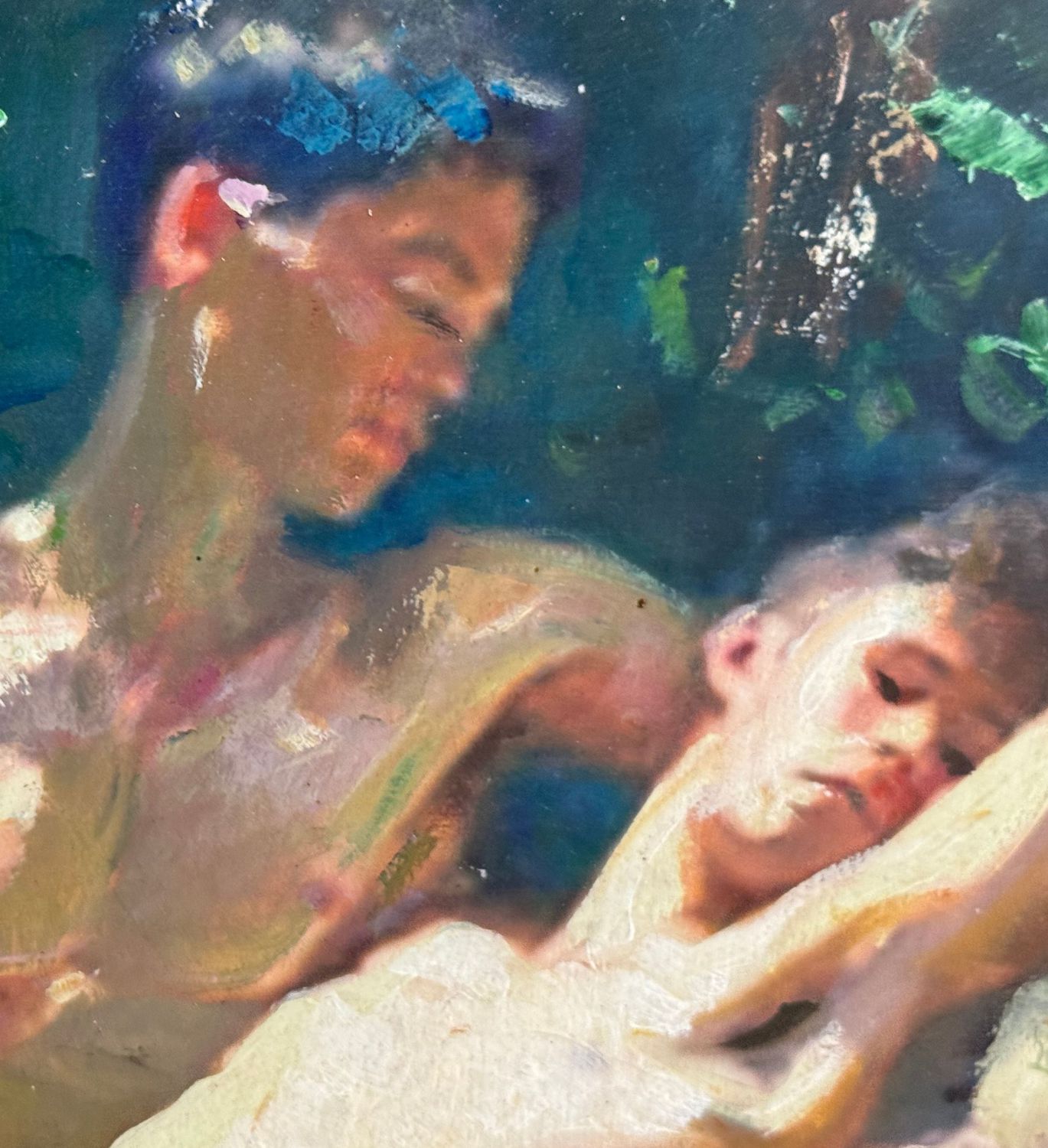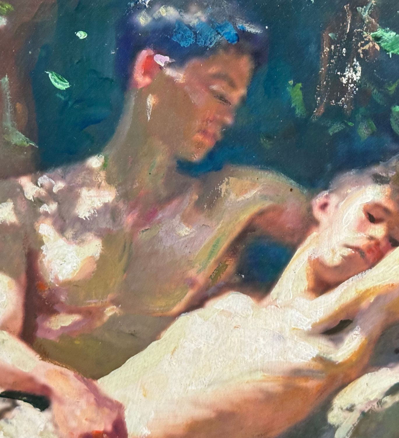 Dipinto olio su cartoncino, periodo XX secolo, scuola Italiana, raffigurante Ritratto di due figure maschili. Dimensioni compreso cornice: 46x42 cm. Dimensioni interno cornice: 32x28 cm. Da artista anonimo. Opera in buone condizioni.