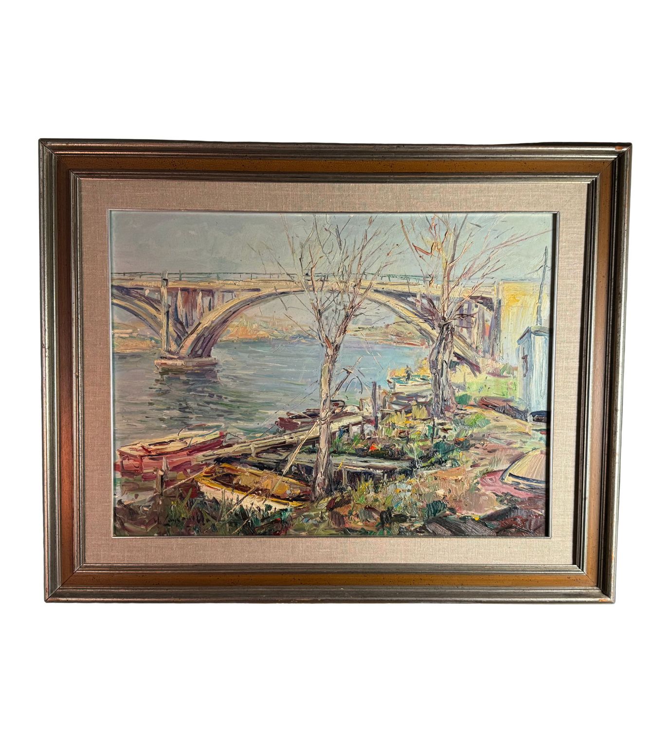 Dipinto olio su pannello, periodo XX secolo, scuola Italiana, raffigurante Paesaggio marino con ponte. Dimensioni compreso cornice: 82x102 cm. Dimensioni interno cornice: 60x80 cm. Firmato in basso a sinistra Nicola Canzanella. Opera in buone condizioni e di eccellente qualità artistica.