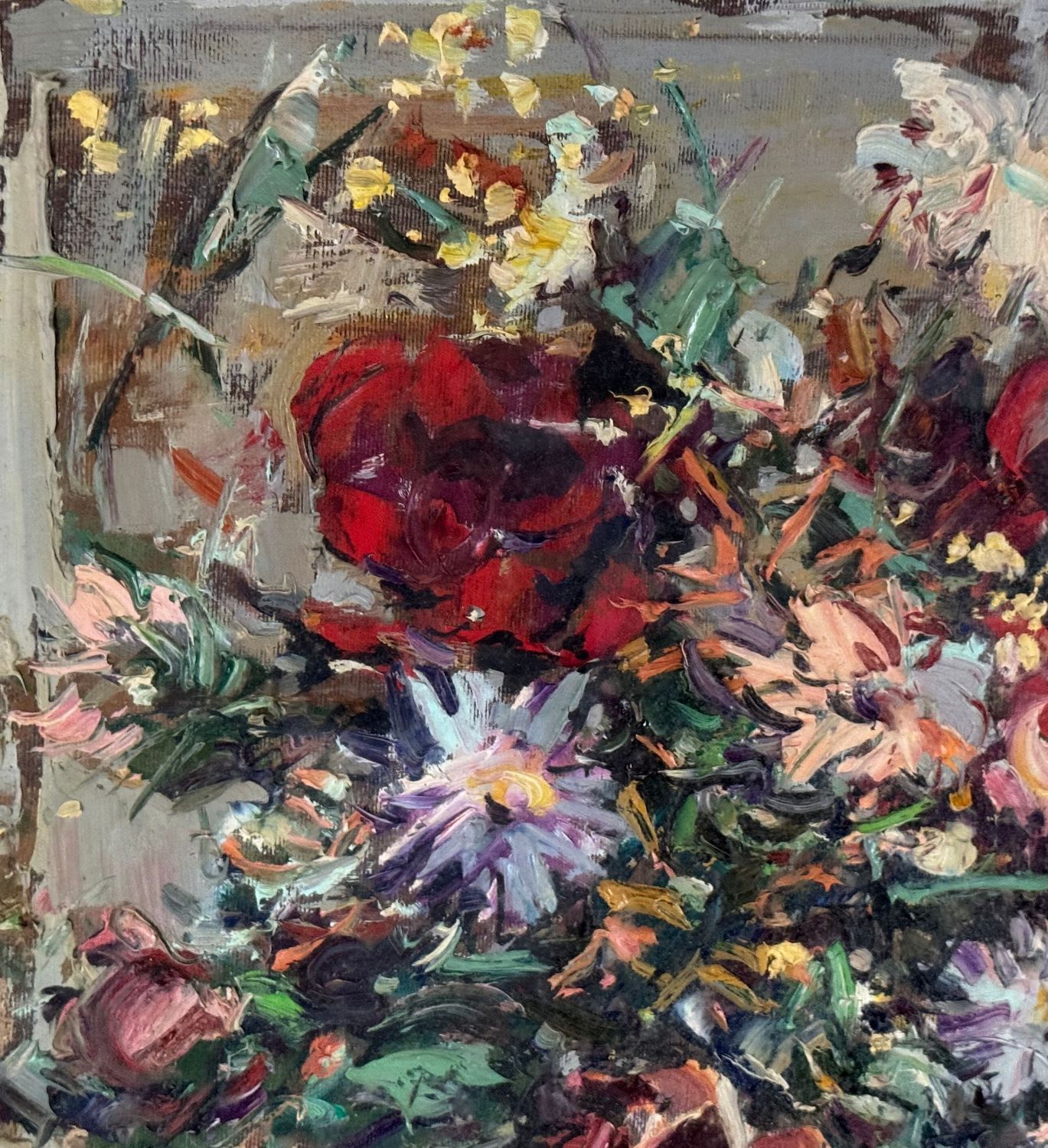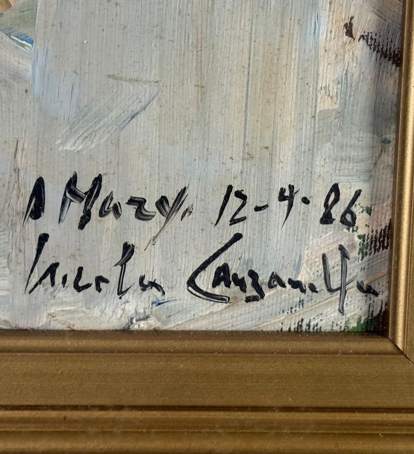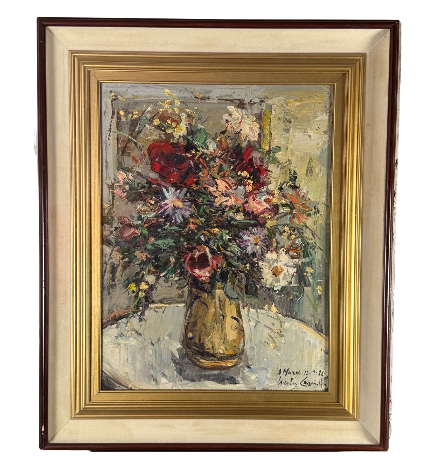 Dipinto olio su tela, periodo XX secolo, scuola Italiana, raffigurante Fiori. Dimensioni compreso cornice: 68x83 cm. Dimensioni interno cornice: 60x45 cm. Firmato in basso a destra Nicola Canzanella. Opera in buone condizioni.