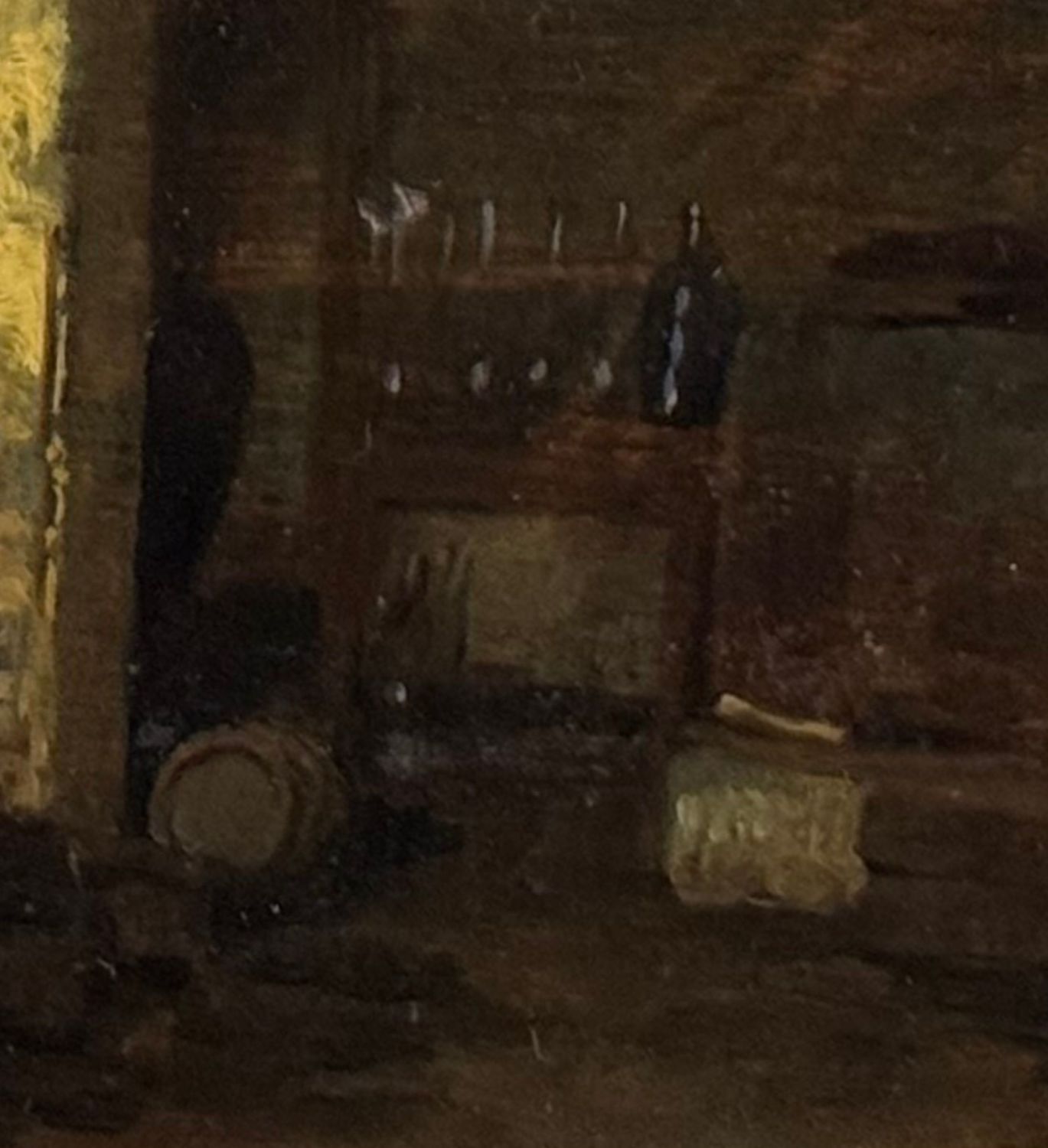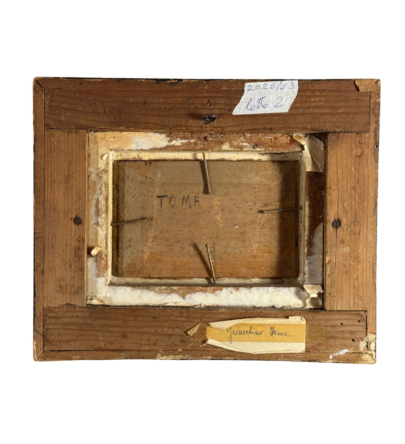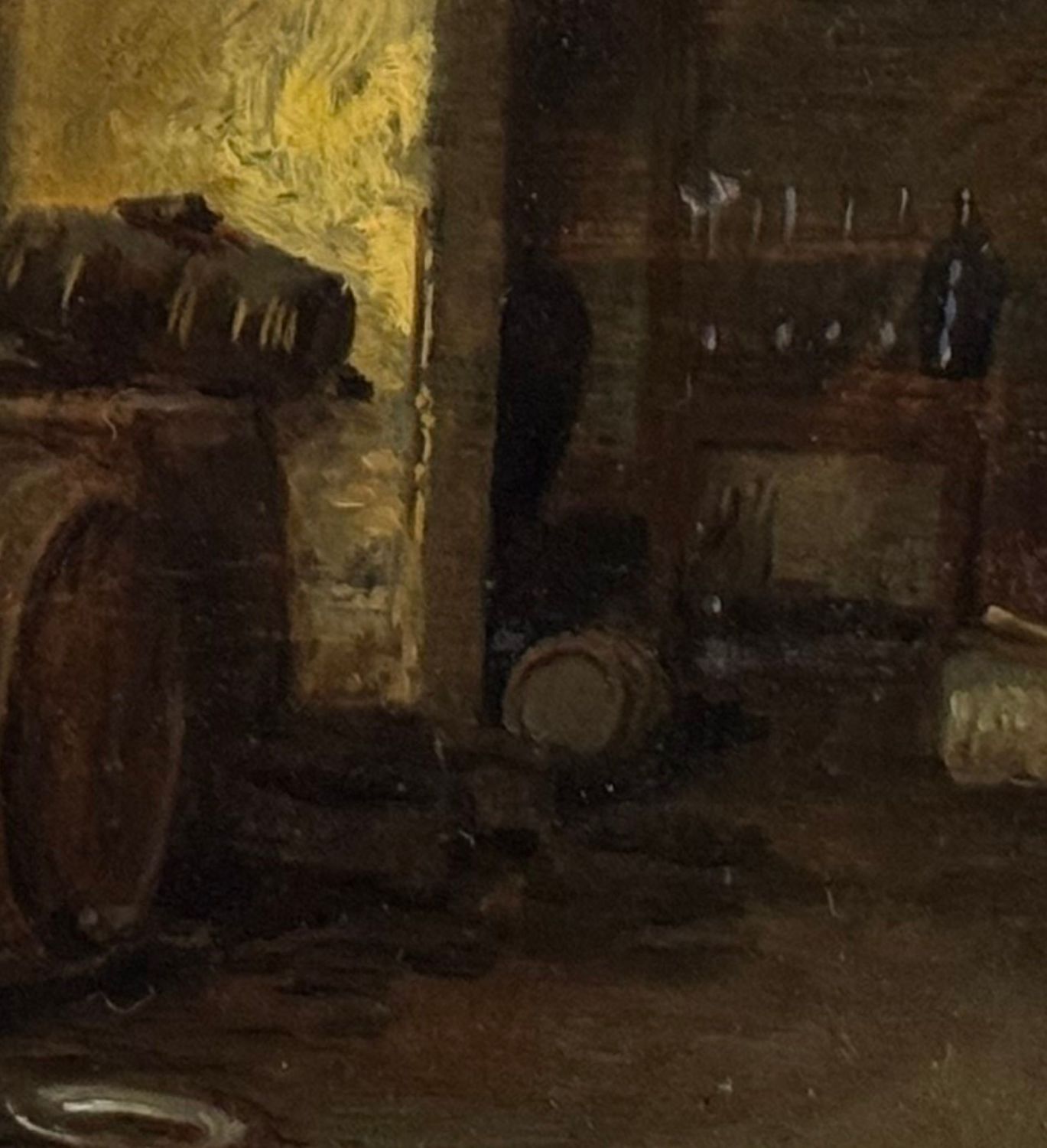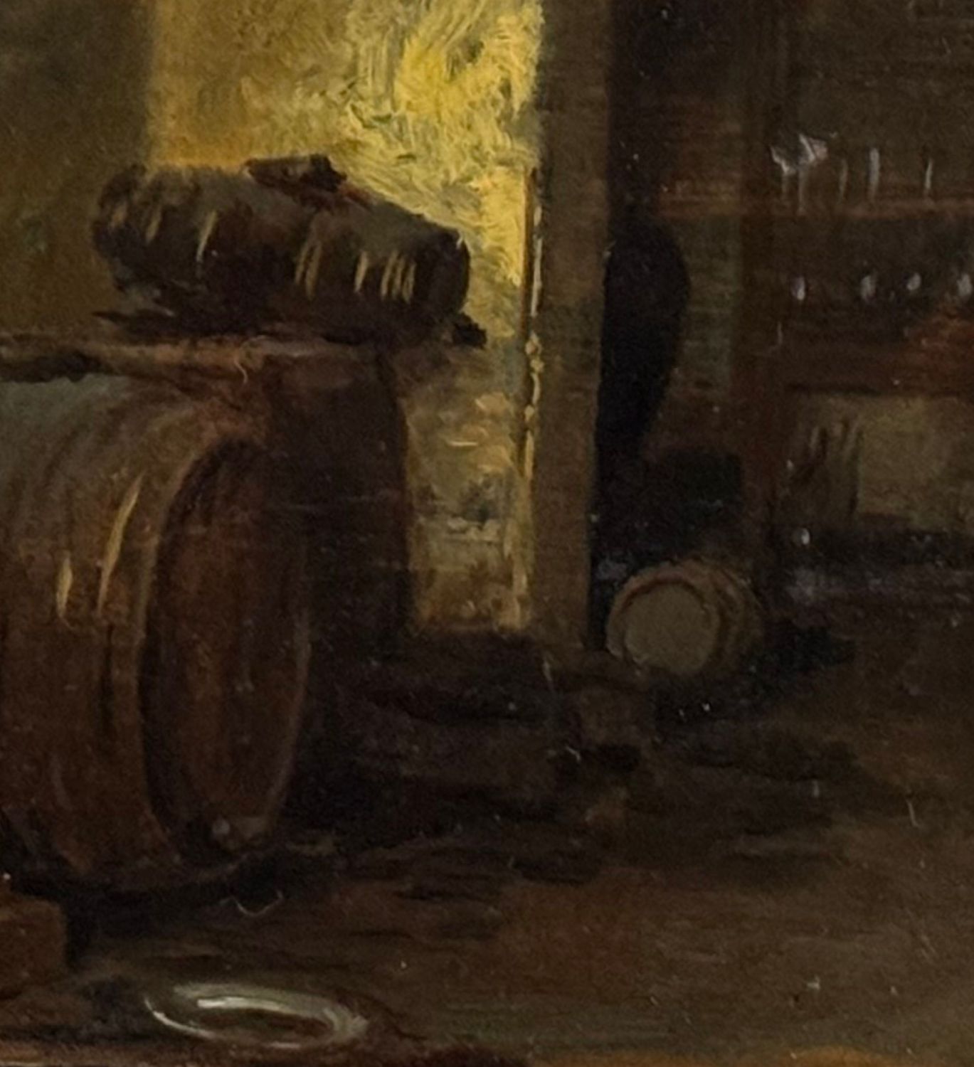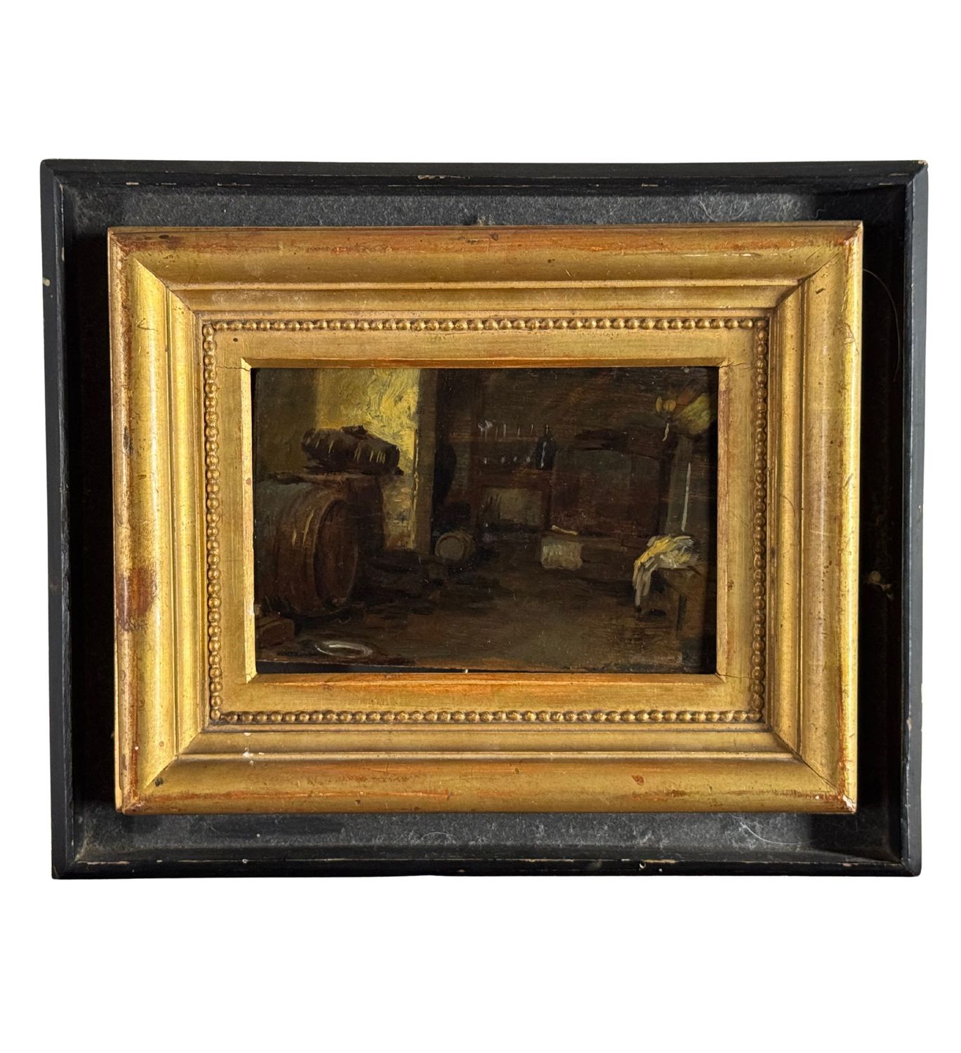 Dipinto olio su tavola, periodo XIX secolo, scuola Italiana, raffigurante Interno di cantina. Dimensioni compreso cornice: 23x28 cm. Dimensioni interno cornice: 15x11 cm. Attribuito Gioacchino Toma. Opera in buone condizioni con lievi segni di vissuto come da foto allegate.