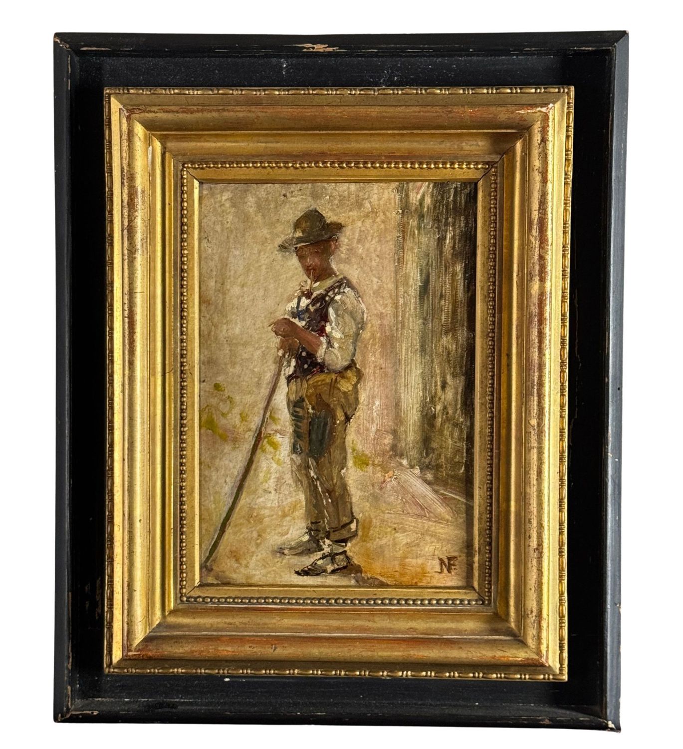 Dipinto olio su tavola, periodo XIX secolo, scuola Italiana, raffigurante Ritratto di giovane con pipa. Dimensioni compreso cornice: 33x40 cm. Dimensioni interno cornice: 17x24 cm. Siglato in basso a destra Francesco Netti. Opera in buone condizioni.