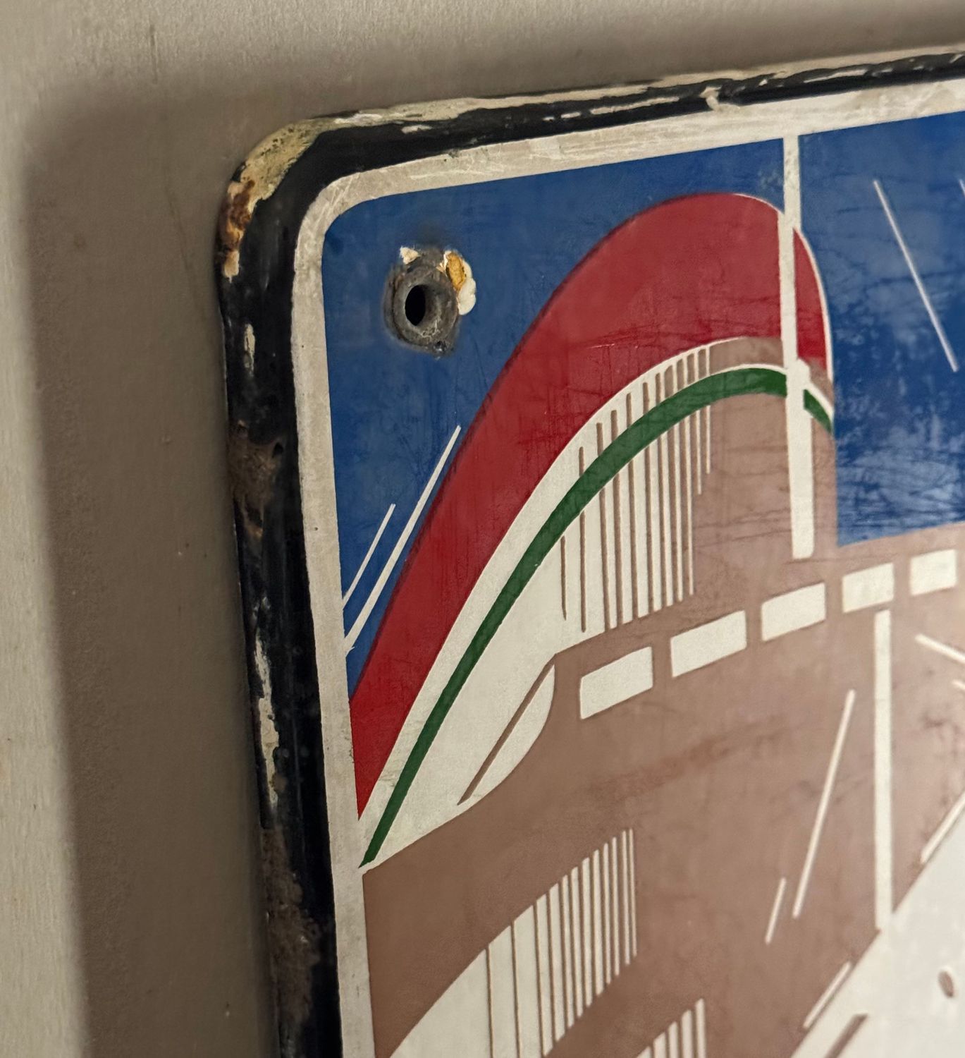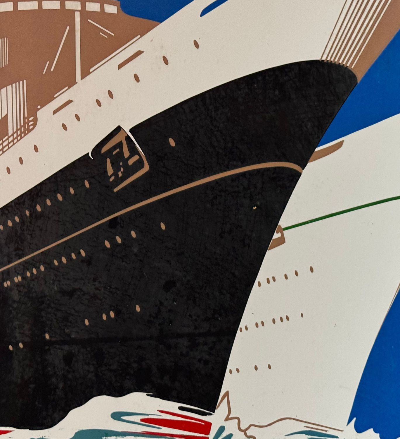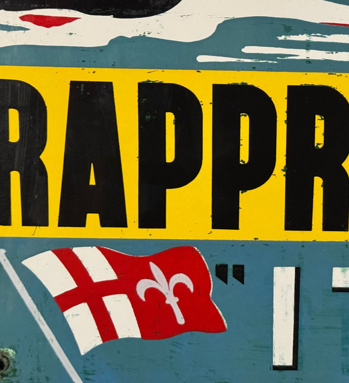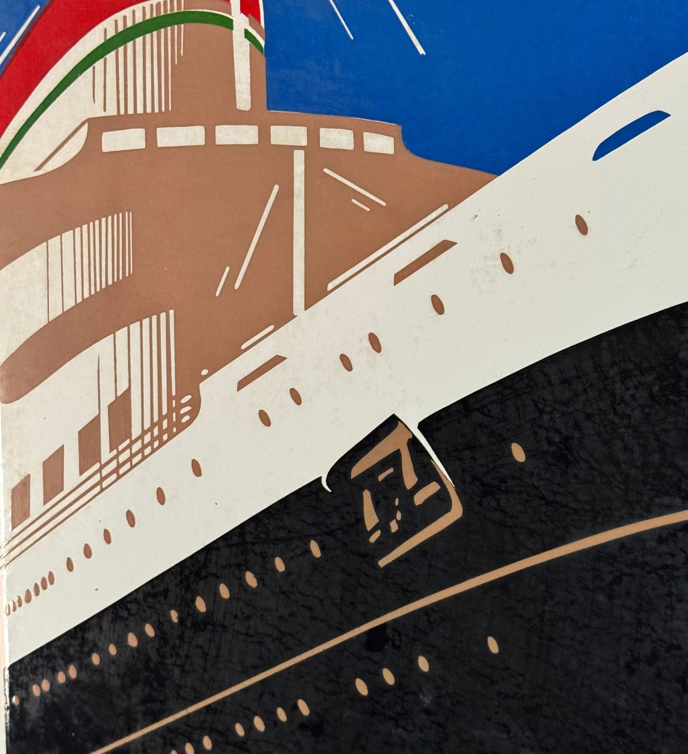 Insegna smaltata originale di (rappresentanza italiana), prodotta dalla Smalteria Perego di Trezzo tra il 1930 e il 1950. Dimensioni: 70 × 50 cm. L’insegna presenta una grafica di gusto futurista raffigurante due navi in navigazione, riconducibili all’Andrea Doria e al Cristoforo Colombo. Proveniente da collezione privata, si presenta in buone condizioni generali, con lievi segni di vissuto, come da foto allegate.