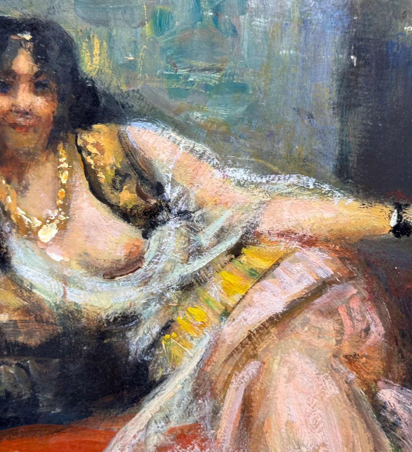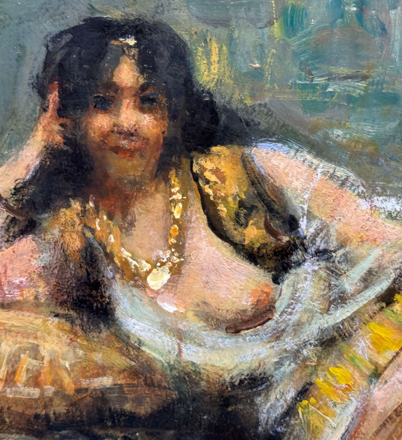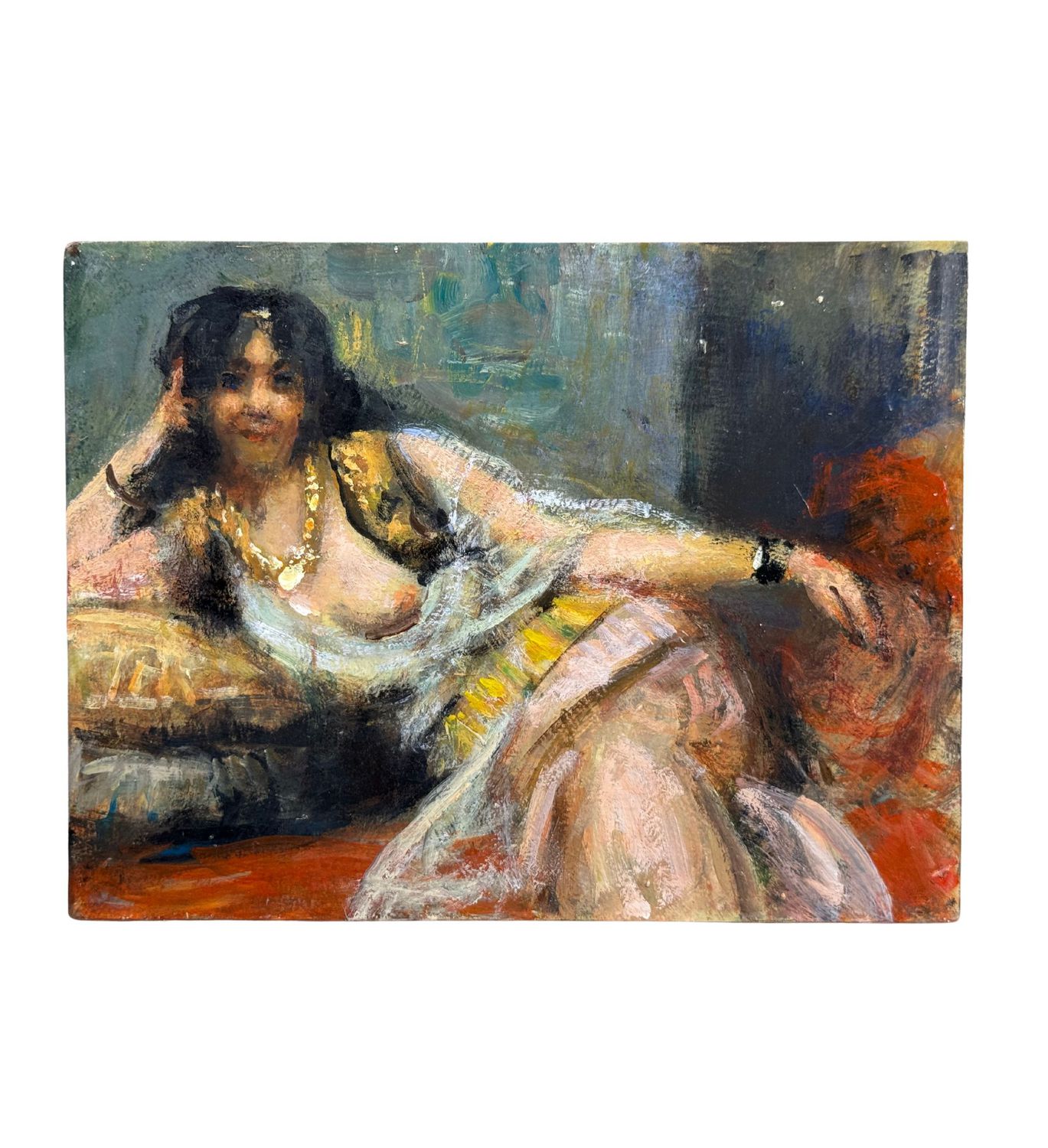 Dipinto olio su tavola, periodo primi anni del XX secolo, scuola Italiana, raffigurante Ritratto di donna di area Orientale. Dimensioni: 20x15 cm. Da artista anonimo. Opera in buone condizioni.