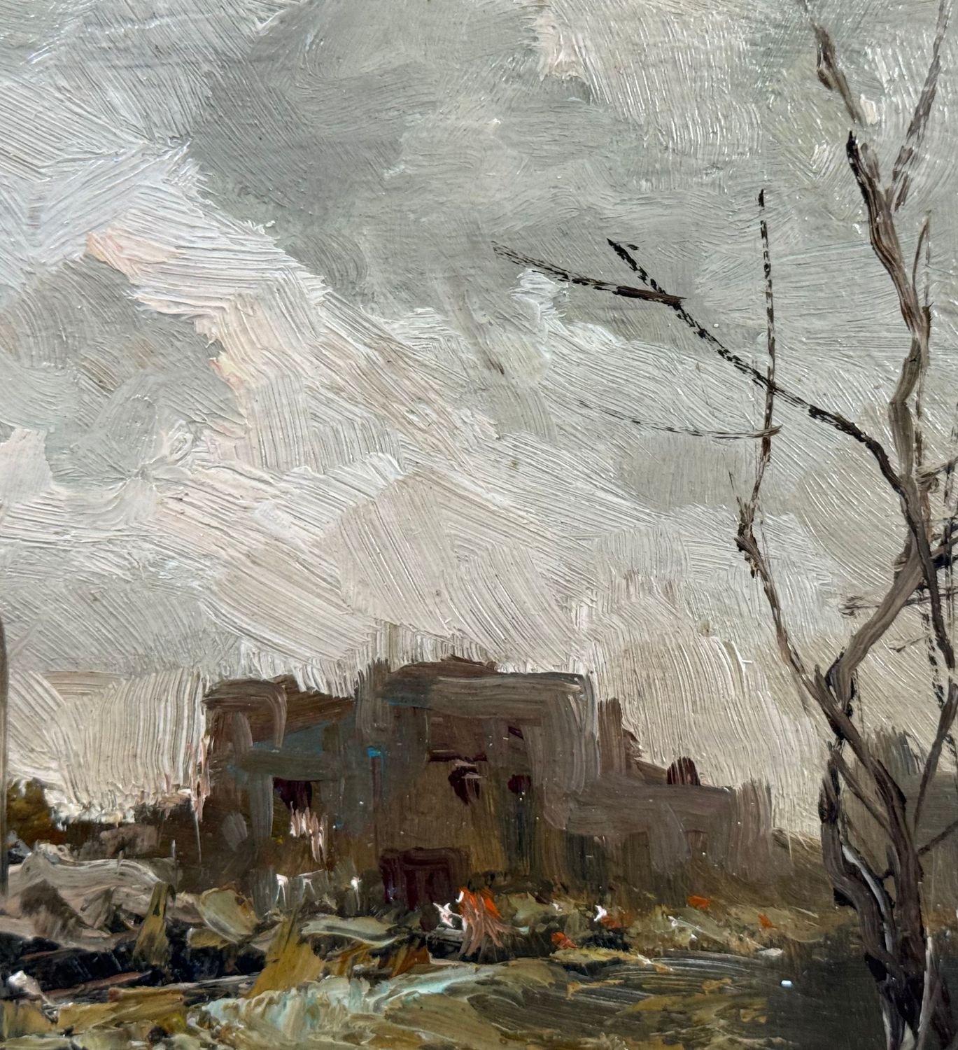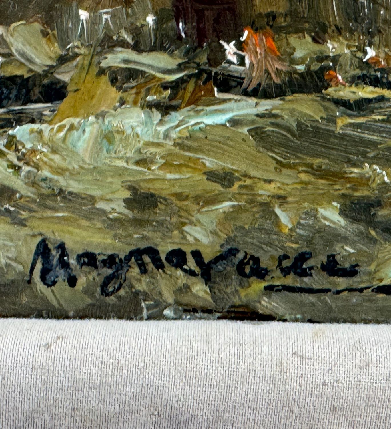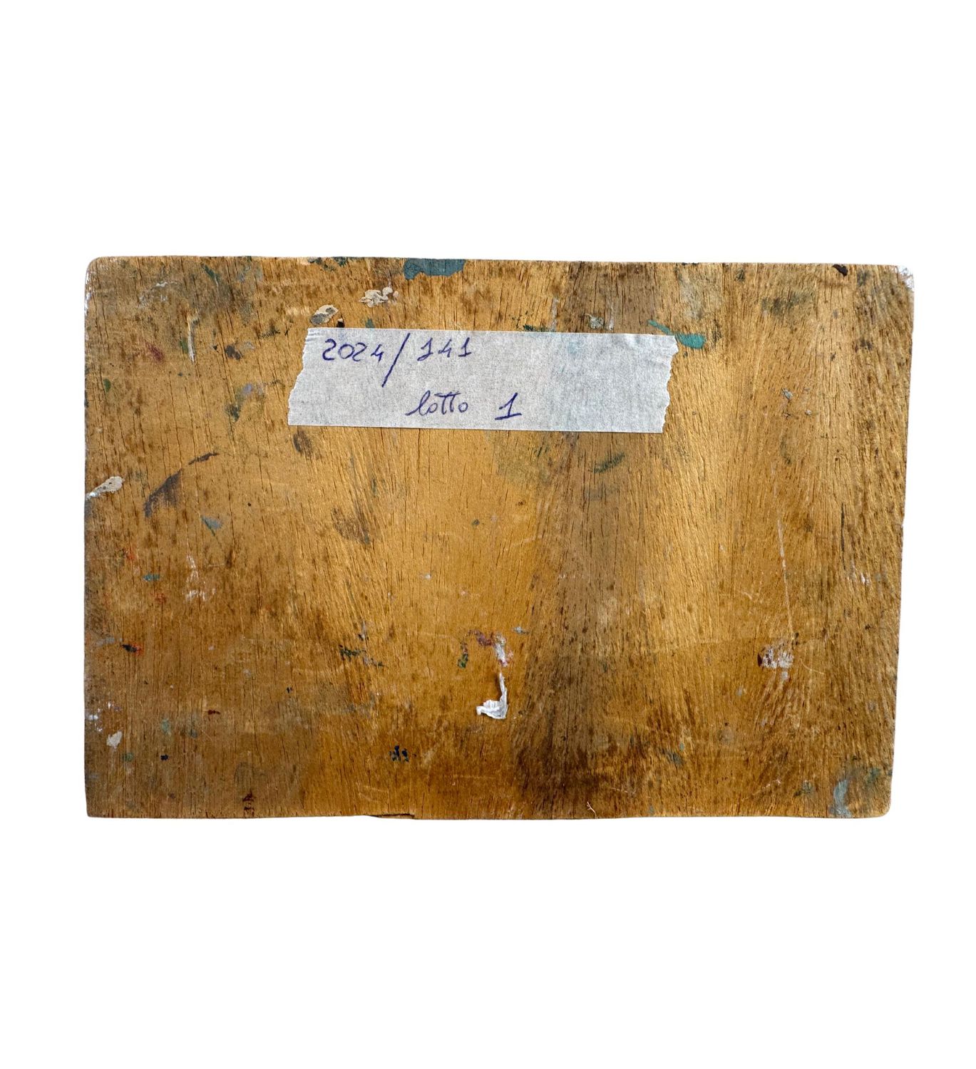 Dipinto olio su tavola, periodo prima metà del XX secolo scuola Italiana, raffigurante Strada di campagna. Dimensioni: 21,5x15 cm. Reca firma in basso al centro da artista non identificato. Opera in buone condizioni.