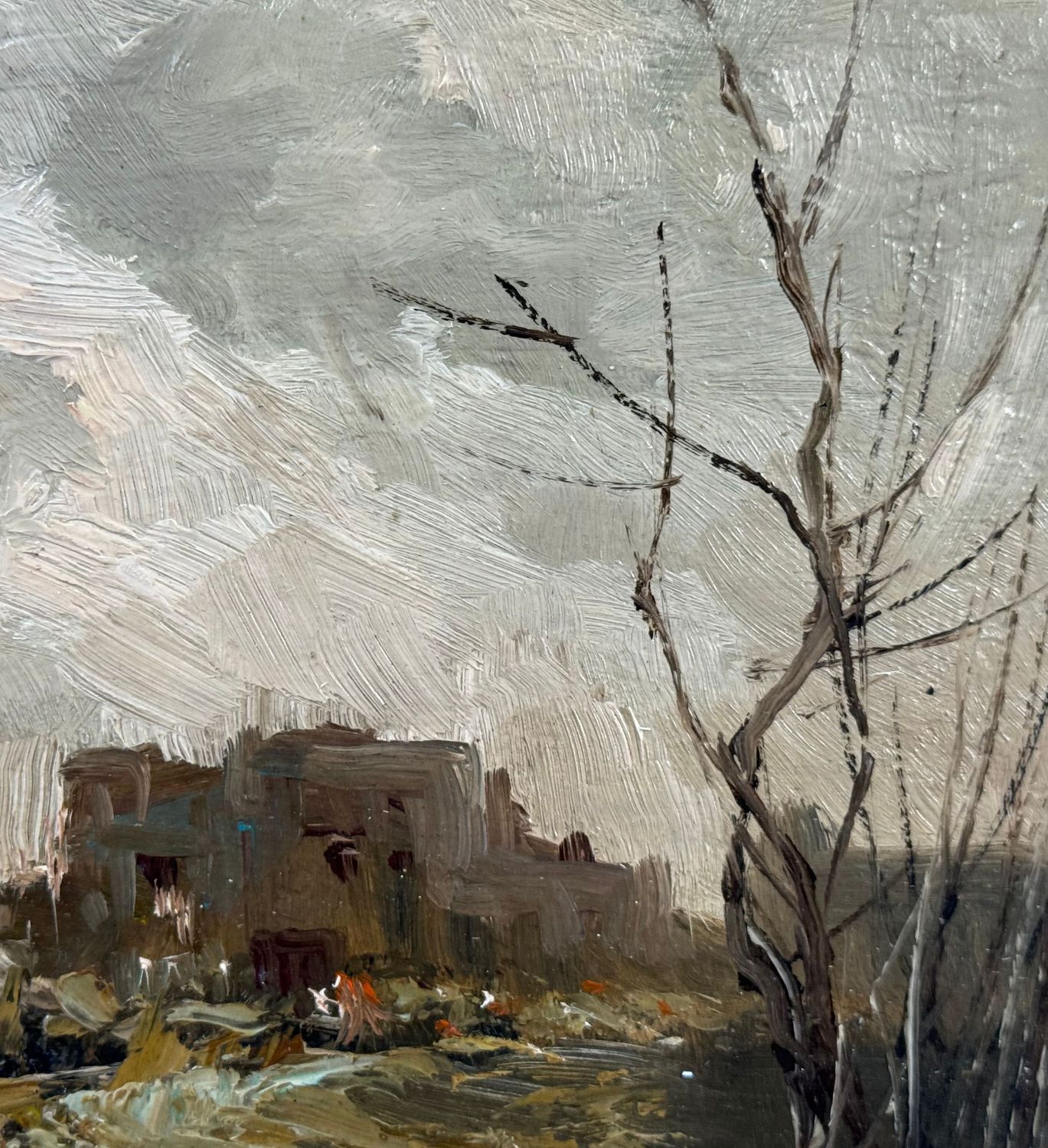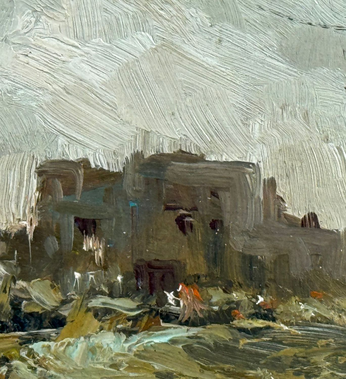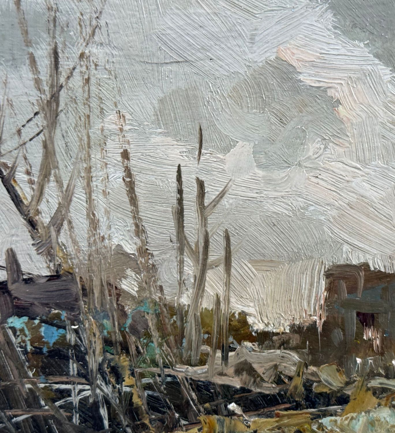 Dipinto olio su tavola, periodo prima metà del XX secolo scuola Italiana, raffigurante Strada di campagna. Dimensioni: 21,5x15 cm. Reca firma in basso al centro da artista non identificato. Opera in buone condizioni.