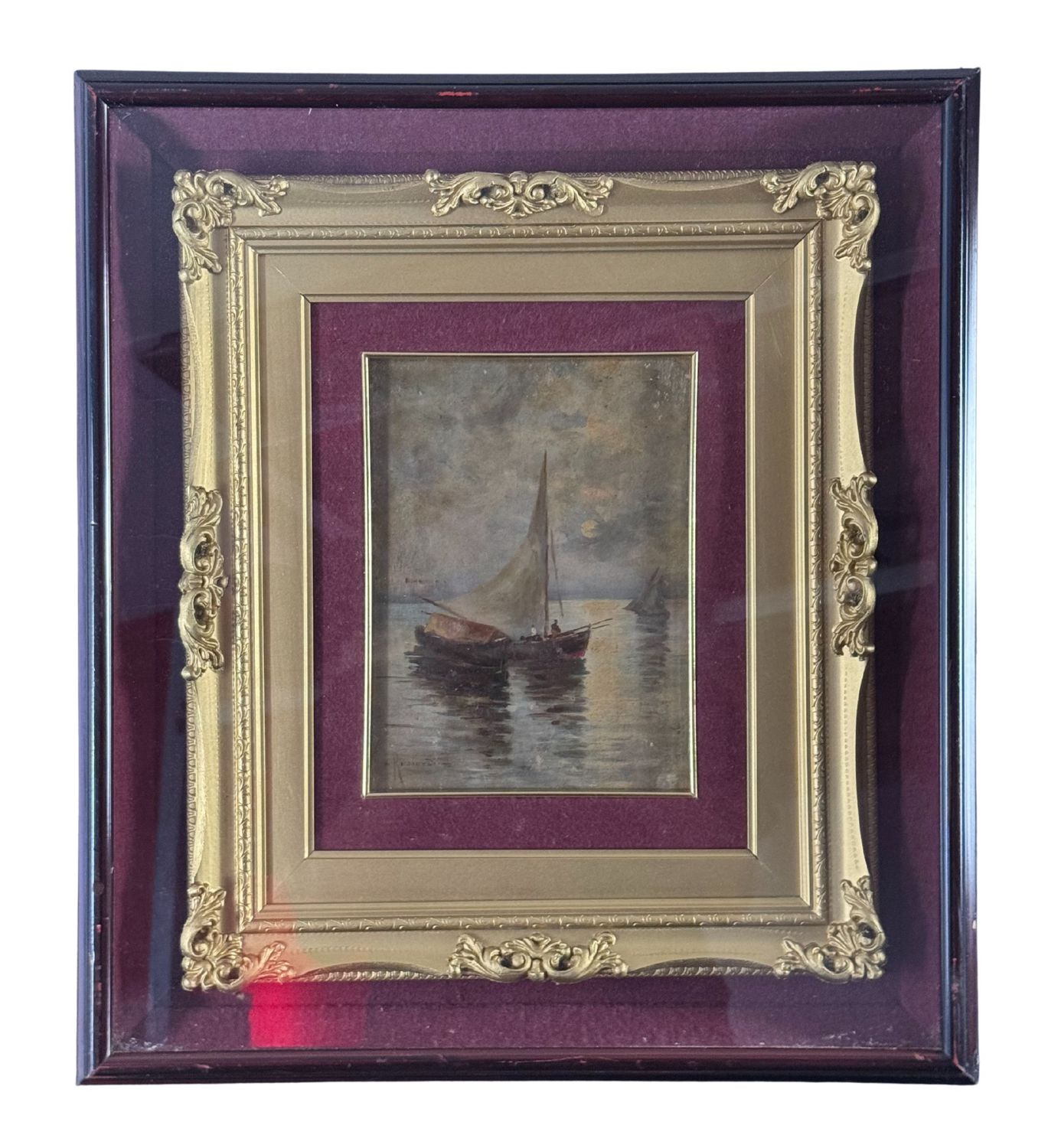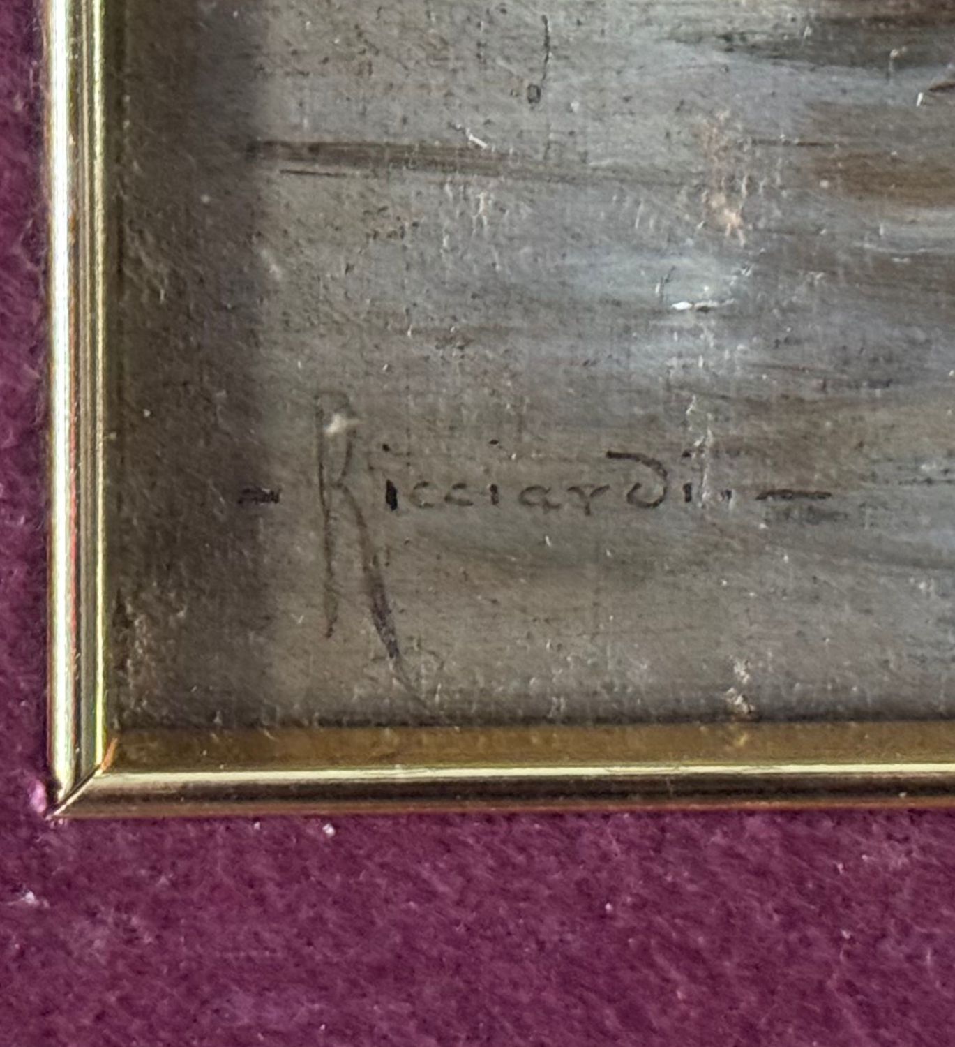 Dipinto olio su tavola, periodo XX secolo scuola italiana raffigurante Marina con barche. Dimensioni compreso cornice: 48x53 cm. Dimensioni interno cornice: 18x24 cm. Firmato in baso a sinistra Oscar Ricciardi. Opera in buone condizioni.