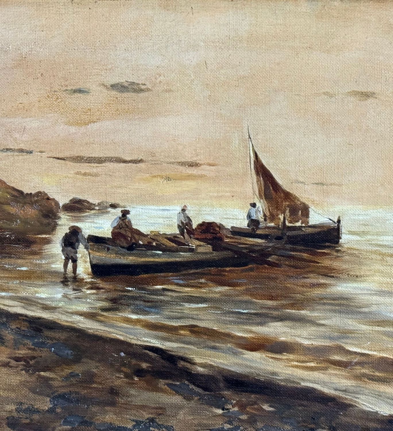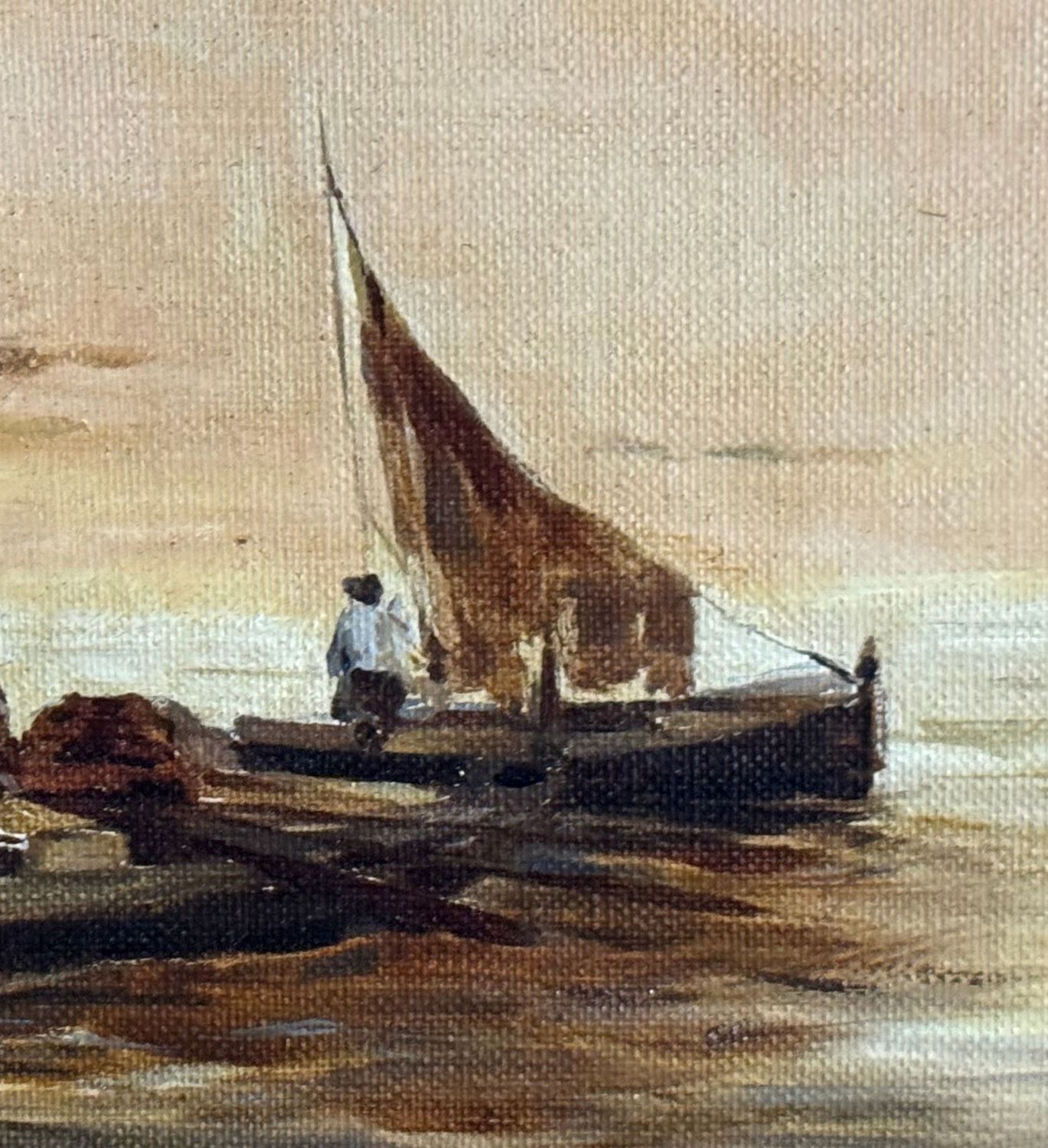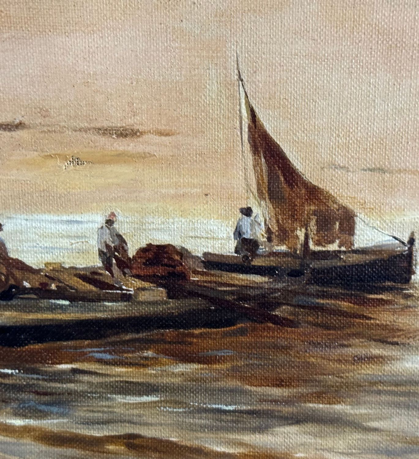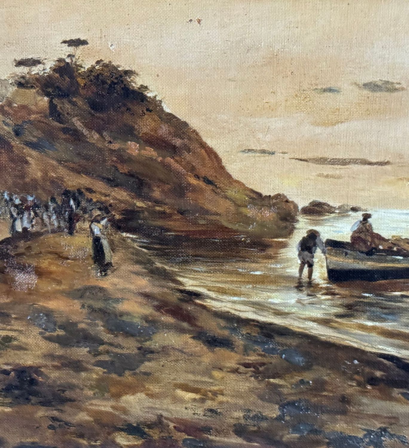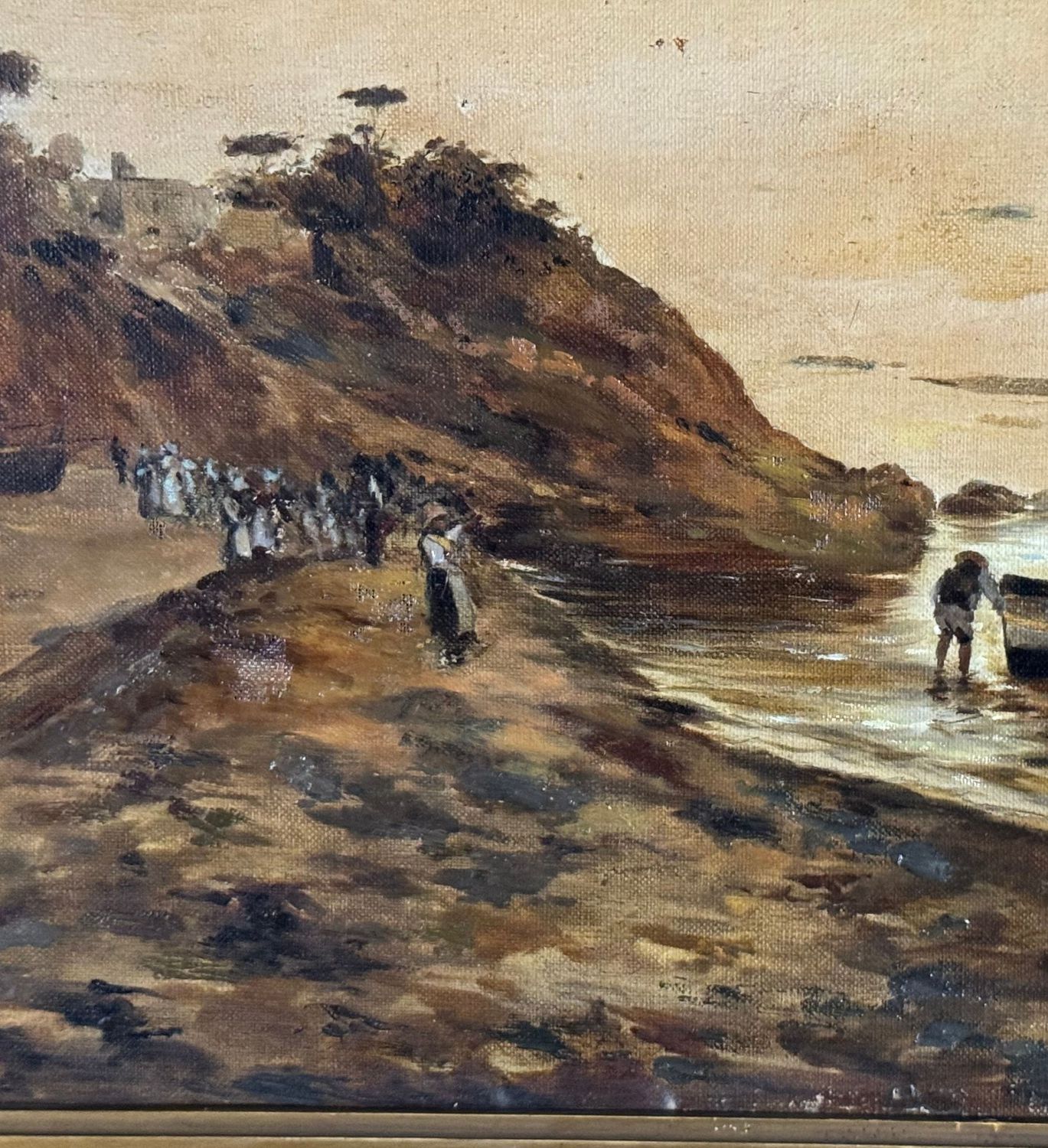 Dipinto olio su tela, periodo XIX/XX secolo scuola Napoletana raffigurante Scorcio di marina napoletana. Dimensioni compreso cornice: 42x70 cm. Dimensioni interno cornice: 28x54 cm. Artista anonimo. Opera in buone condizioni.