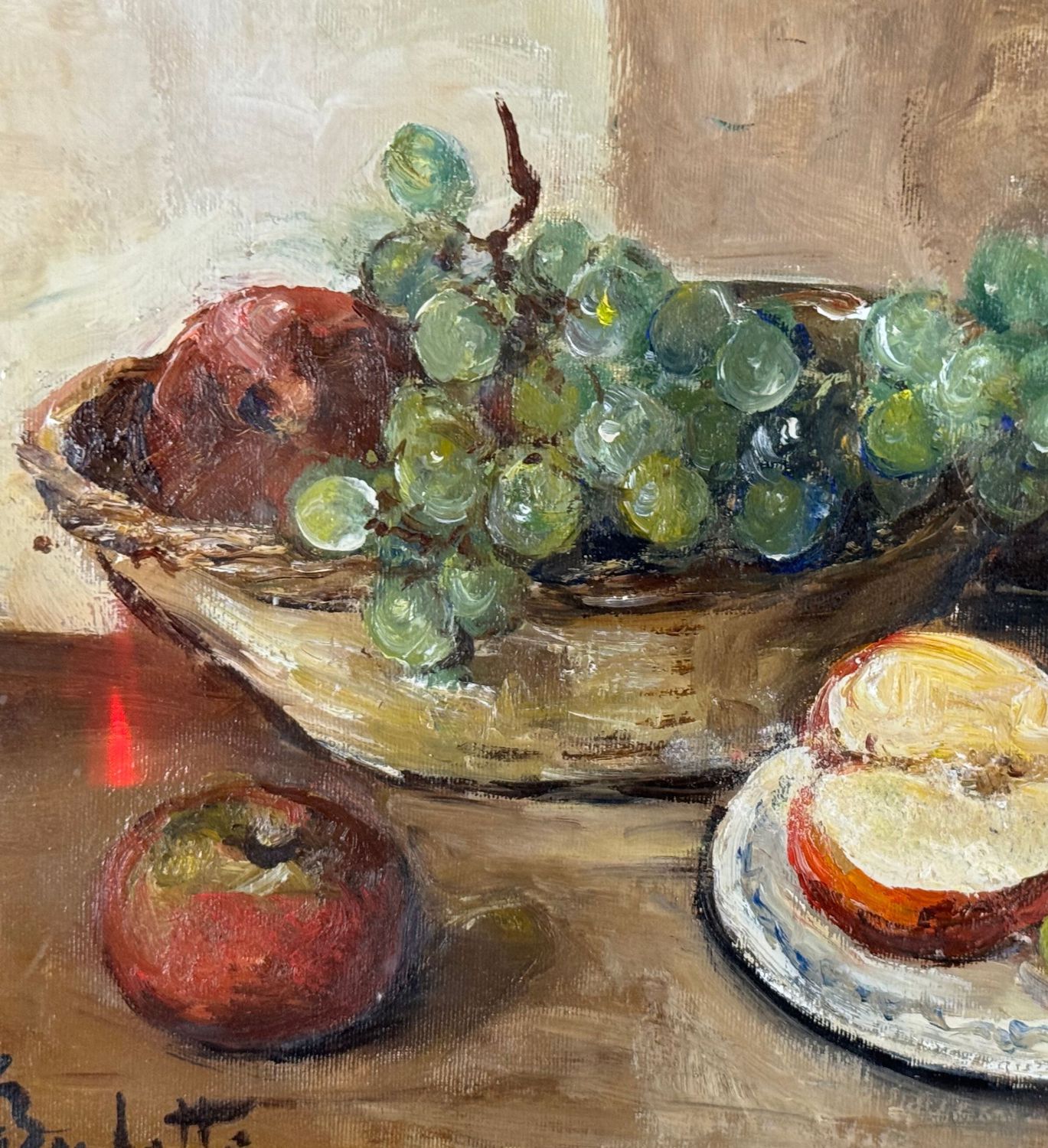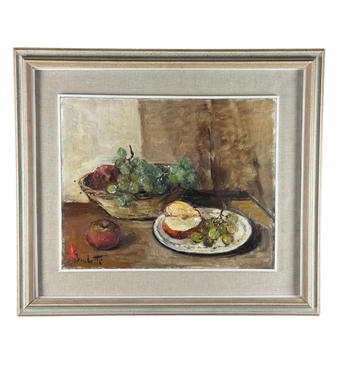 Dipinto olio su tela, periodo XX secolo scuola italiana raffigurante Natura morta. Dimensioni compreso cornice: 72x62 cm. Dimensioni interno cornice: 50x40 cm. Firmato in basso a sinistra Gaetano Bocchetti. Opera in ottime condizioni.