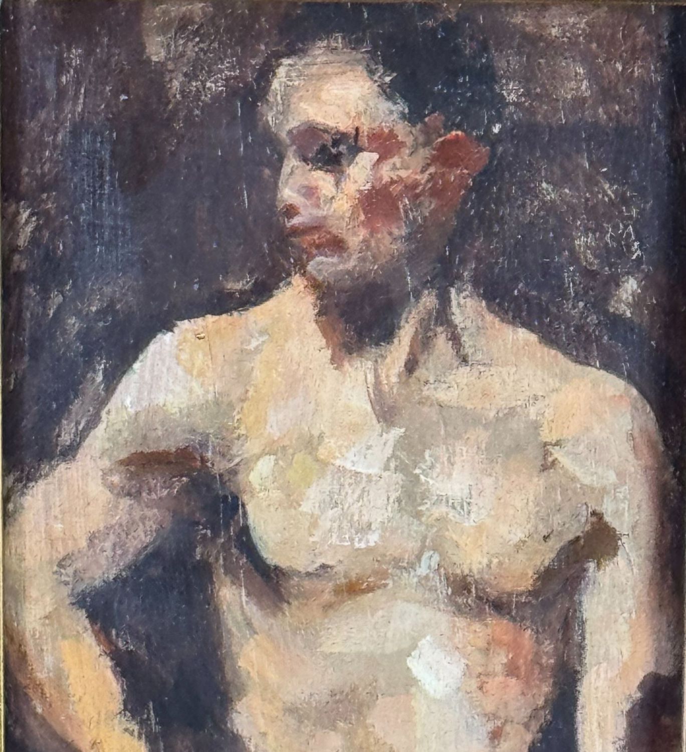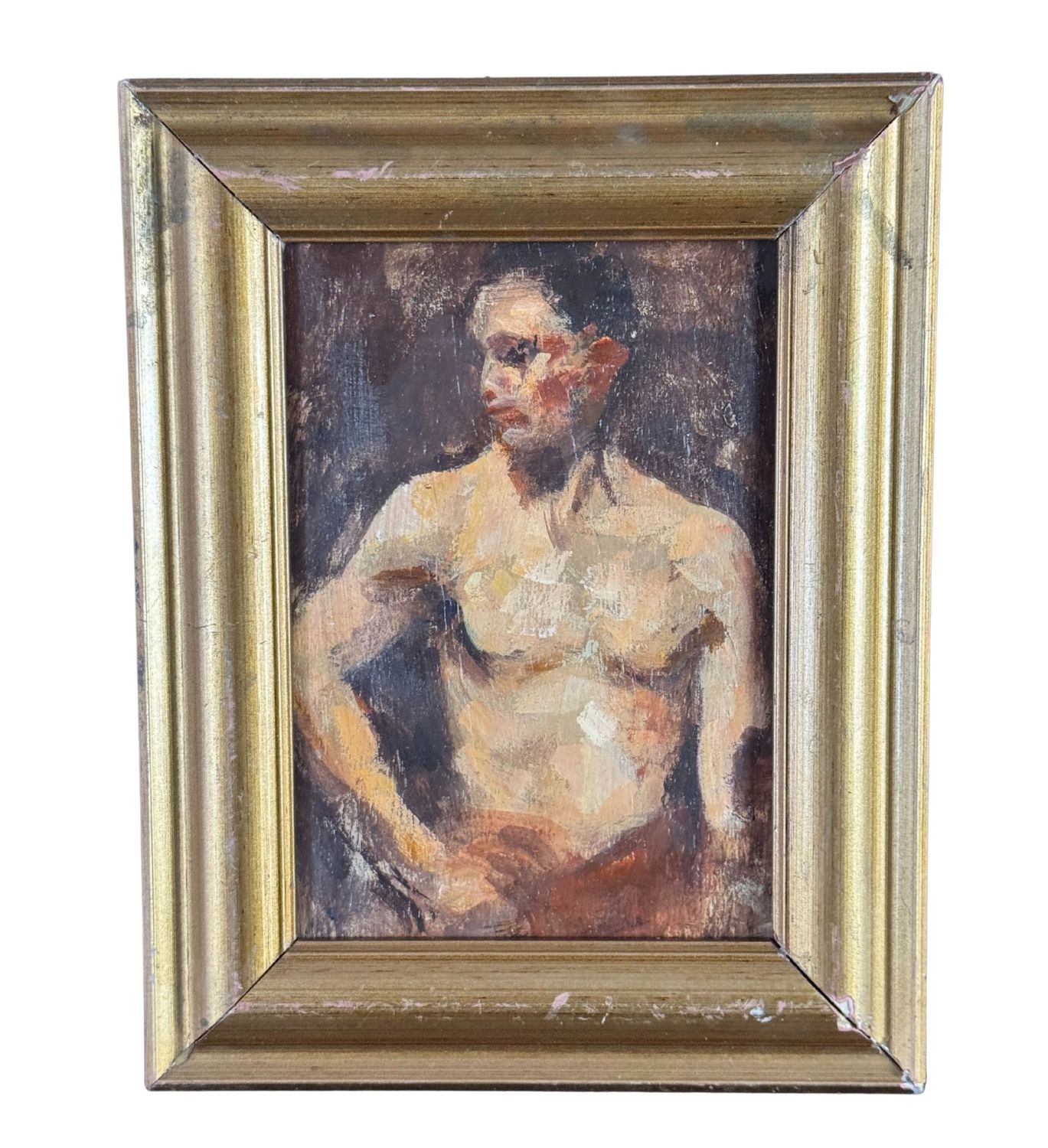 Dipinto olio su tavola, periodo XX secolo scuola Italiana raffigurante Nudo maschile, bozzetto artistico. Dimensioni compreso cornice: 19x24 cm. Dimensioni interno cornice: 18x13 cm. Artista anonimo. Opera in buone condizioni.