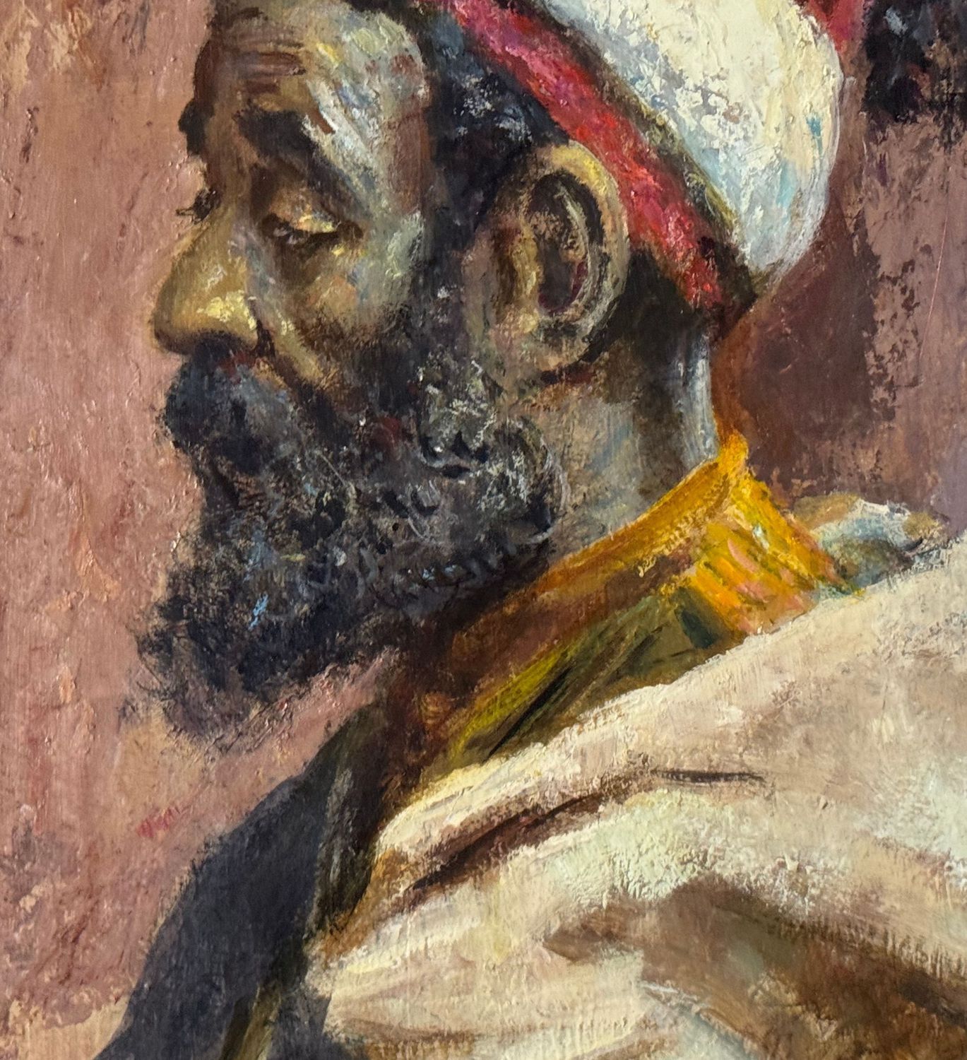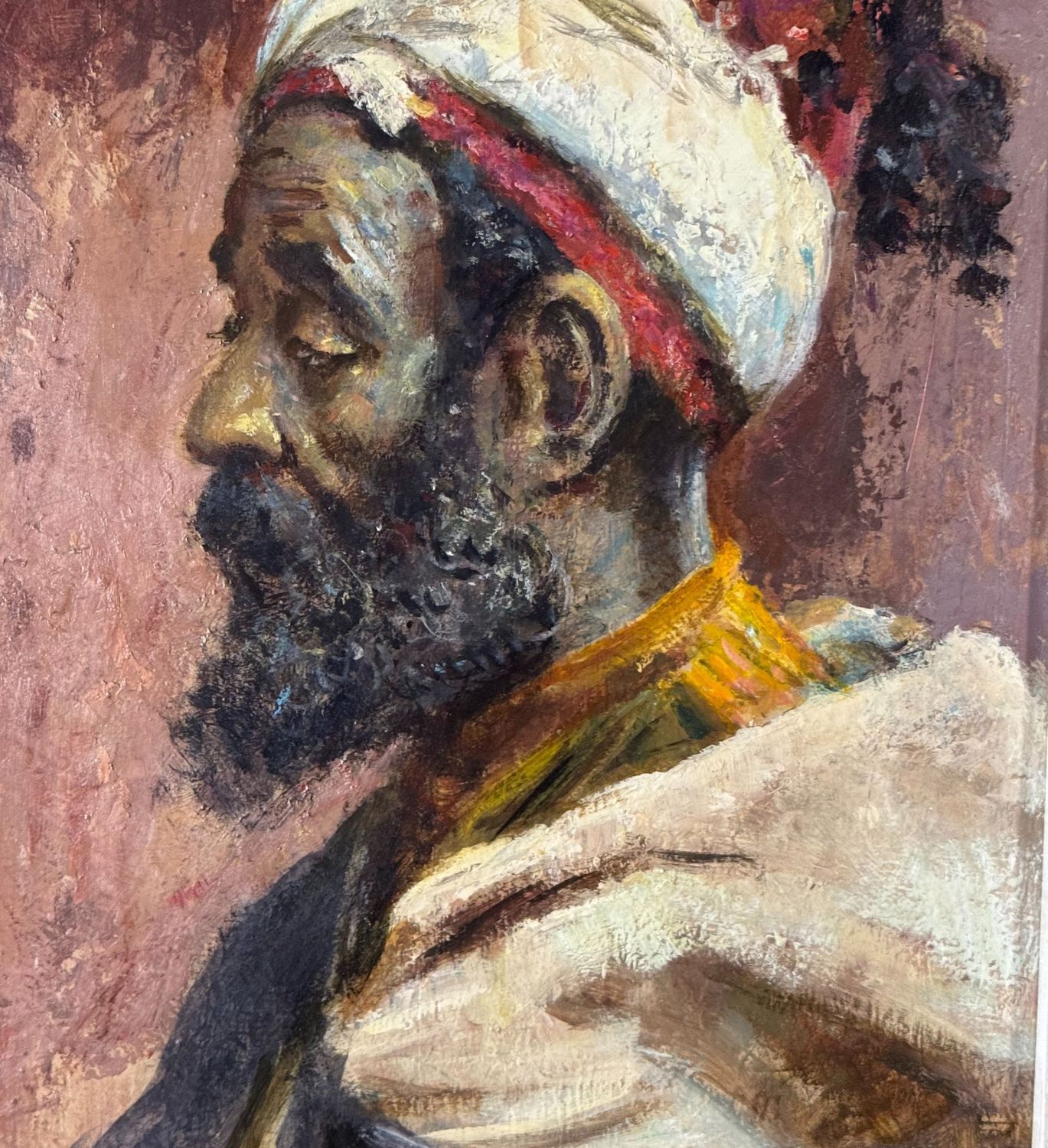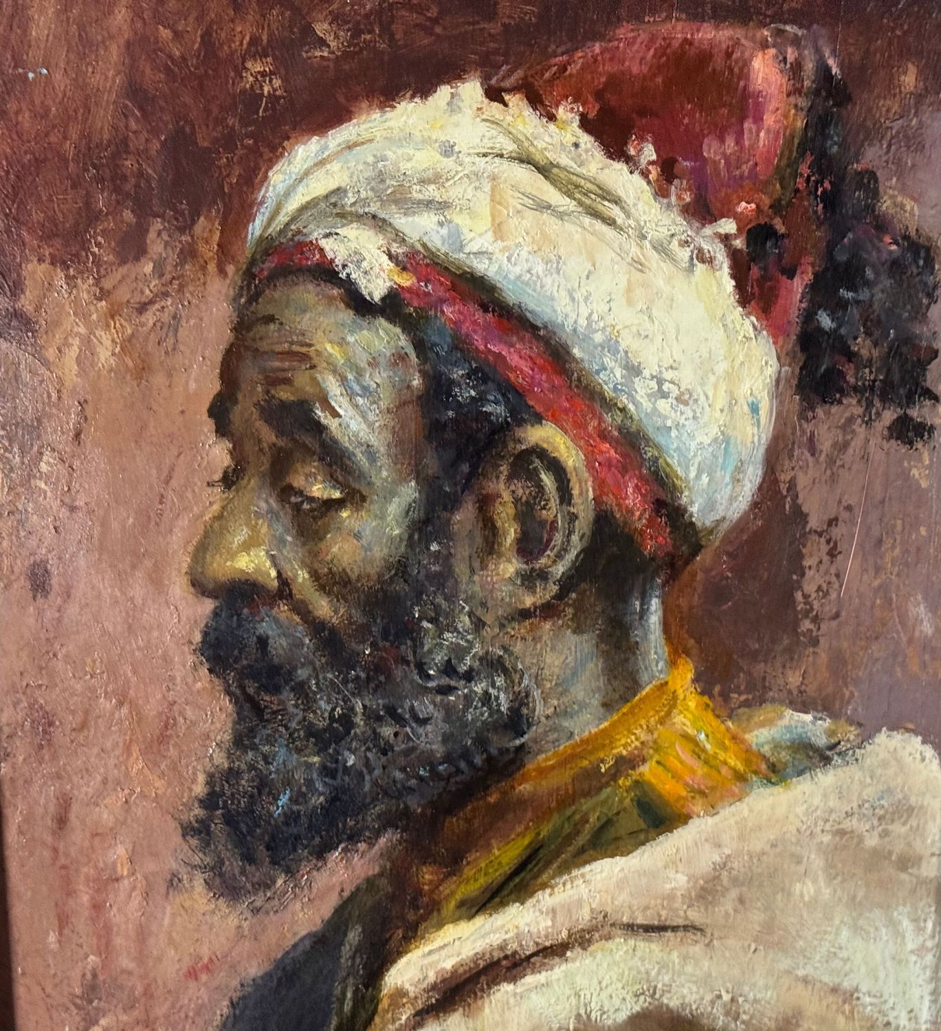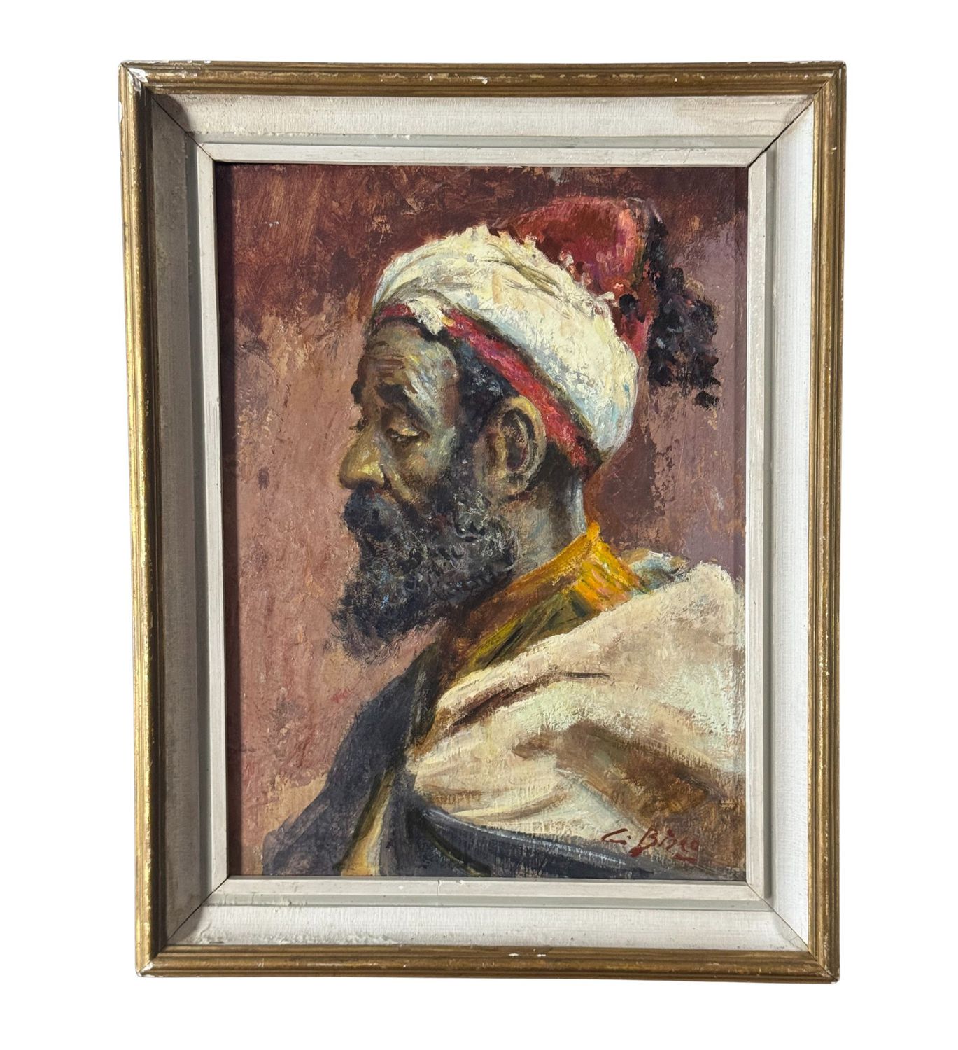 Dipinto olio su tavola, periodo XX secolo scuola Italiana raffigurante Profilo di uomo arabo. Tratto da un' opera di Josep Tapiró Baró. Dimensioni compreso cornice: 38x49 cm. Dimensioni interno cornice: 40x30 cm. Firmato in basso a destra. Opera in ottime condizioni.