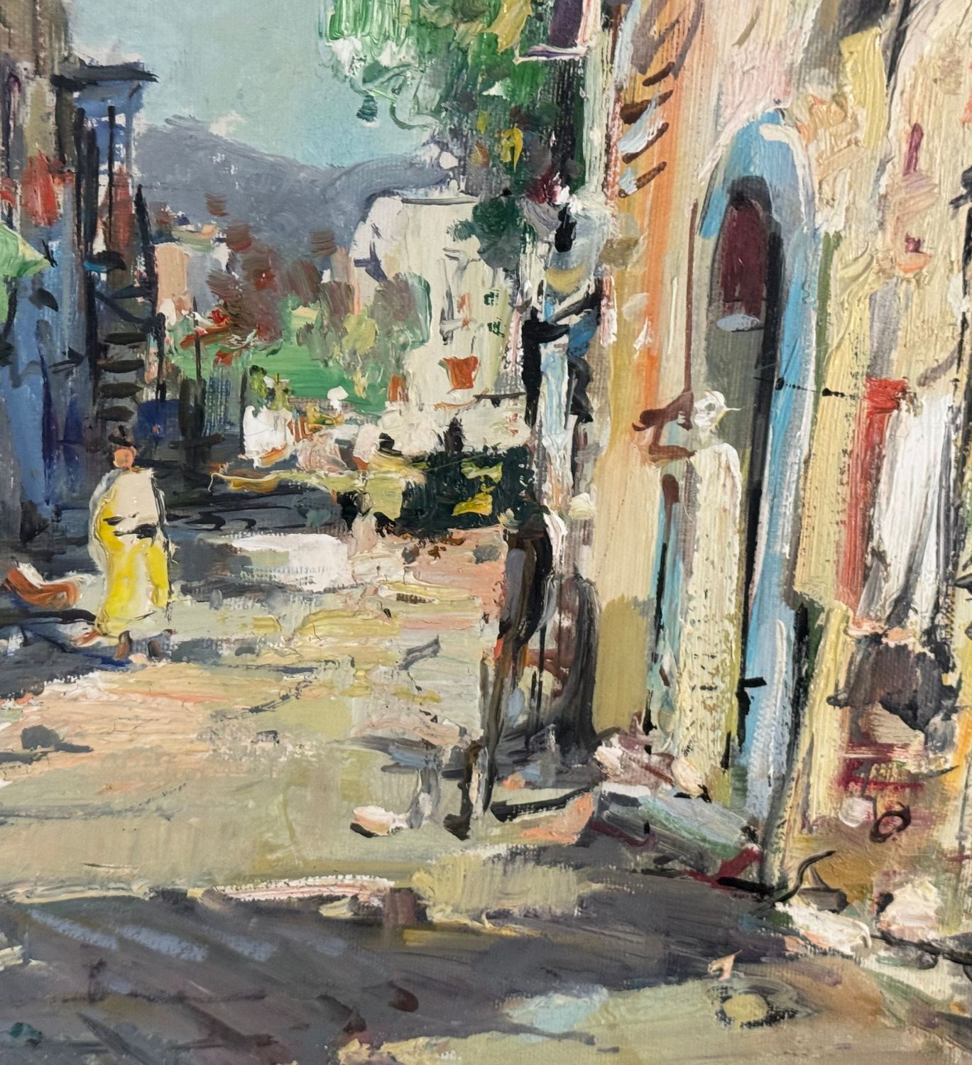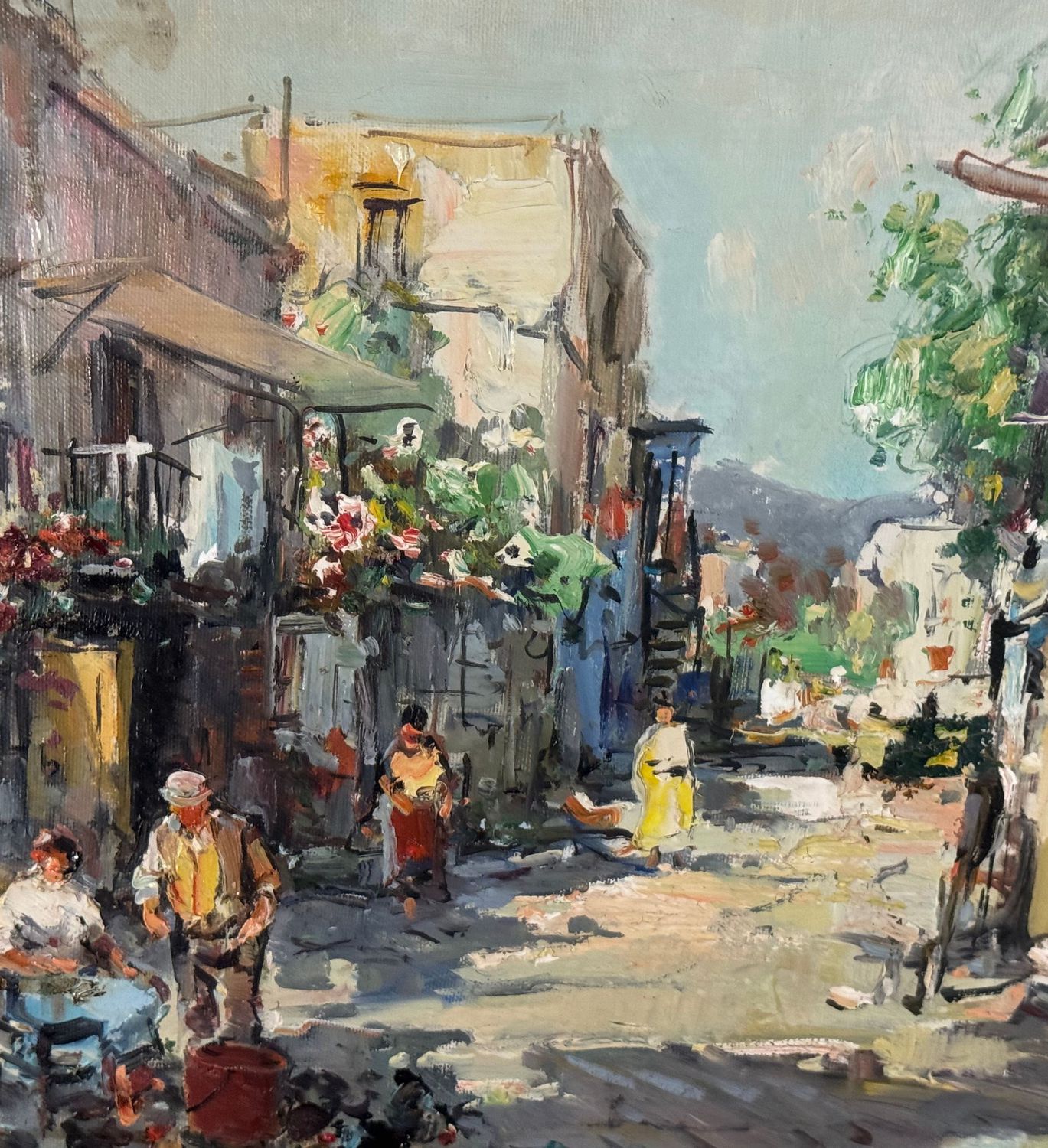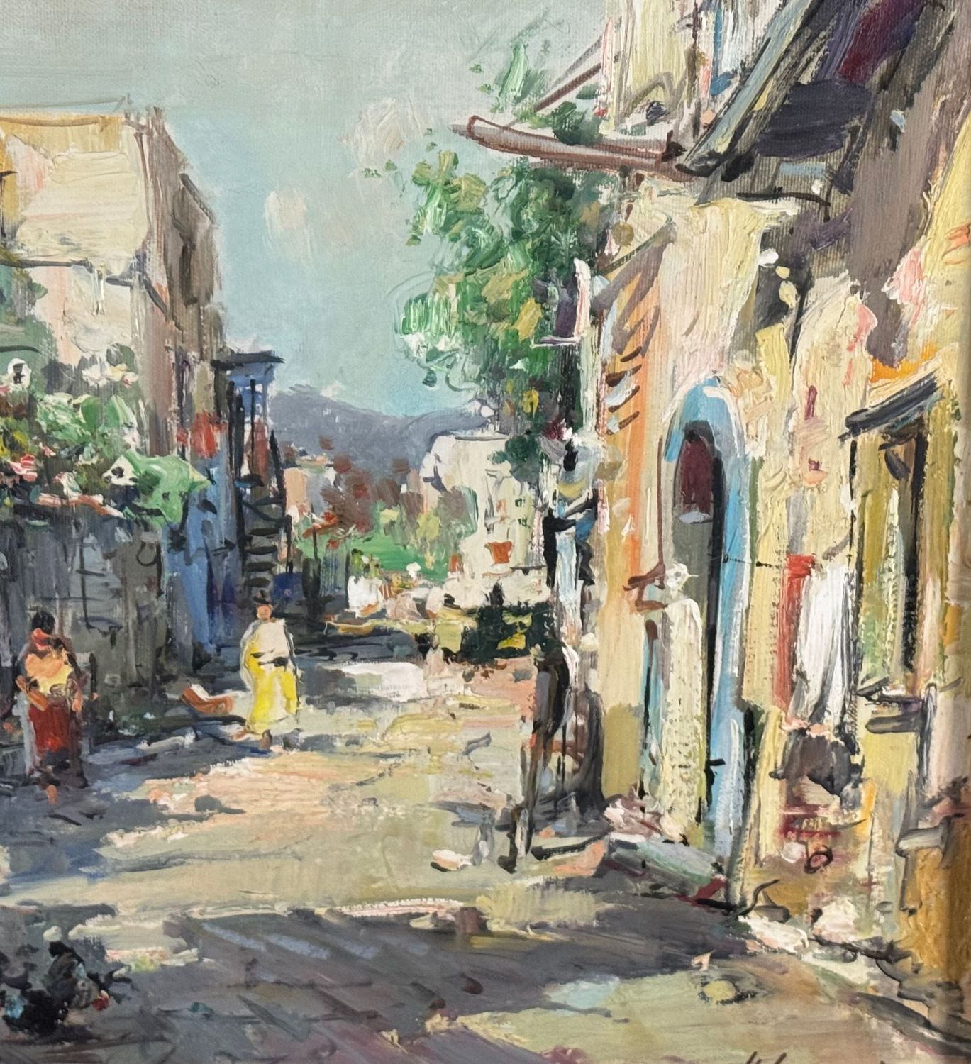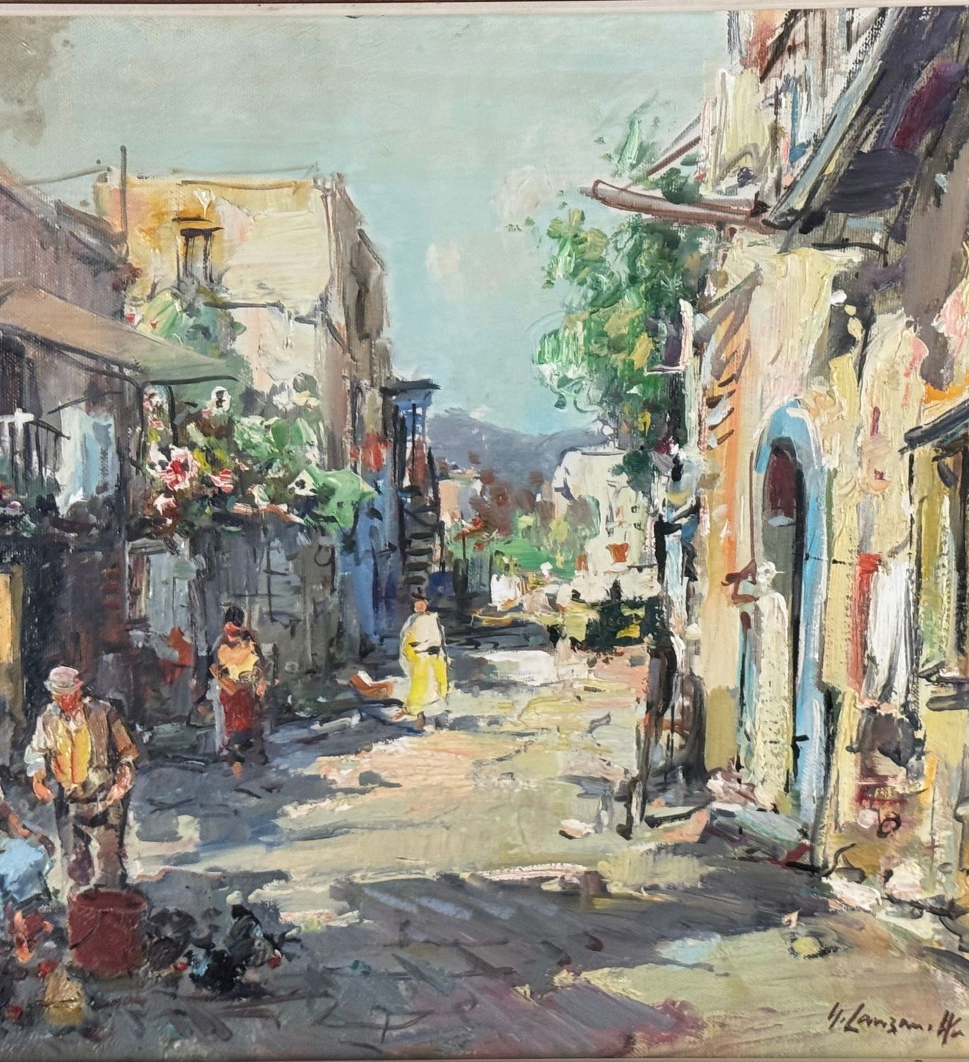 Dipinto olio su tela, periodo XX secolo scuola Italiana raffigurante Strada di periferia con personaggi. Dimensioni compreso cornice: 68x58 cm. Dimensioni interno cornice: 50x40 cm. Firmato in basso a destra Nicola Canzanella. Opera in buone condizioni.