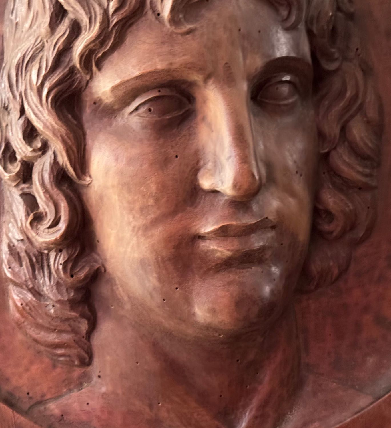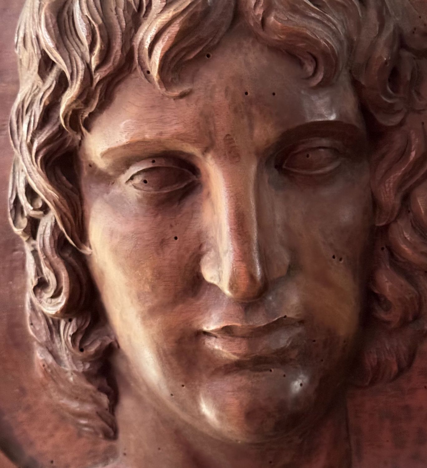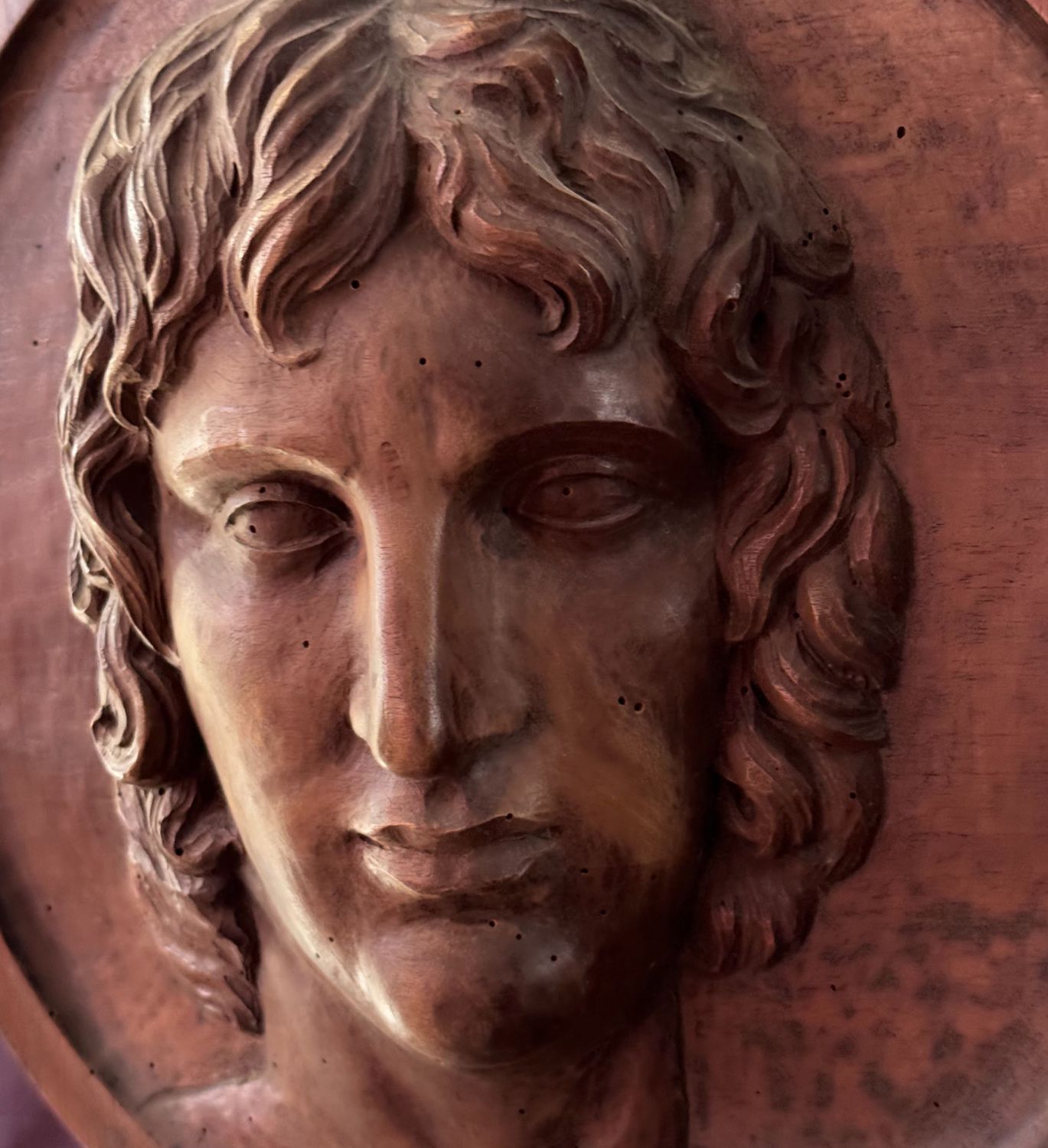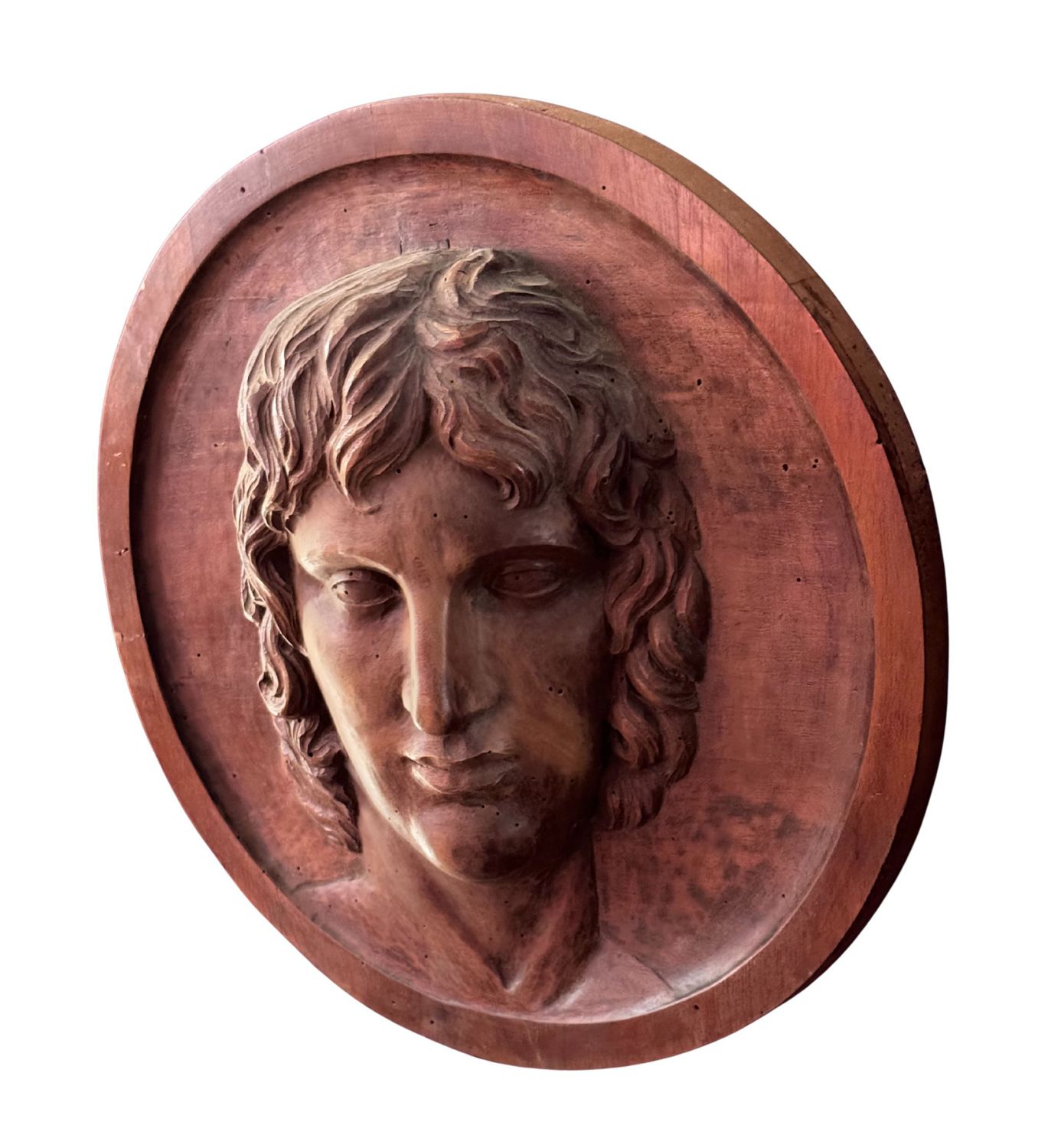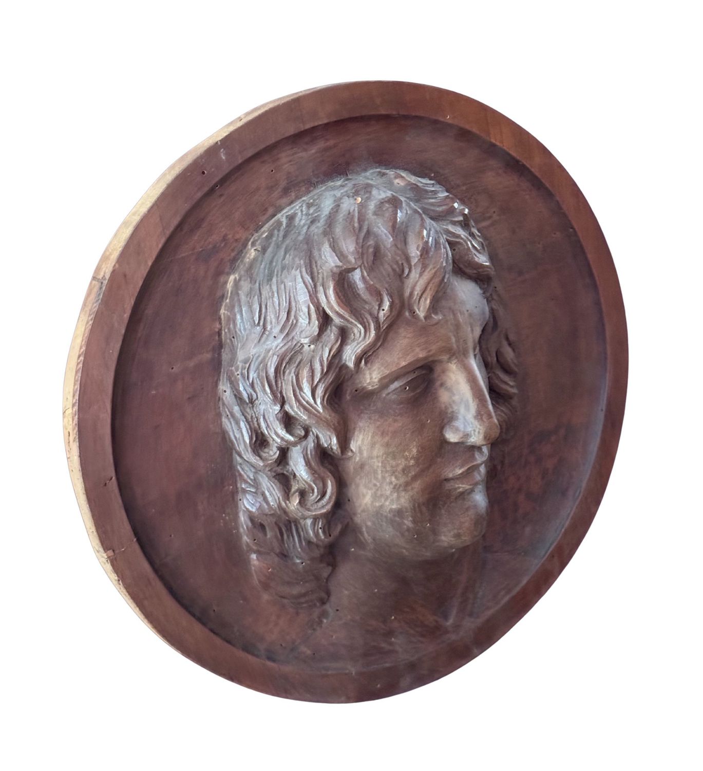 Scultura in legno a basso rilievo, raffigurante Volto maschile, periodo XIX...