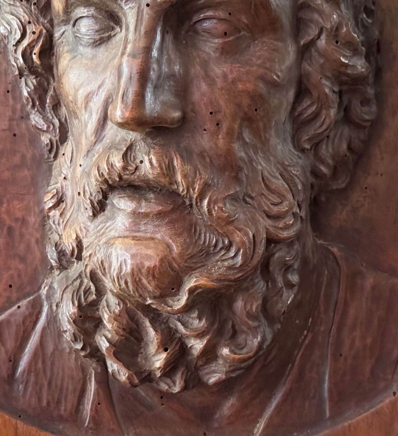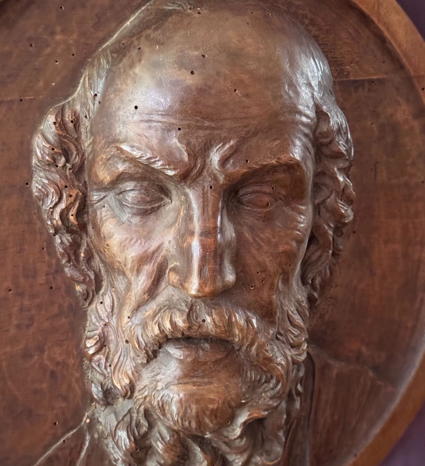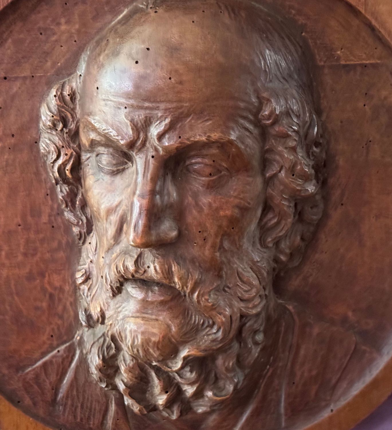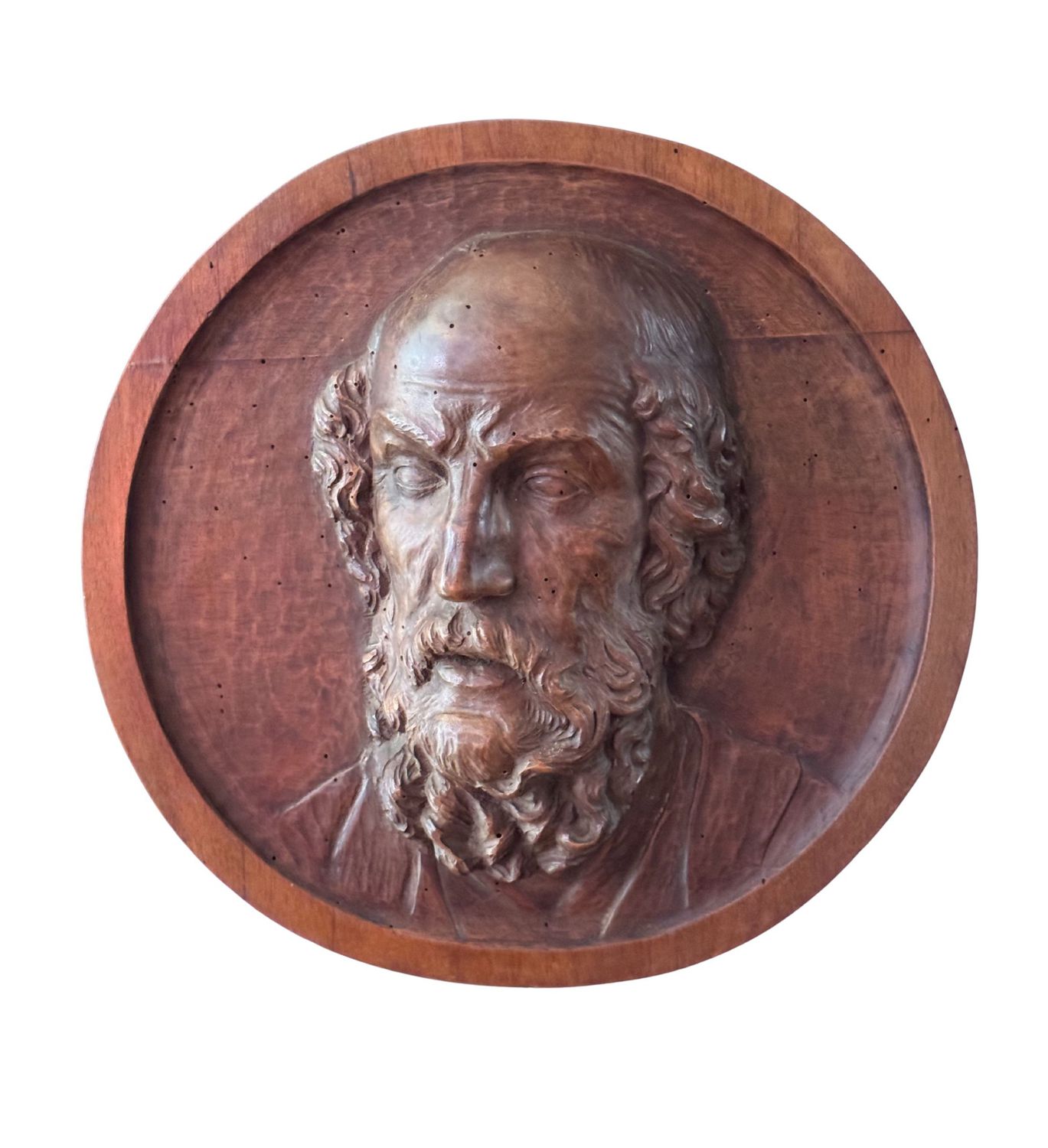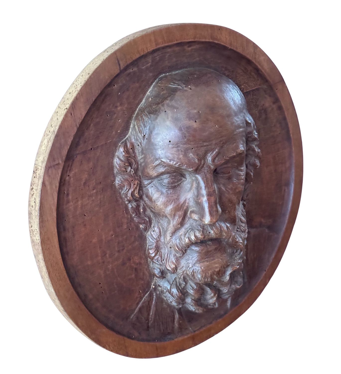 Scultura in legno a basso rilievo, periodo XIX secolo, raffigurante Personaggio maschile. Dimensioni: d46x15 cm. Da artista anonimo. Opera in buone condizioni con lievi segni di vissuto come da foto allegate.