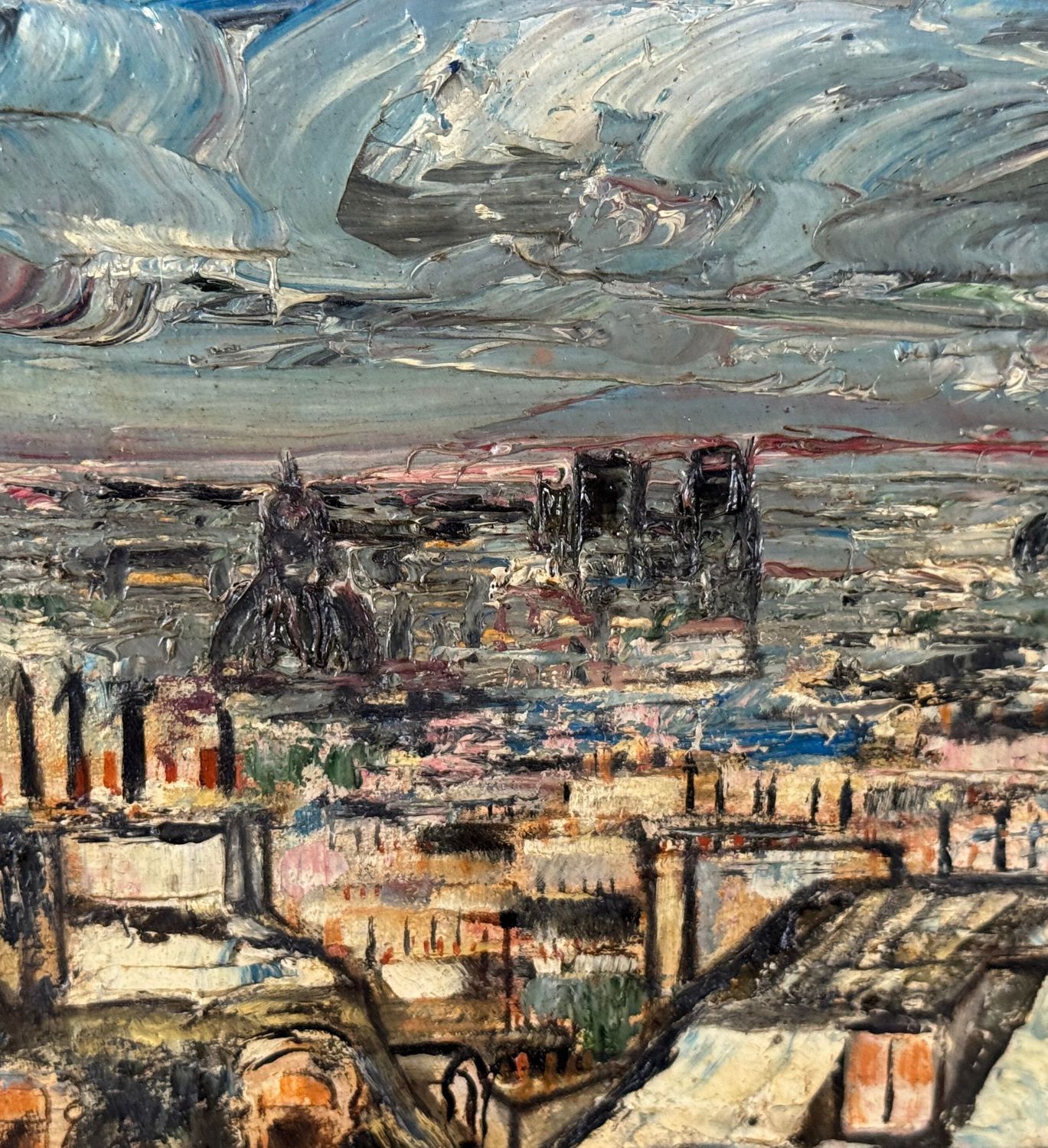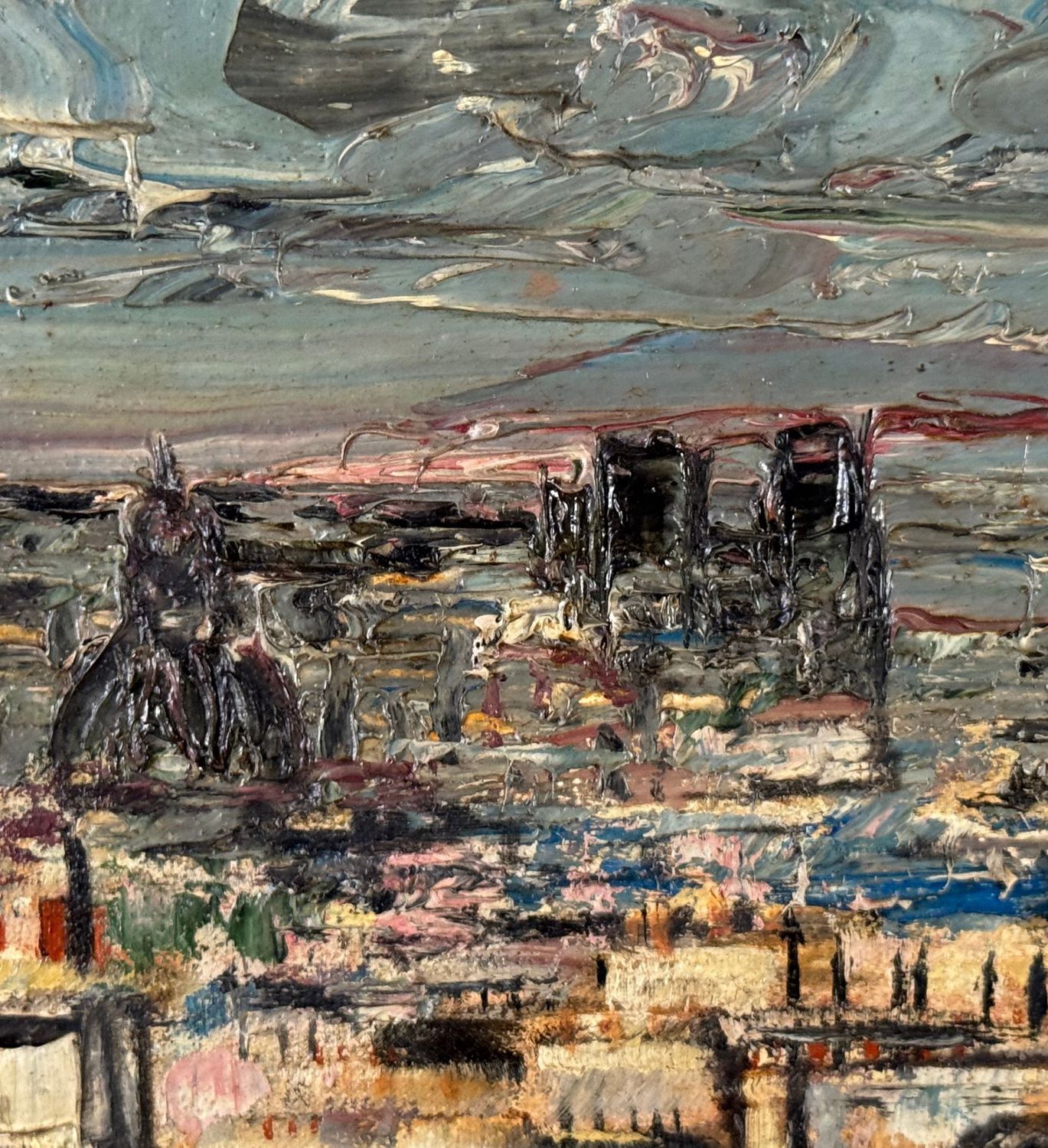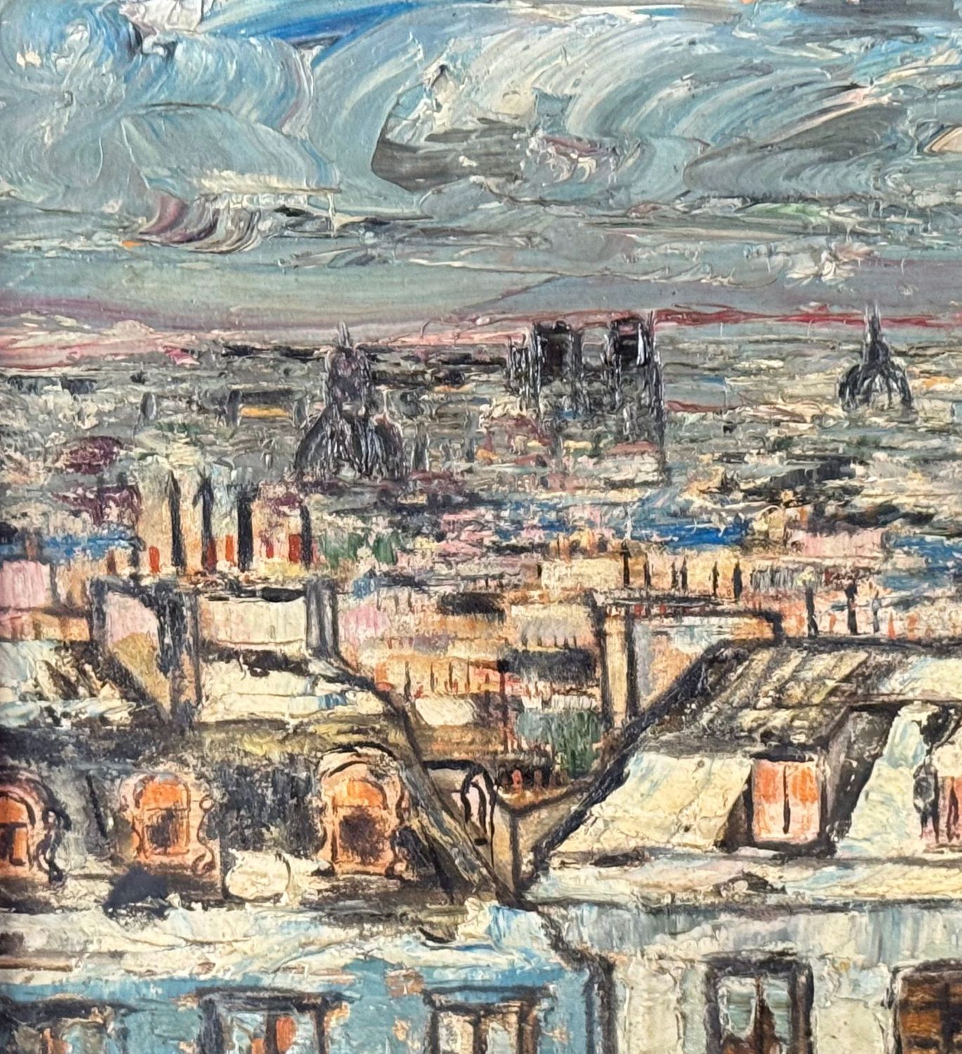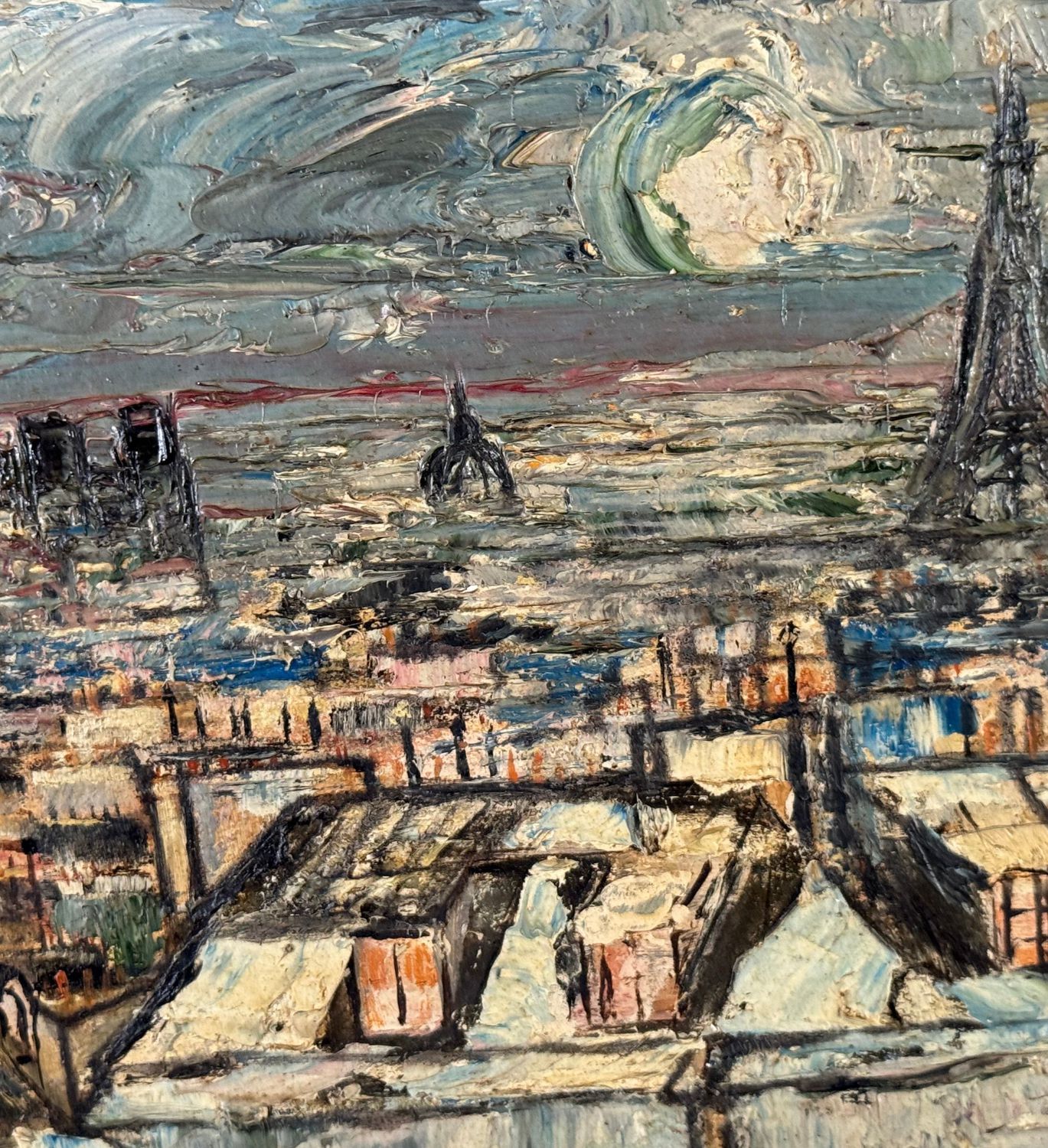 Dipinto olio su pannello, periodo XX secolo, scuola Europea, raffigurante Tetti. Dimensioni compreso cornice: 45x36. Dimensioni interno cornice: 32x23 cm. Da artista anonimo. Opera in buone condizioni.
