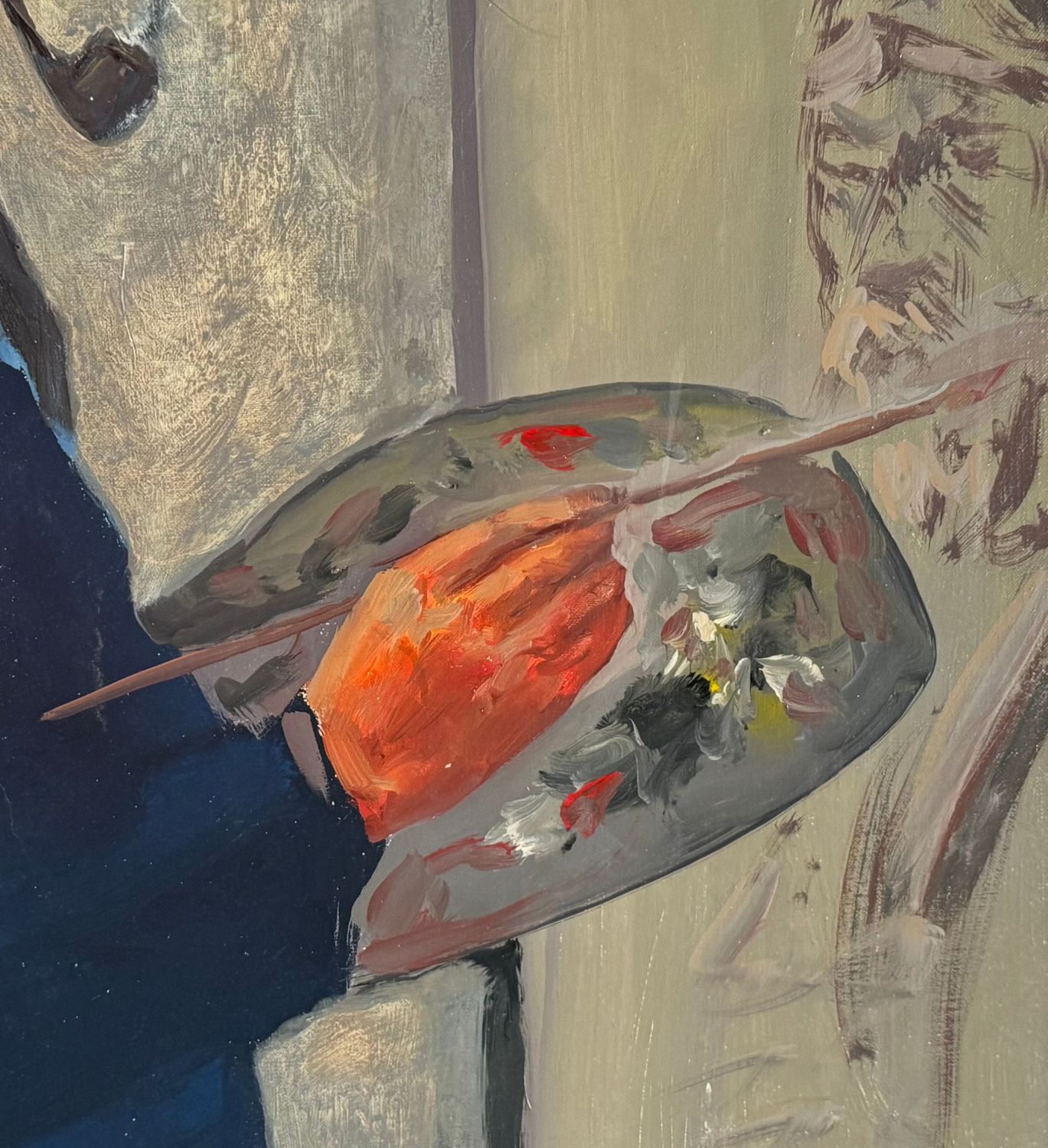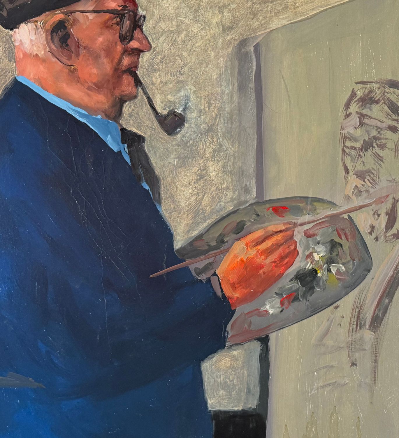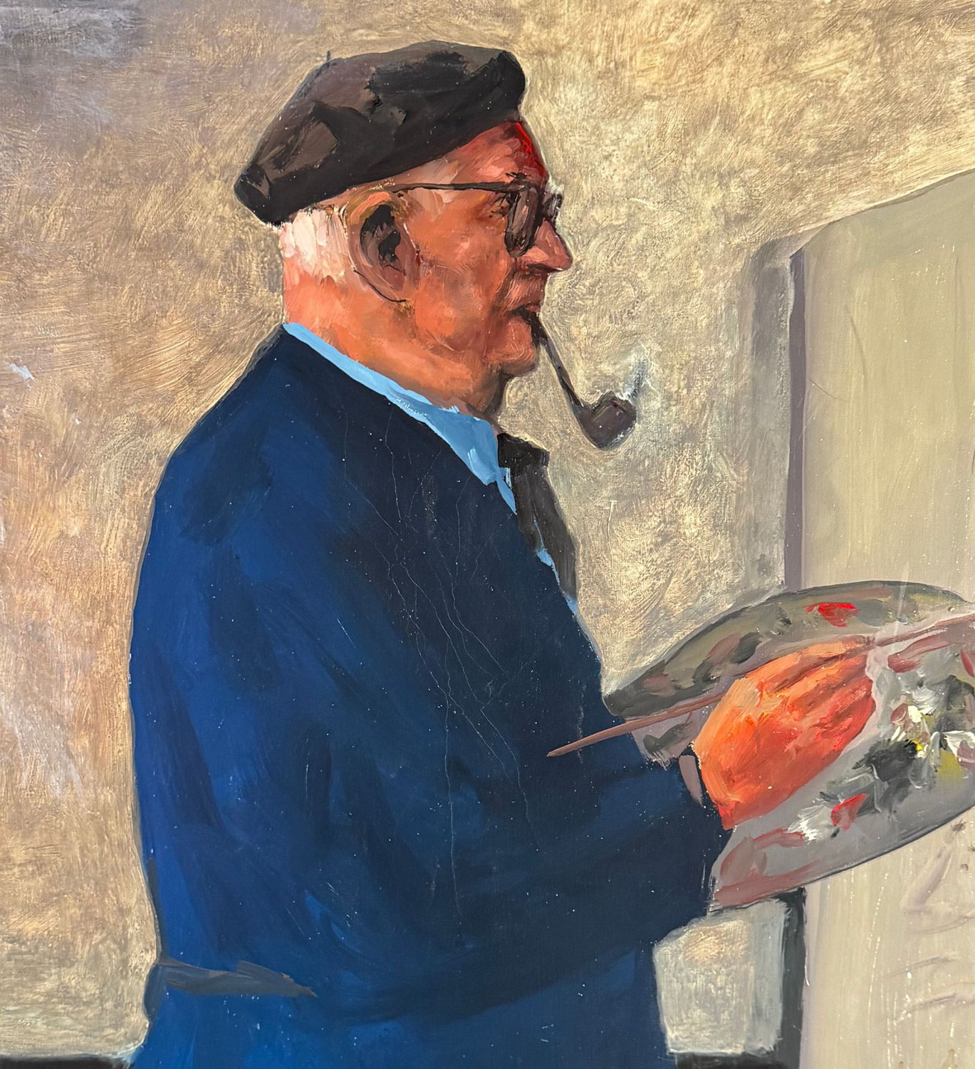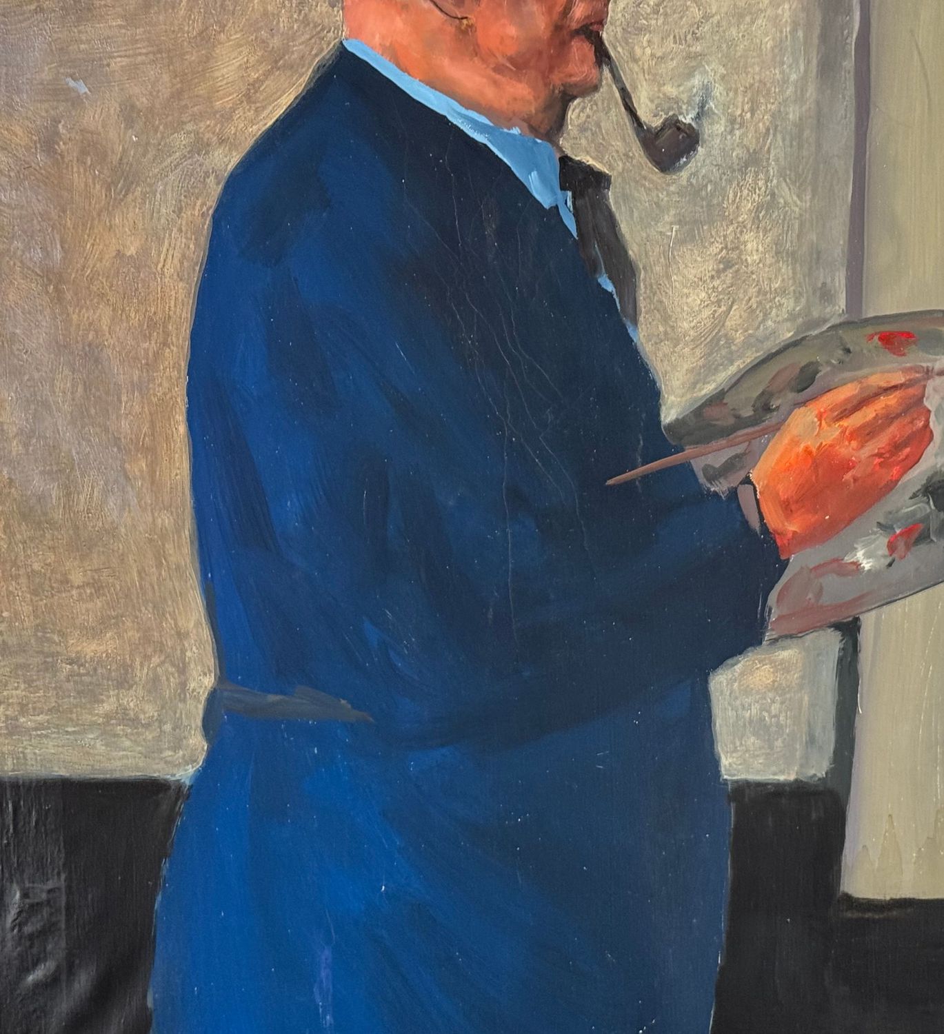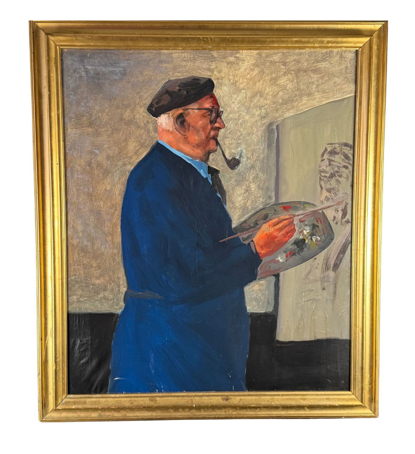 Dipinto olio su tela, scuola Italiana, periodo XX secolo, raffigurante Ritratto del pittore. Dimensioni compreso cornice: 81x94 cm. Dimensioni interno cornice: 81x68 cm. Da artista anonimo. Opera in buone condizioni con lievi segni di vissuto come da foto allegate.