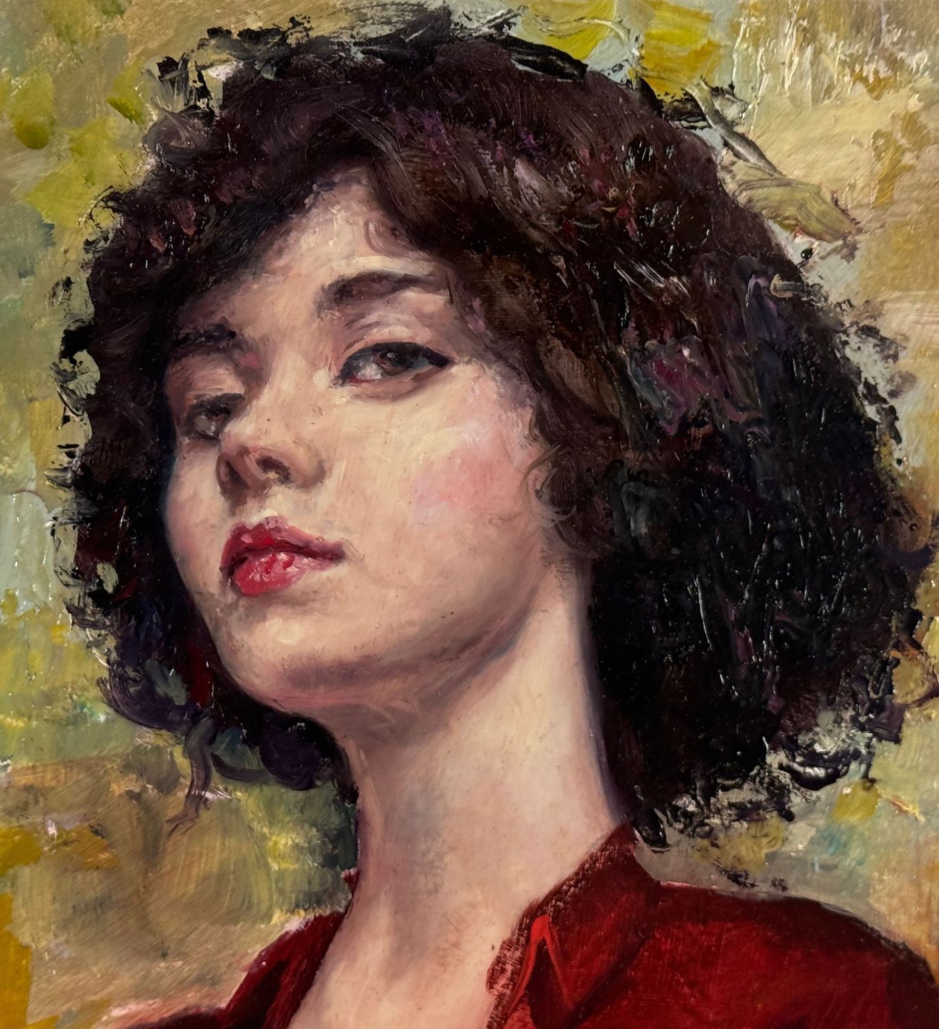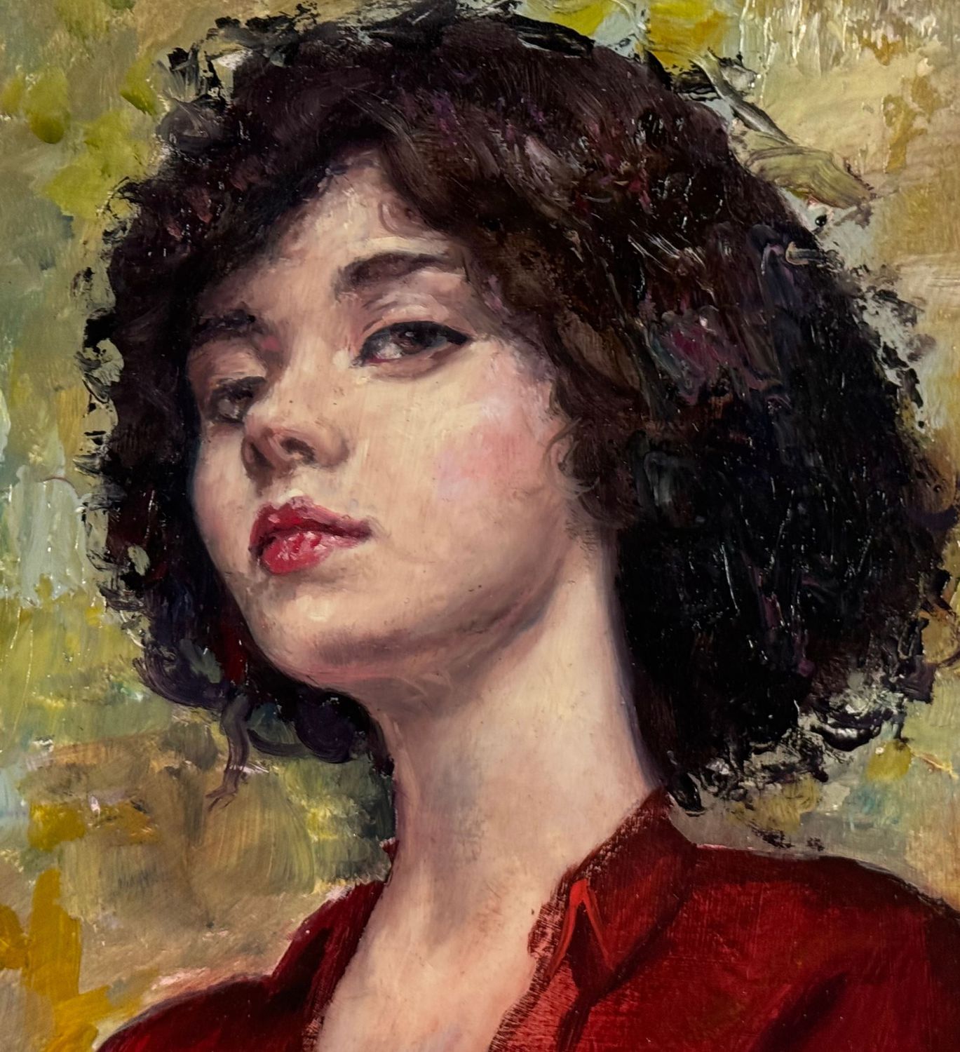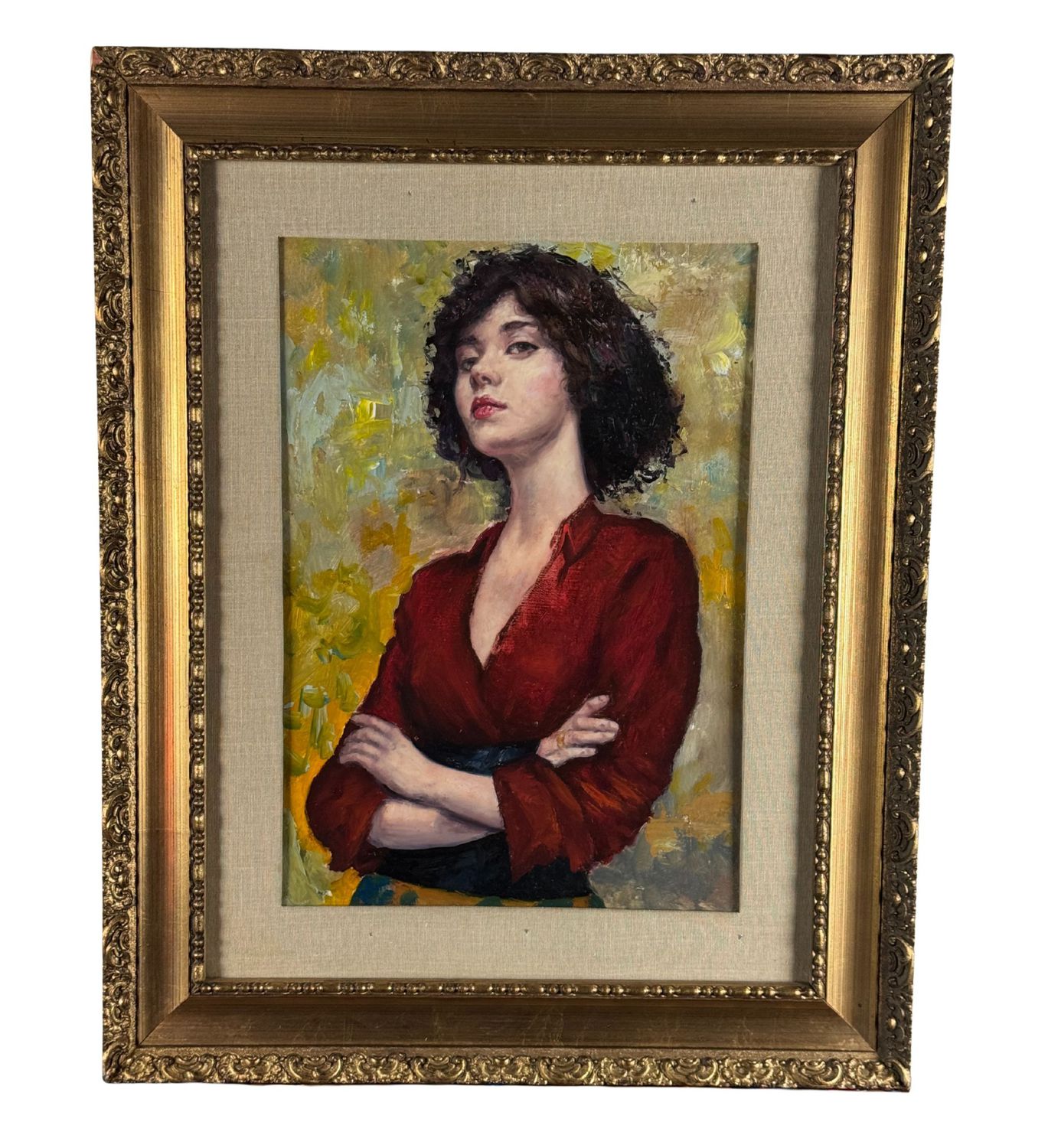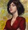 Dipinto olio su pannello, periodo XX secolo, scuola Italiana, raffigurante Ritratto di donna con abito rosso. Dimensioni compreso cornice: 54x67 cm. Dimensioni interno cornice: 38x487 cm. Da artista anonimo. Opera in buone condizioni.