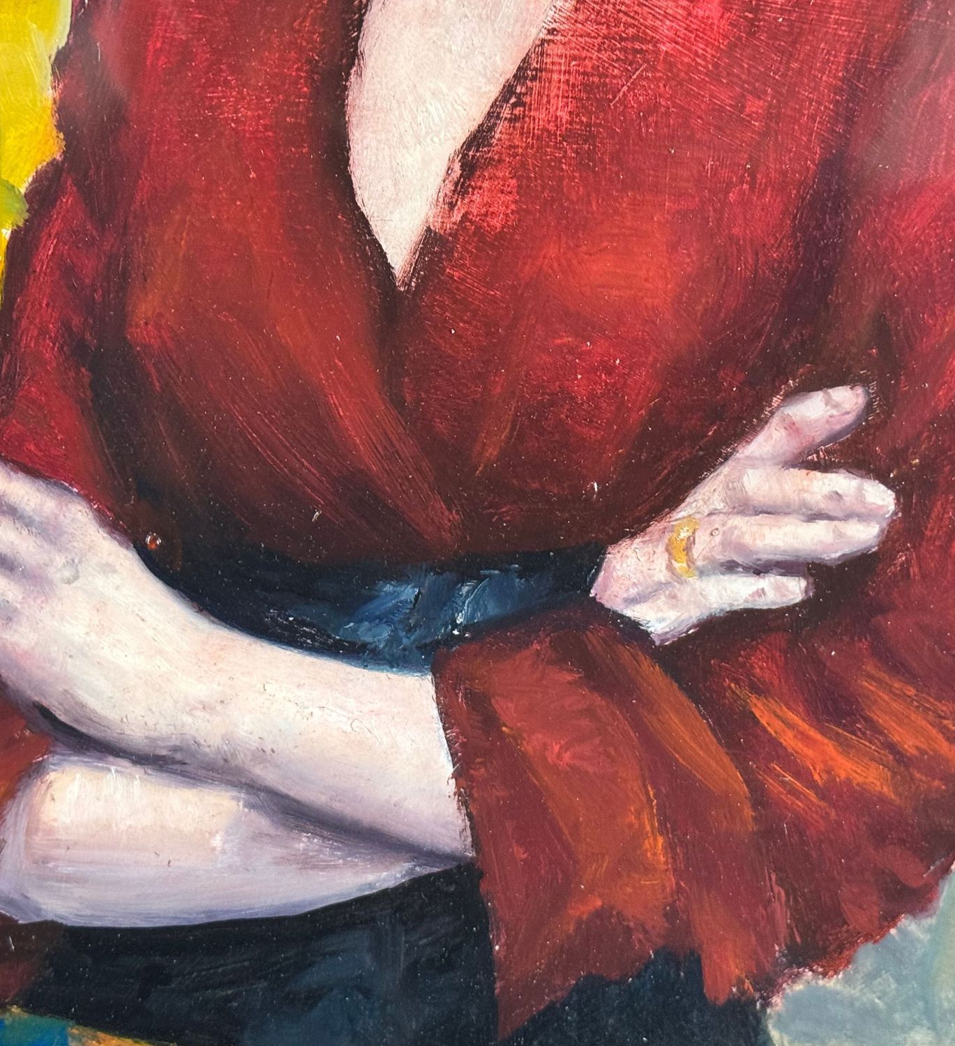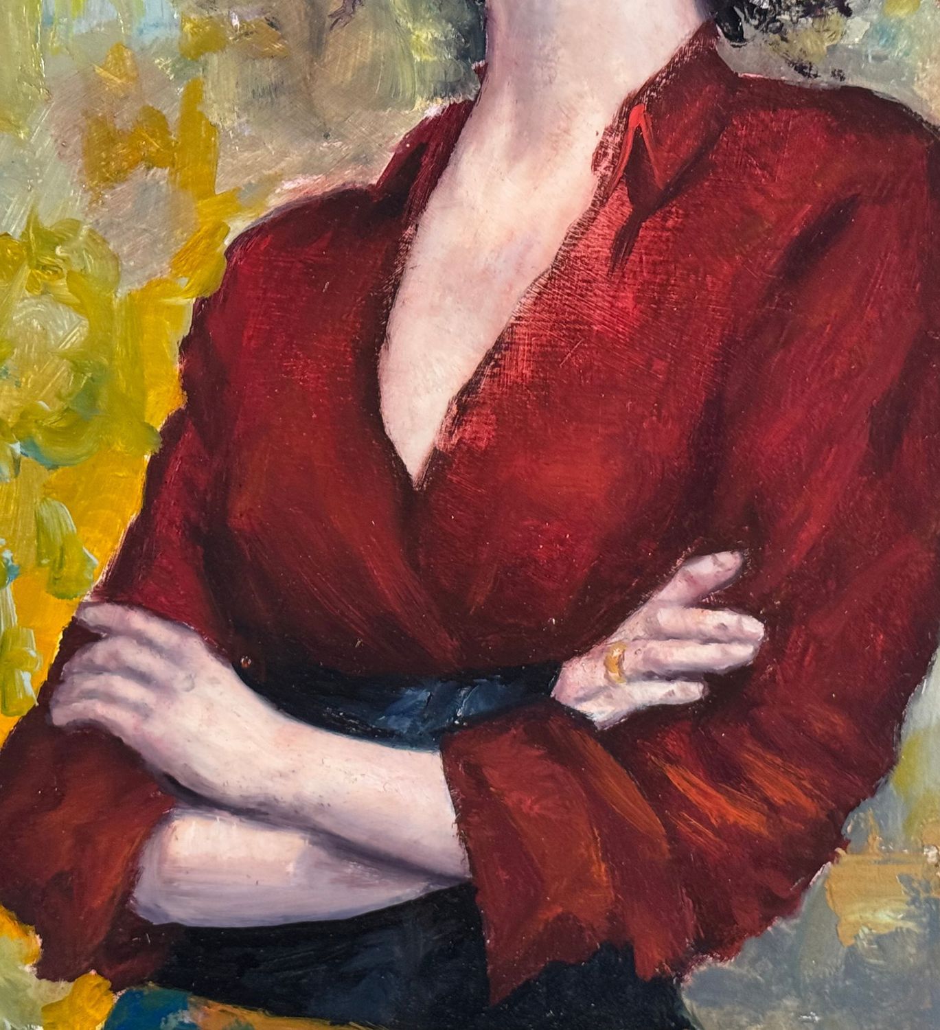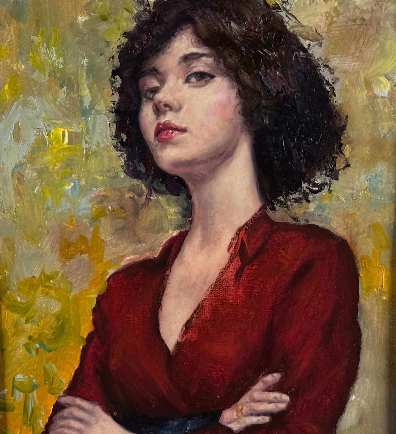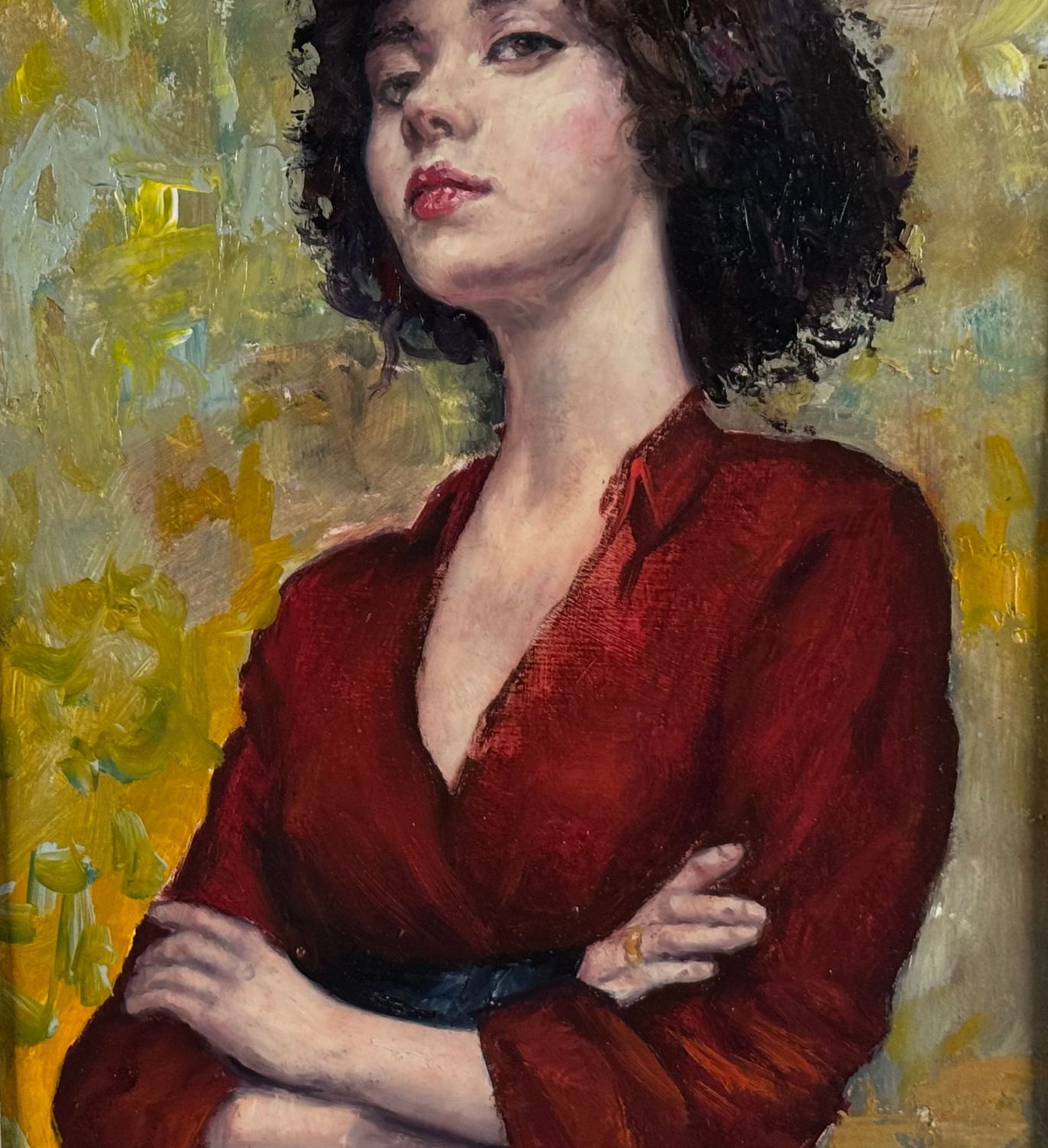 Dipinto olio su pannello, periodo XX secolo, scuola Italiana, raffigurante Ritratto di donna con abito rosso. Dimensioni compreso cornice: 54x67 cm. Dimensioni interno cornice: 38x487 cm. Da artista anonimo. Opera in buone condizioni.