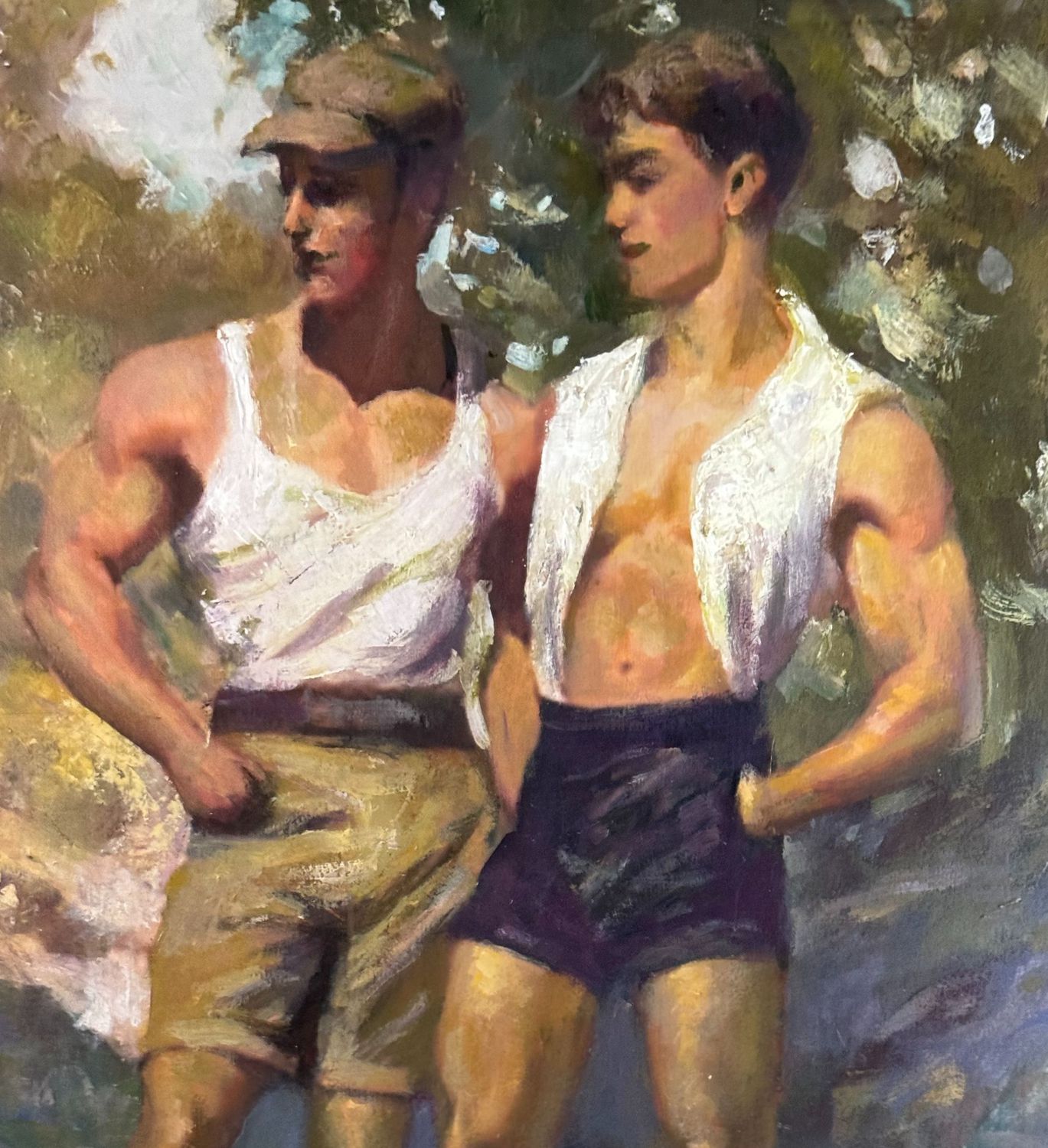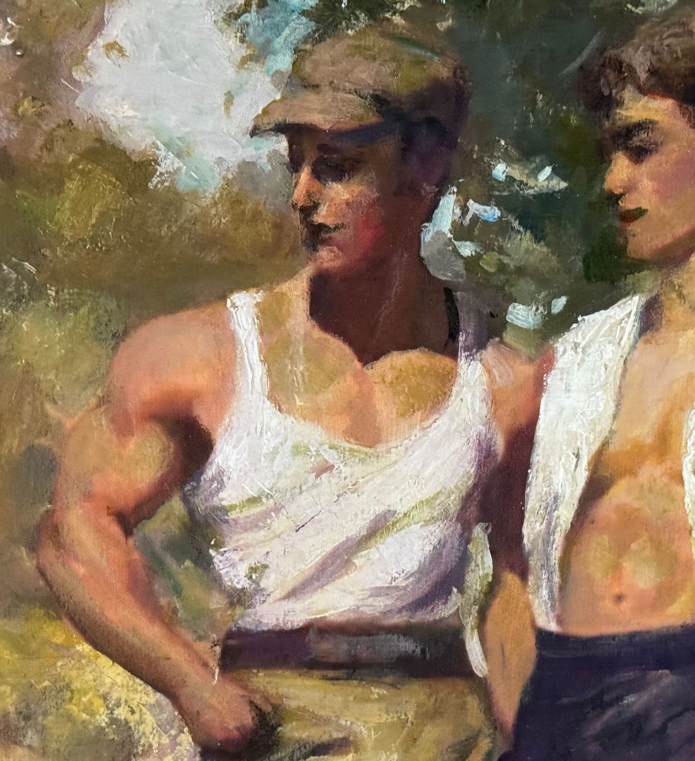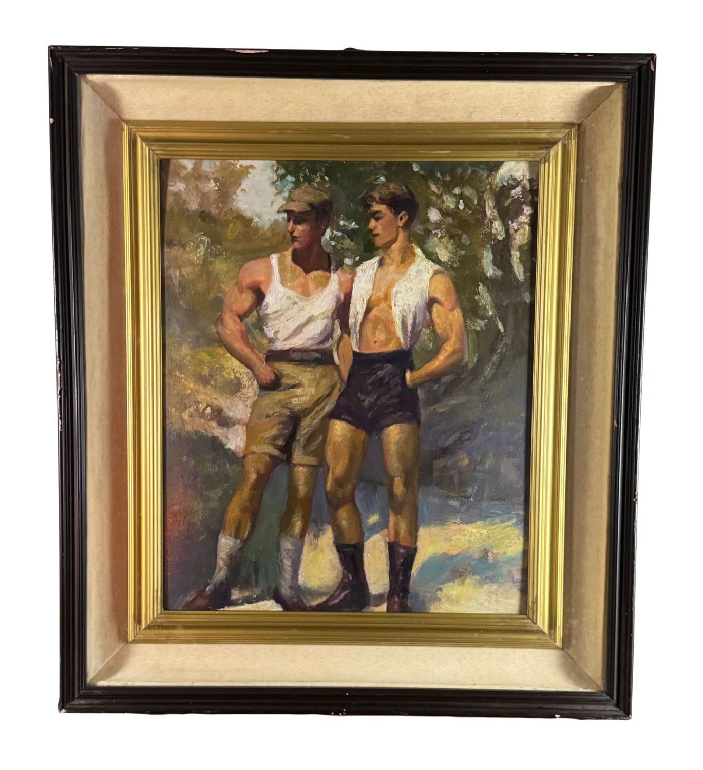 Dipinto olio su pannello, periodo XX secolo, scuola Italiana, raffigurante Ritratto di due figure maschili. Dimensioni compreso cornice: 61x69 cm. Dimensioni interno cornice: 40x50 cm. Da artista anonimo. Opera in buone condizioni.