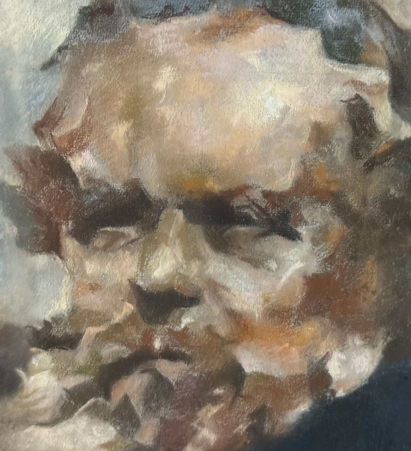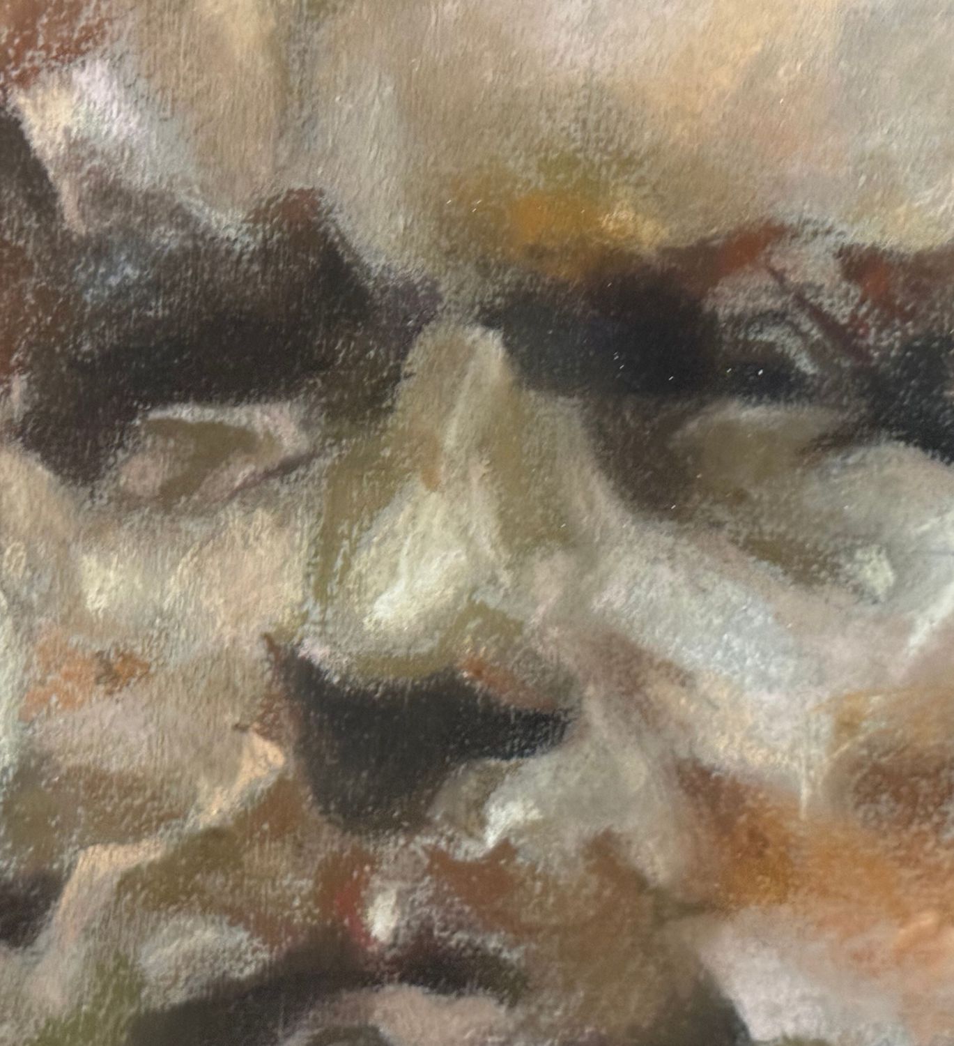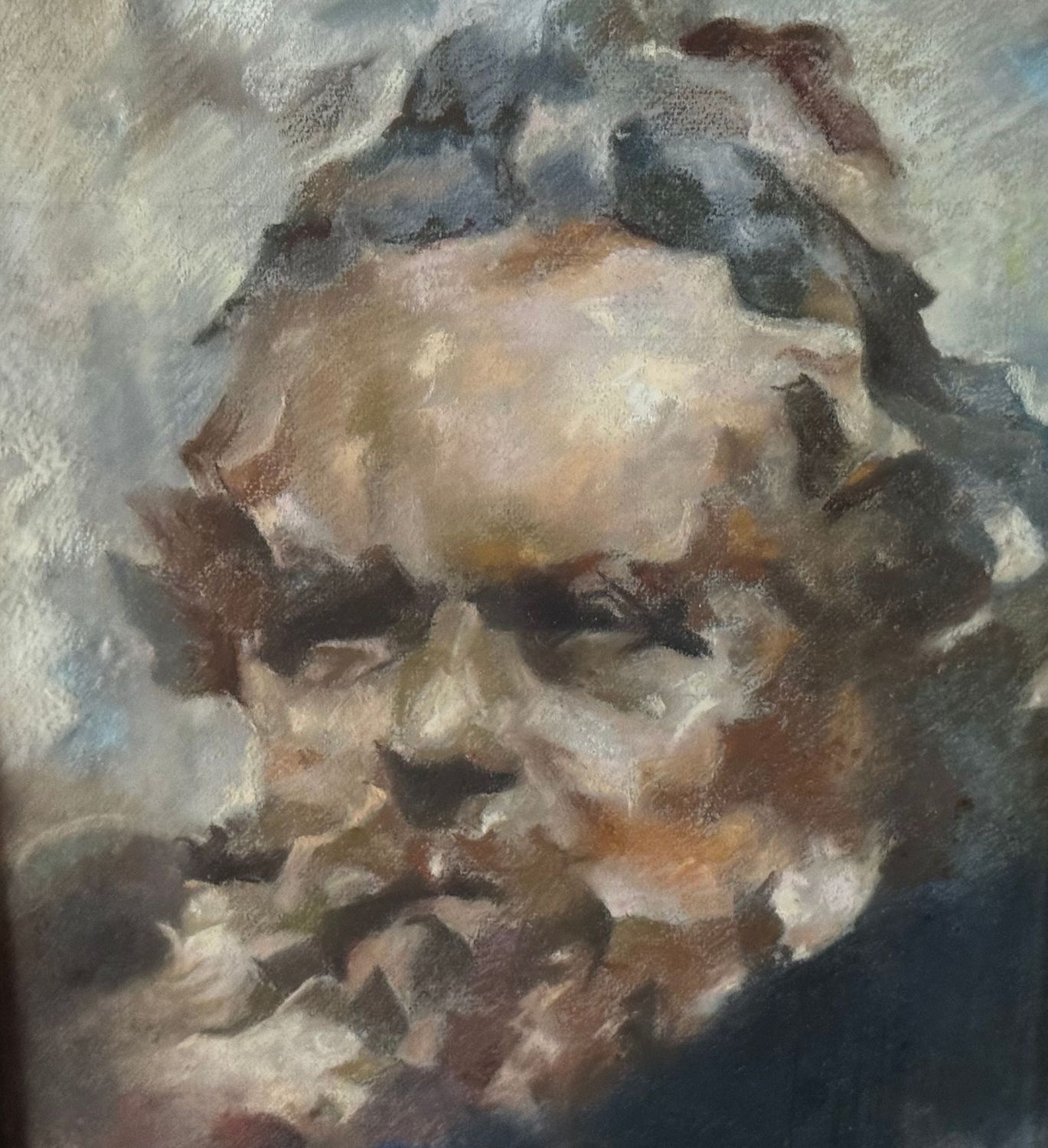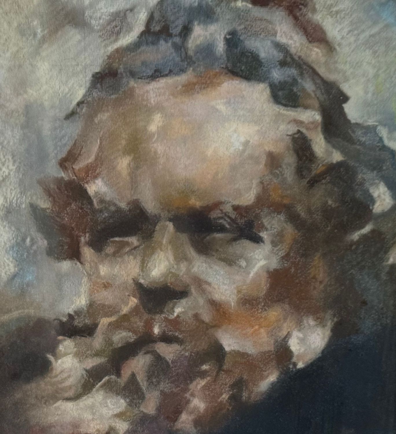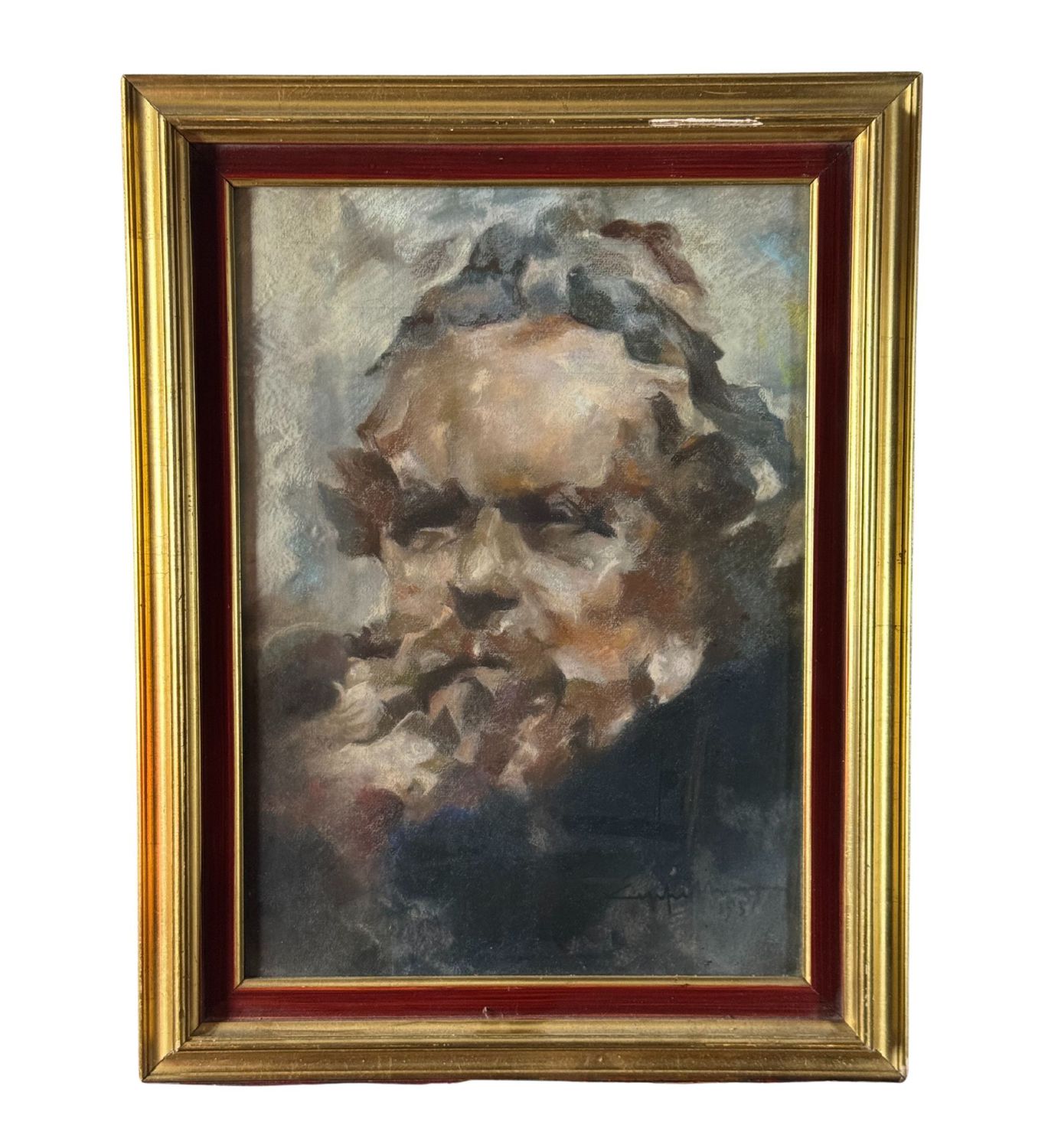Dipinto tecnica mista su cartoncino (acrilico e gessetto), periodo XX secolo, scuola Italiana, raffigurante Ritratto maschile. Dimensioni compreso cornice: 39x50 cm. Dimensioni interno cornice: 30x41 cm. Reca firma e data (1951) in basso a destra da artista non identificato. Opera in buone condizioni.