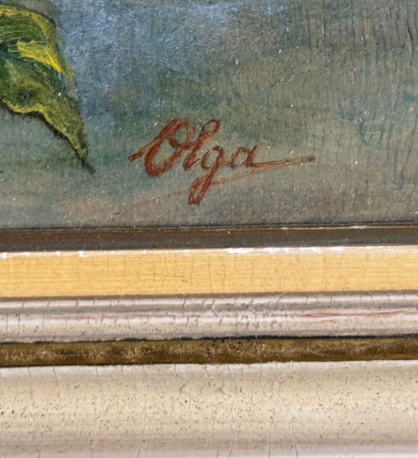 Dipinto olio su tavola, periodo XX secolo, scuola Italiana, raffigurante Natura morta. Dimensioni compreso cornice: 52x43 cm. Dimensioni interno cornice: 38x30 cm. Reca firma in basso a destra Olga. Opera in buone condizioni.