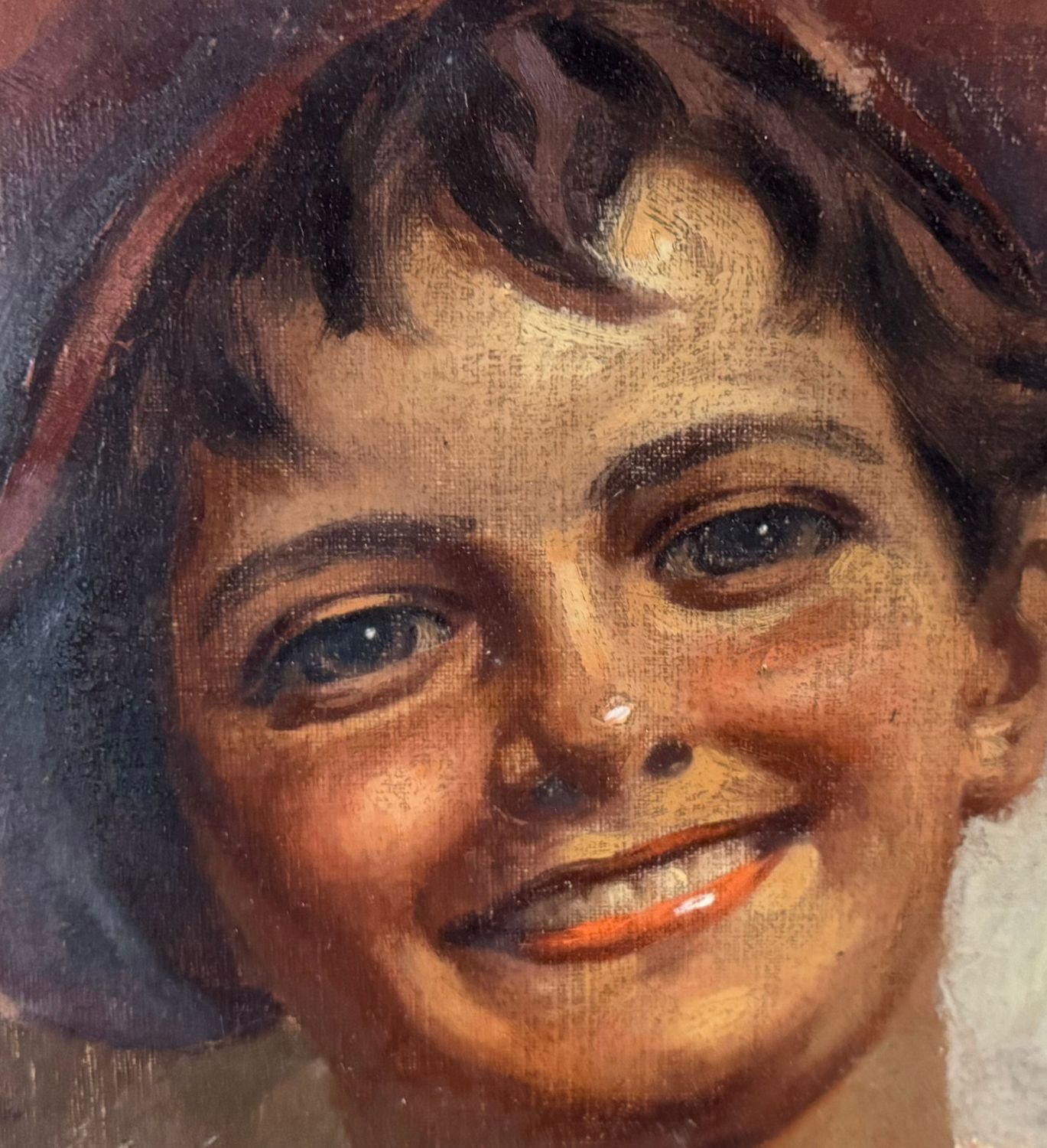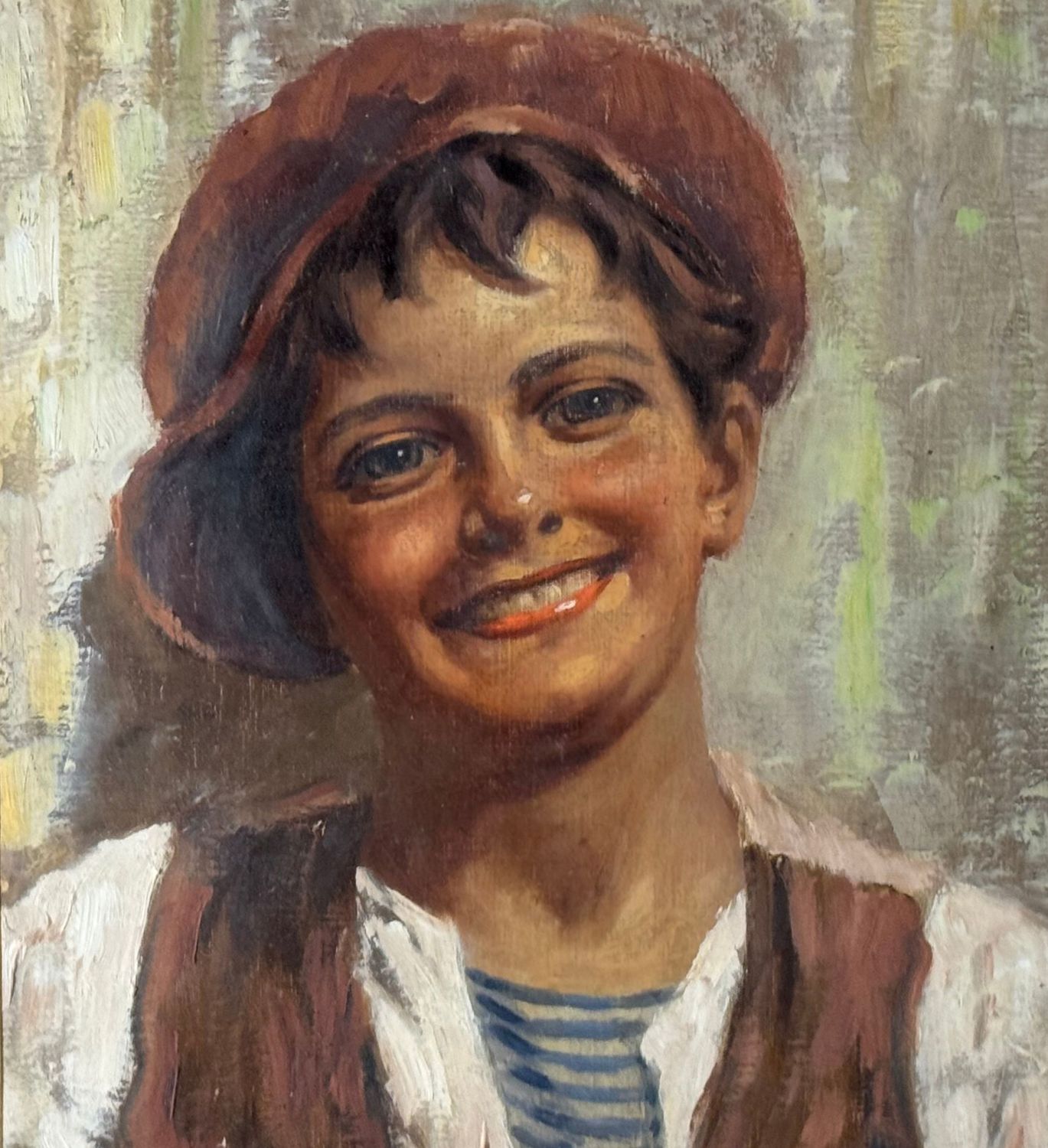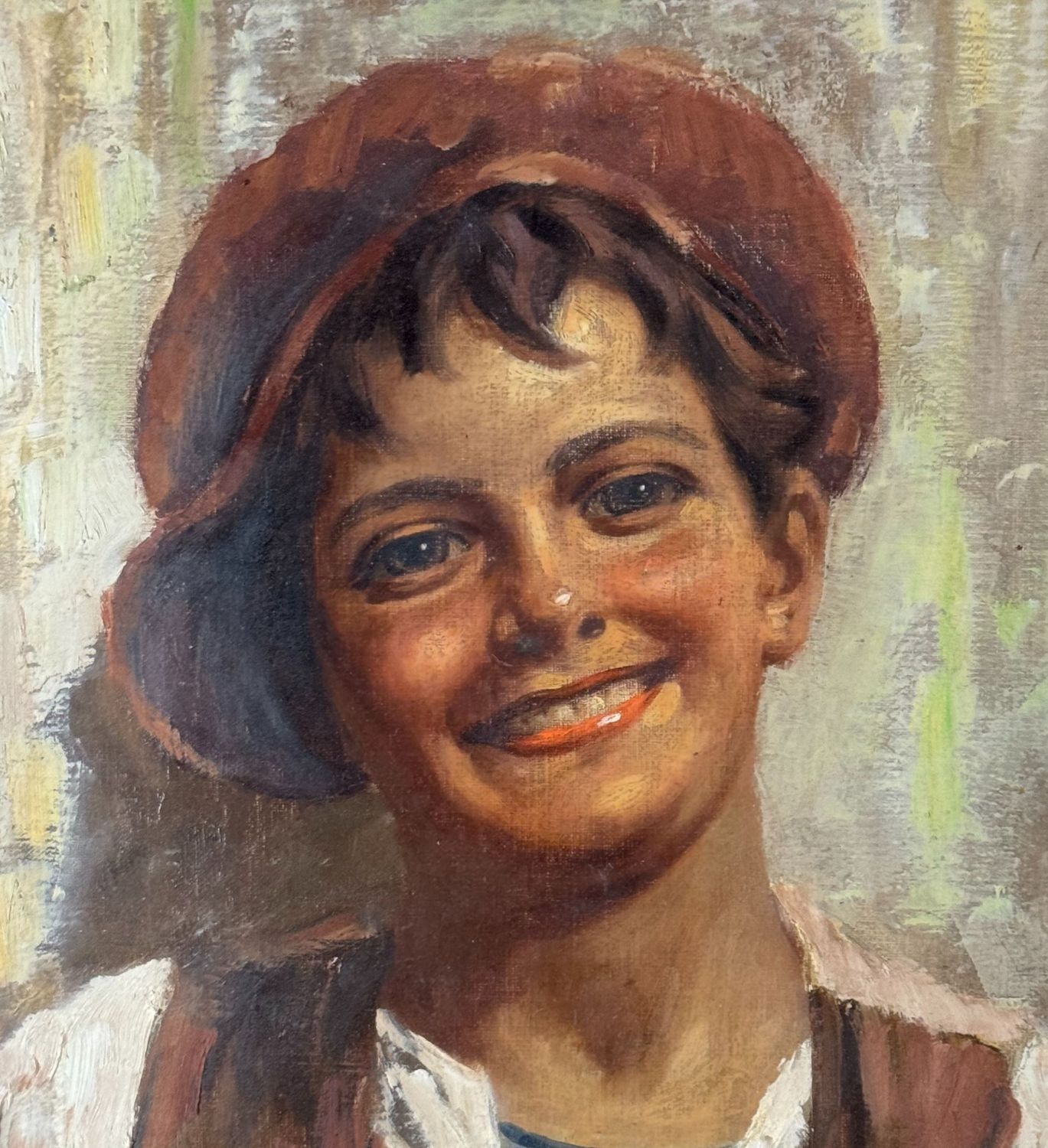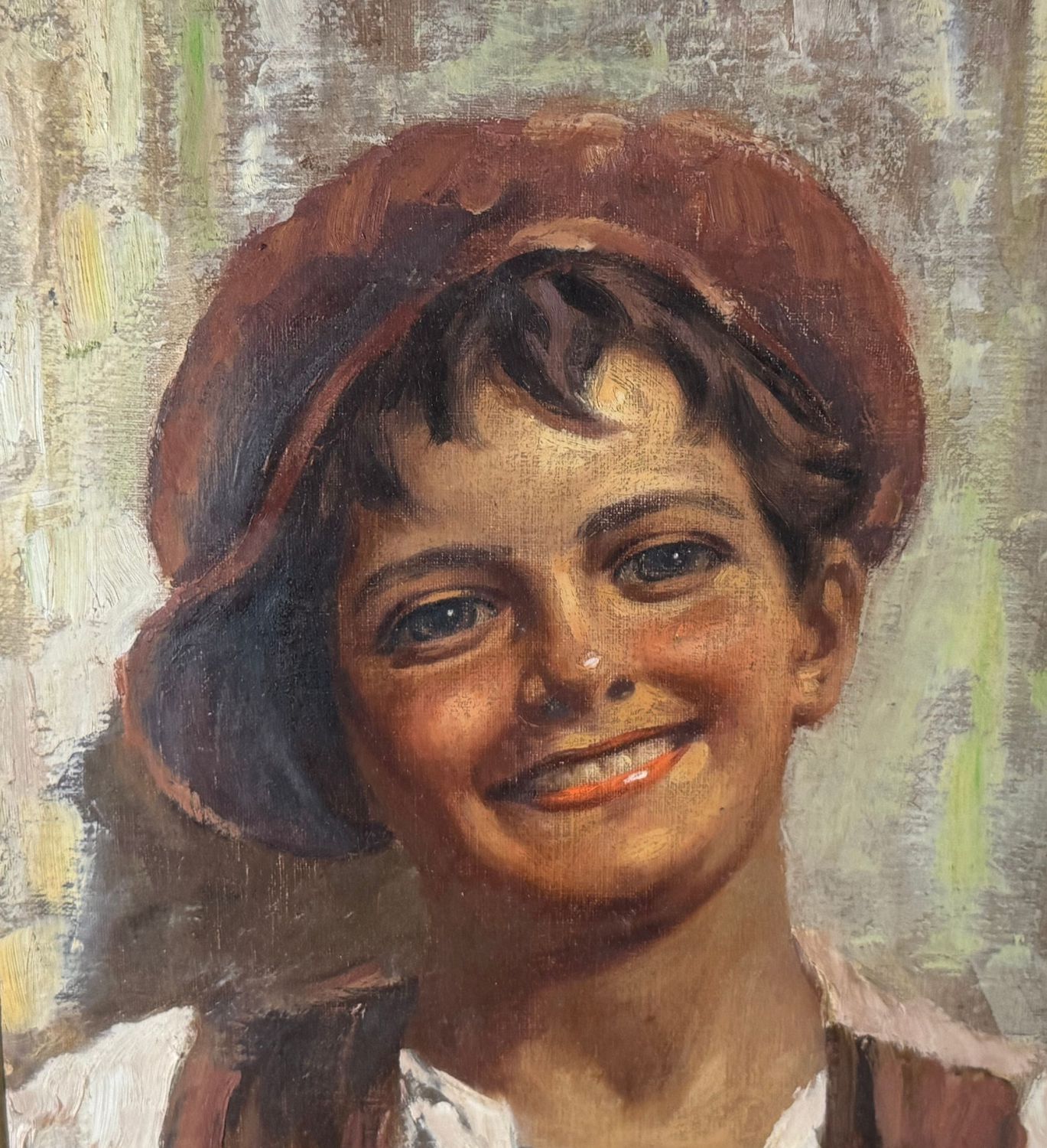 Dipinto olio su tavola, periodo XX secolo, scuola Italiana, raffigurante Ritratto di giovane. Dimensioni compreso cornice: 59x69 cm. Dimensioni interno cornice: 30x40 cm. Firmato in basso a sinistra Antonio Vallone. Opera in buone condizioni.