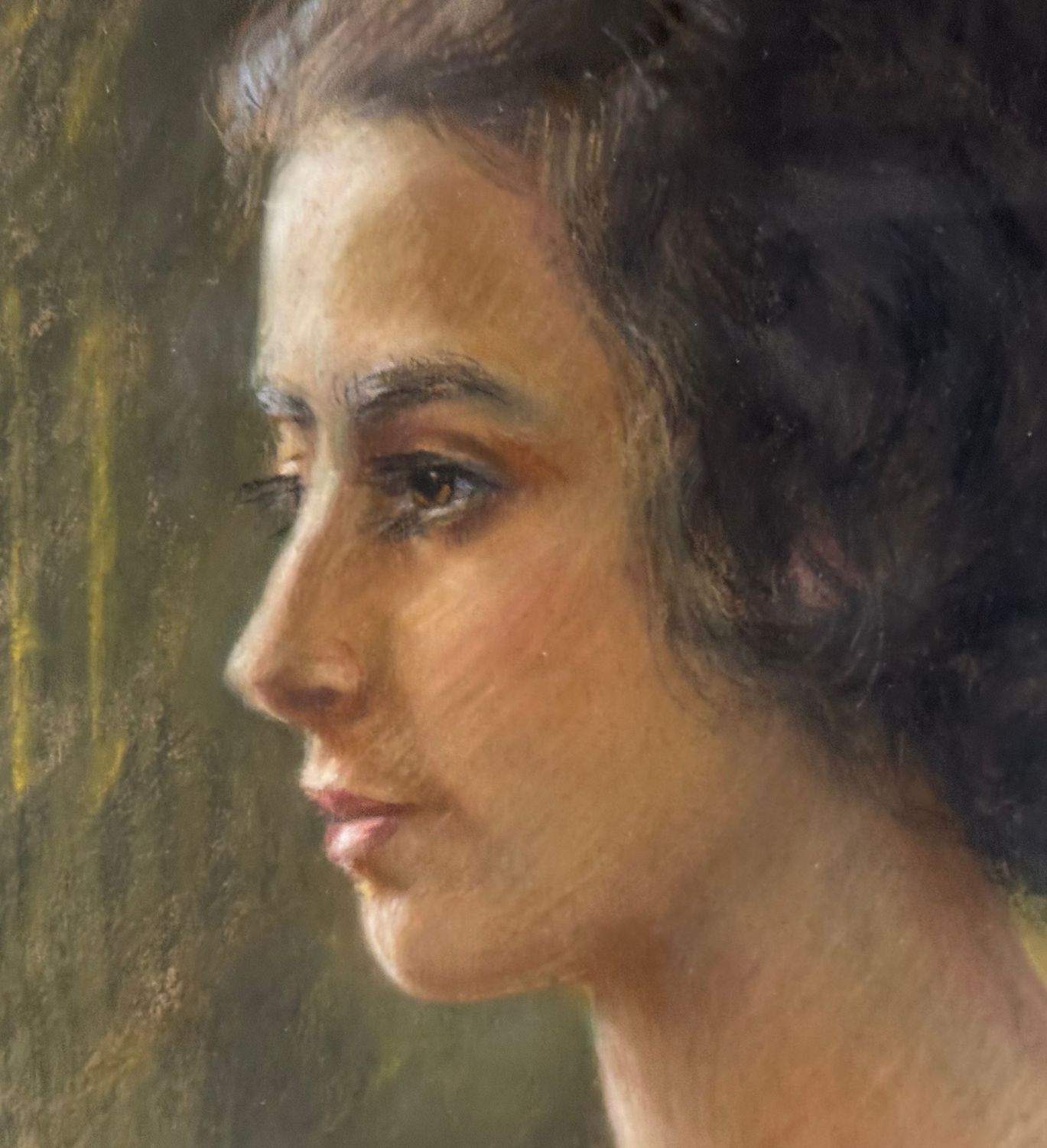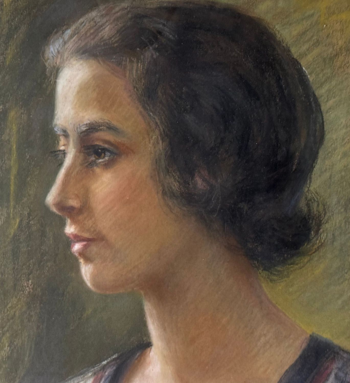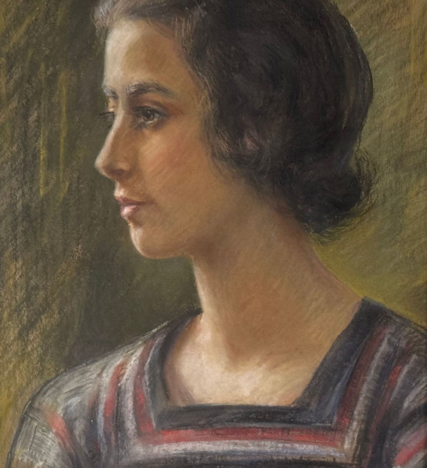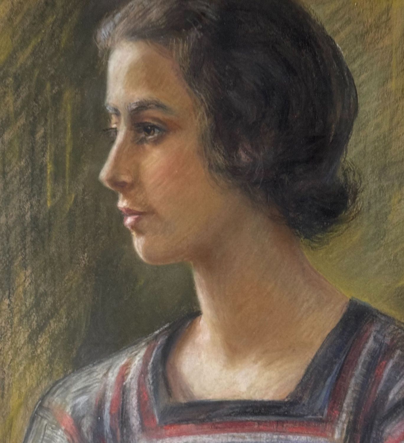 Dipinto tecnica mista su cartoncino, periodo XX secolo, scuola Italiana, raffigurante Ritratto di donna. Dimensioni compreso cornice: 64x74 cm. Dimensioni interno cornice: 43x53 cm. Firmato in basso a destra. Opera in buone condizioni.