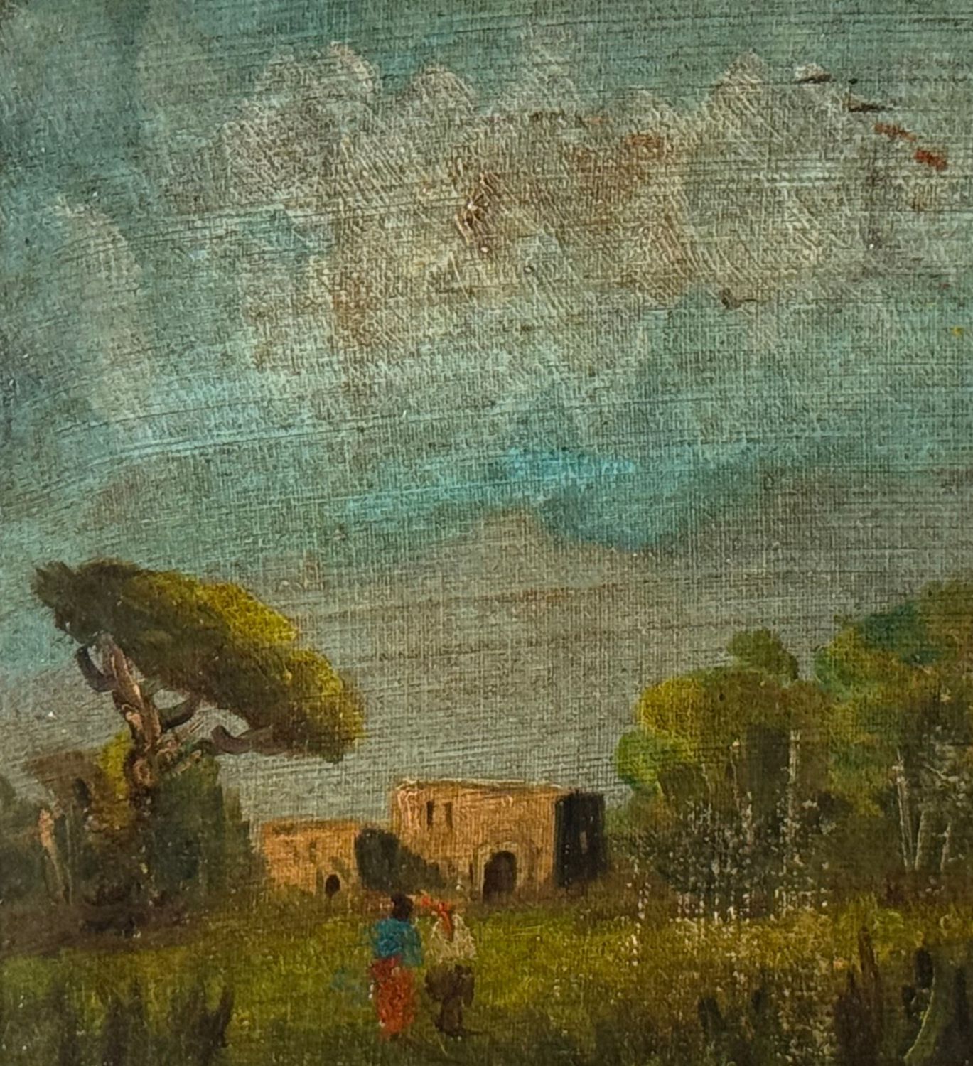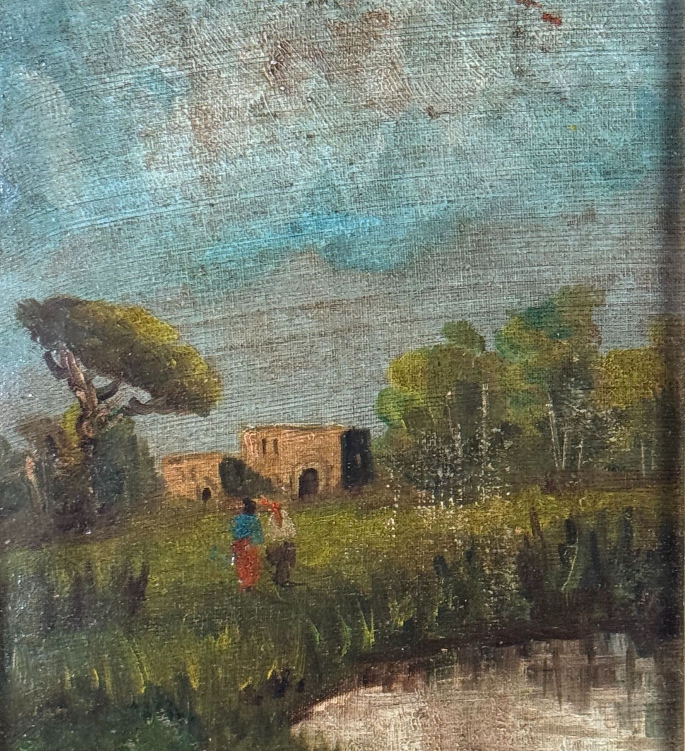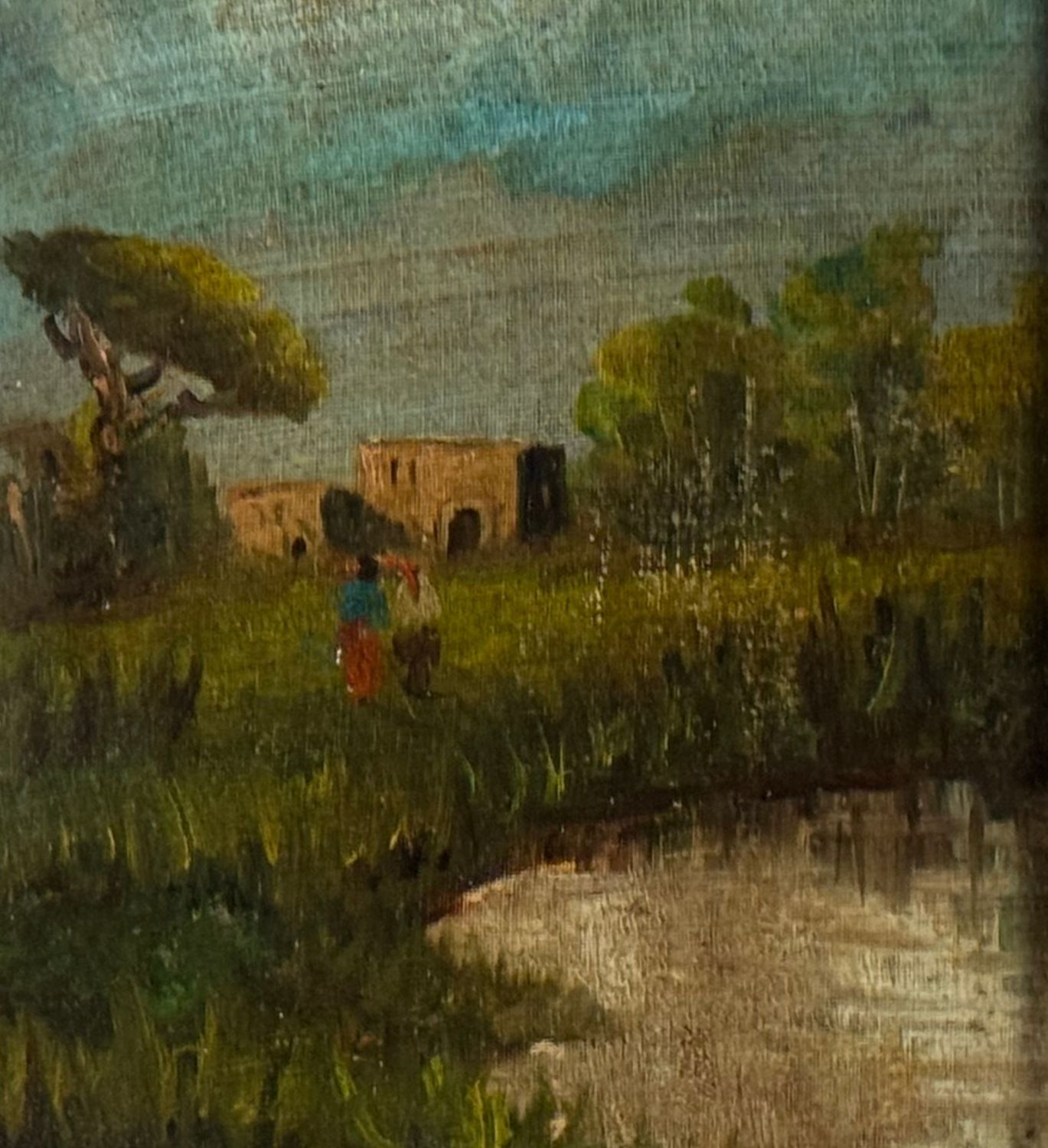 Dipinto olio su tela, periodo XIX secolo, scuola Italiana, raffigurante Paesaggio di campagna. Dimensioni compreso cornice: 27x34 cm. Dimensioni interno cornice: 18x24 cm. Reca firma in basso a sinistra Giacinto Corsi (1829 - 1909). Opera in buone condizioni con lievi segni di vissuto come da foto allegate.