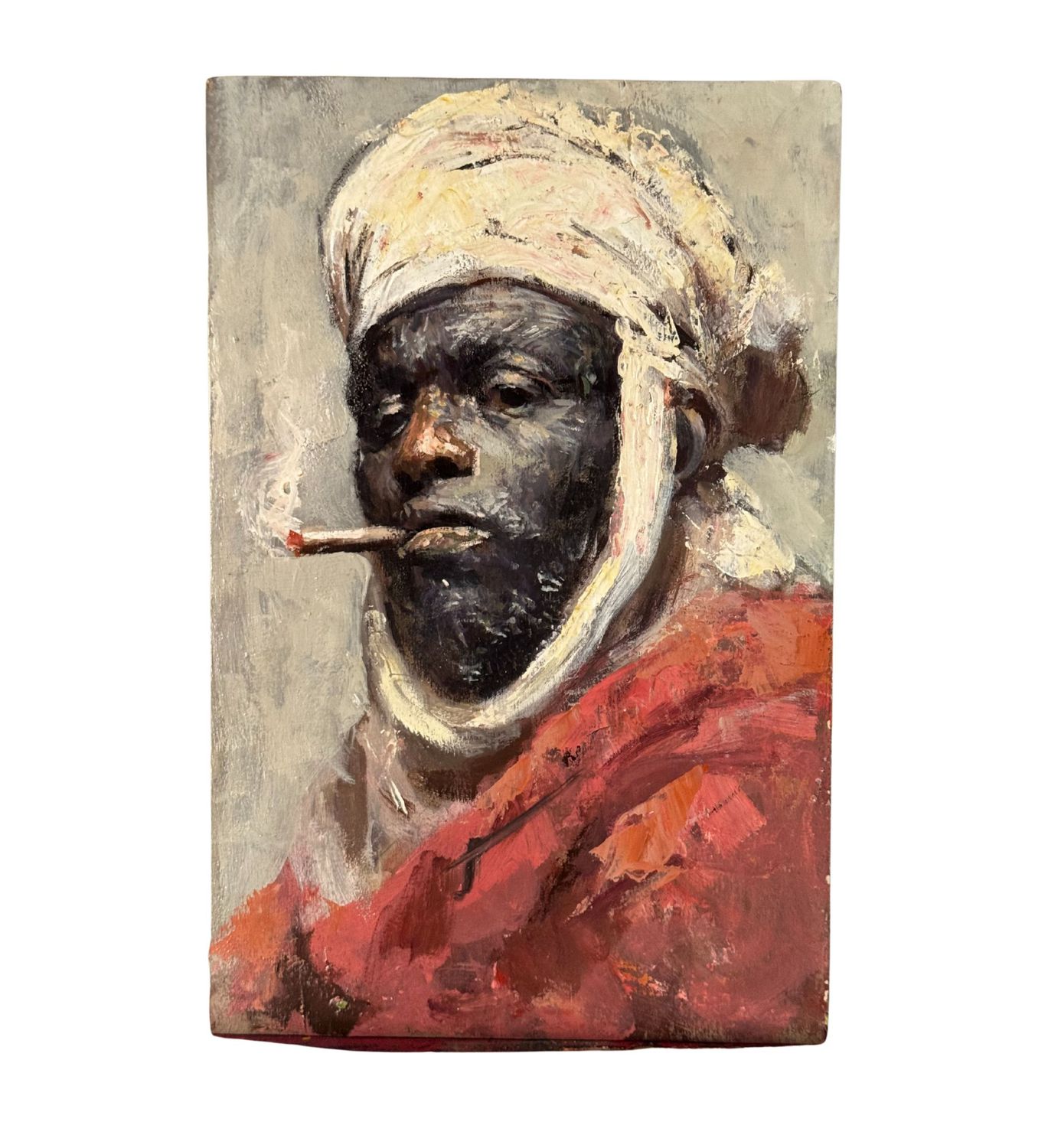 Dipinto olio su tavola, periodo XX secolo, scuola Italiana, raffigurante Ritratto di uomo con turbante bianco. Dimensioni: 22x33 cm. Da artista anonimo. Opera in buone condizioni.