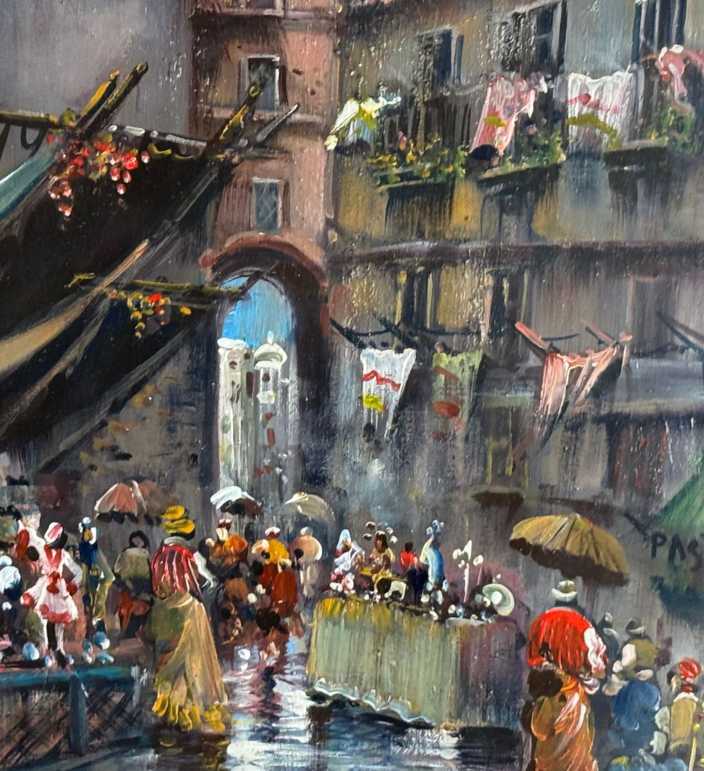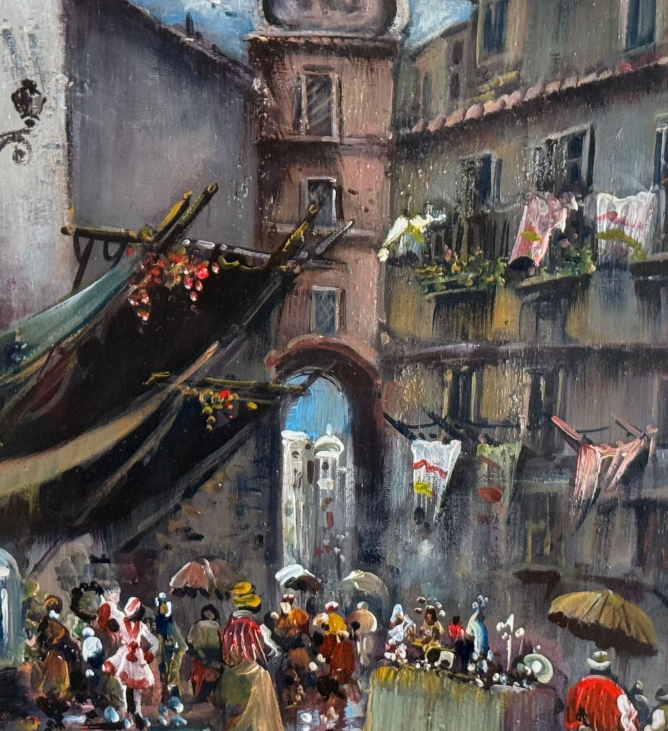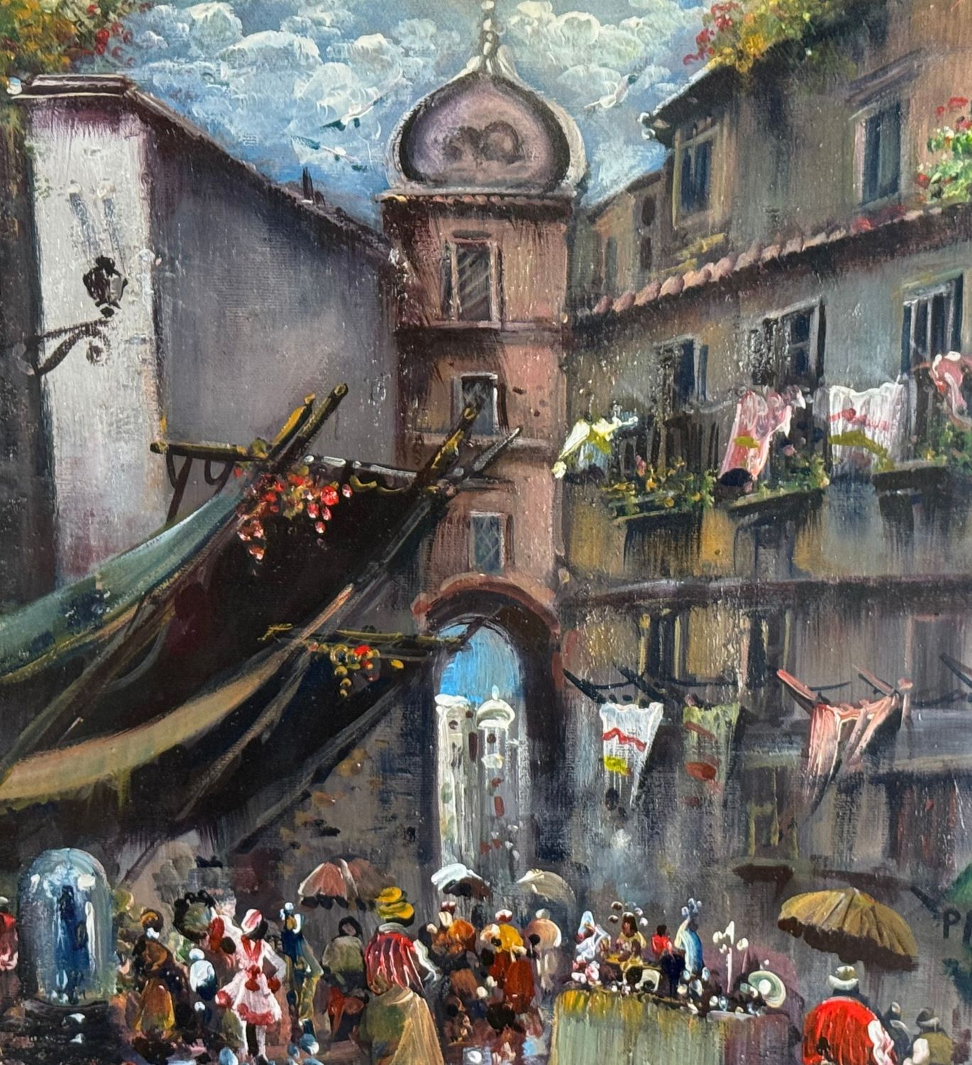 Dipinto olio su tela, periodo XX secolo, scuola Italiana, raffigurante Strada napoletana (San Gregorio Armeno). Dimensioni compreso cornice: 62x71 cm. Dimensioni interno cornice: 40x50 cm. Da artista anonimo. Opera in buone condizioni. Cornice difetti e mancanze.