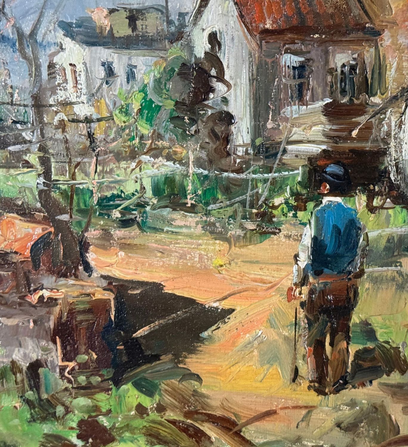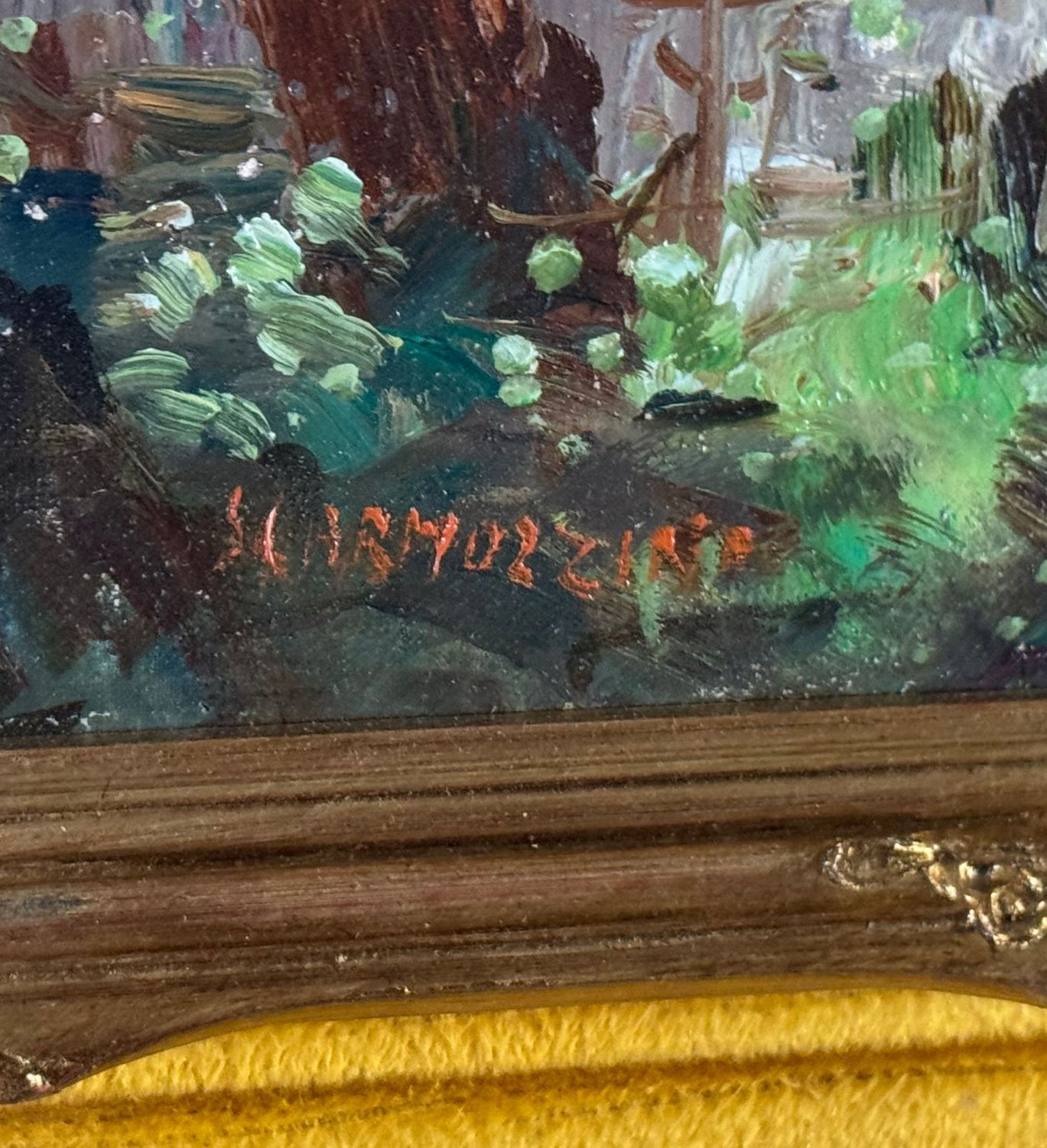 Dipinto olio su tela, periodo XX secolo, scuola Italiana, raffigurante Paesaggio di campagna con personaggi. Dimensioni compreso cornice: 52x61 cm. Dimensioni interno cornice: 40x30 cm. Firmato in basso a sinistra Scarmuzzini. Opera in buone condizioni.