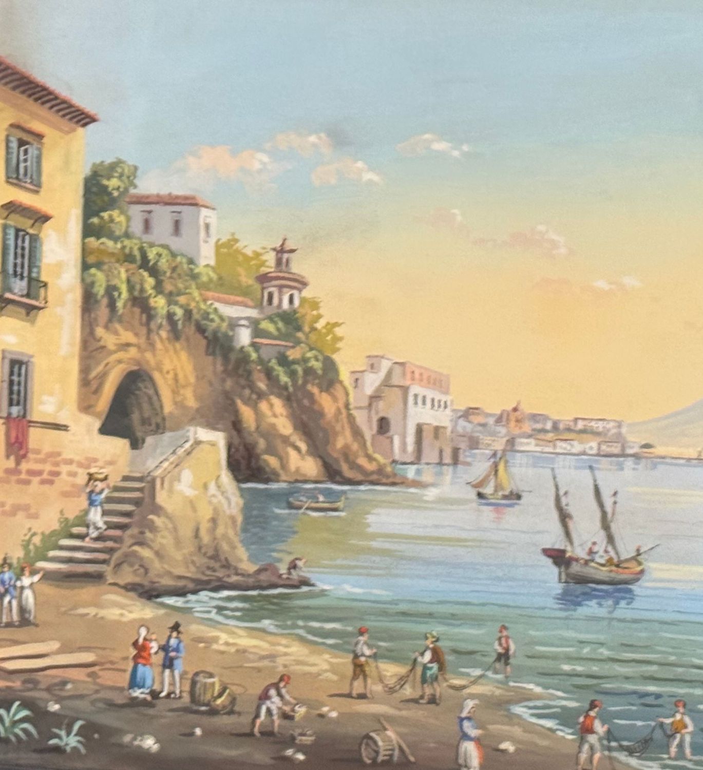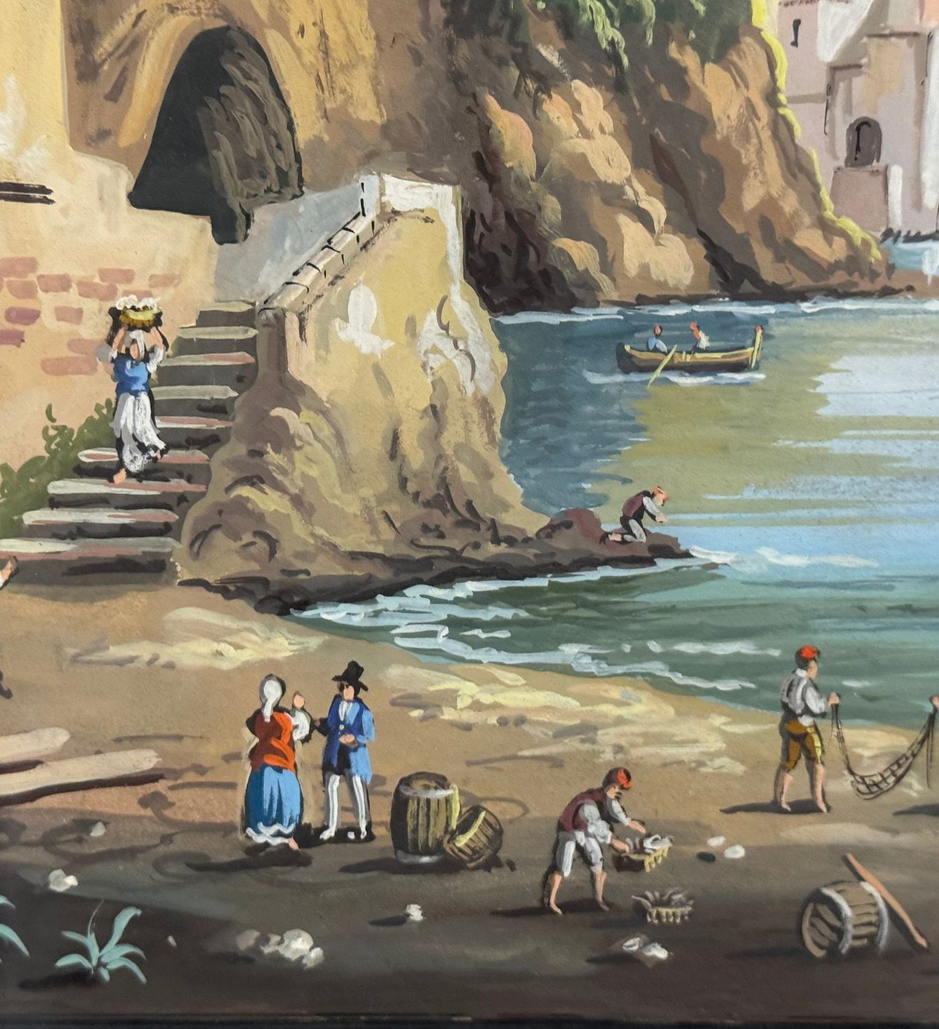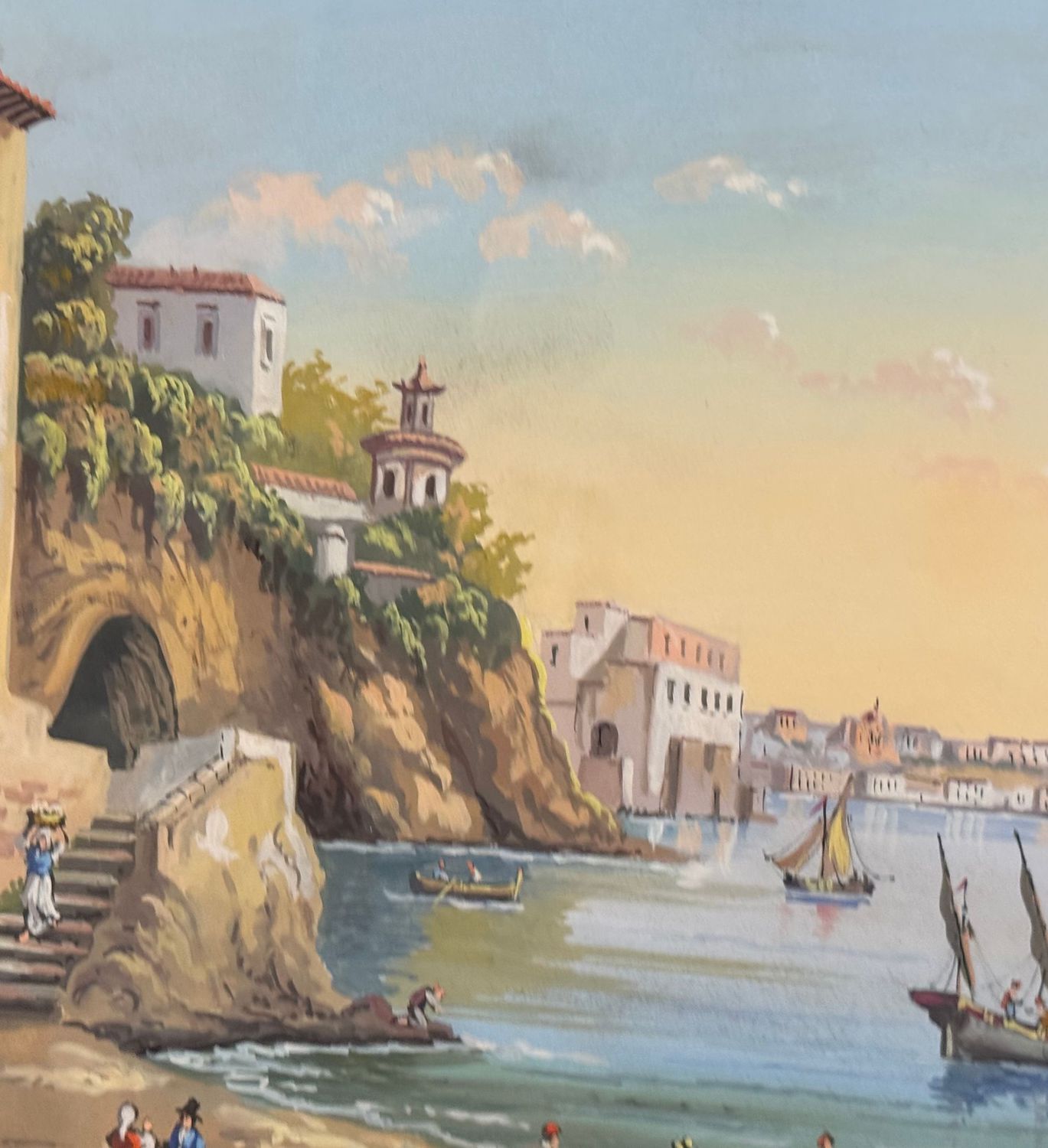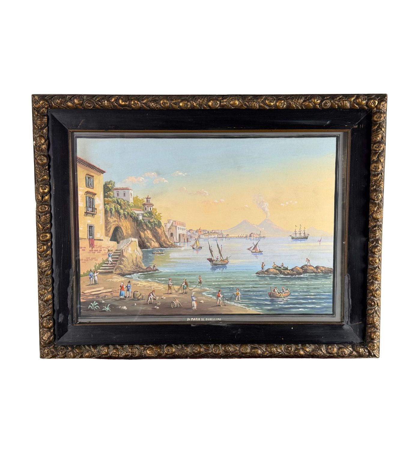 Dipinto guazzo (tempera su carta), periodo XX secolo, scuola Italiana, raffigurante Il mare di Posillipo. Dimensioni compreso cornice: 60x47 m. Dimensioni interno cornice: 48x34 cm. Artista anonimo. Opera in buone condizioni. Cornice da restaurare.