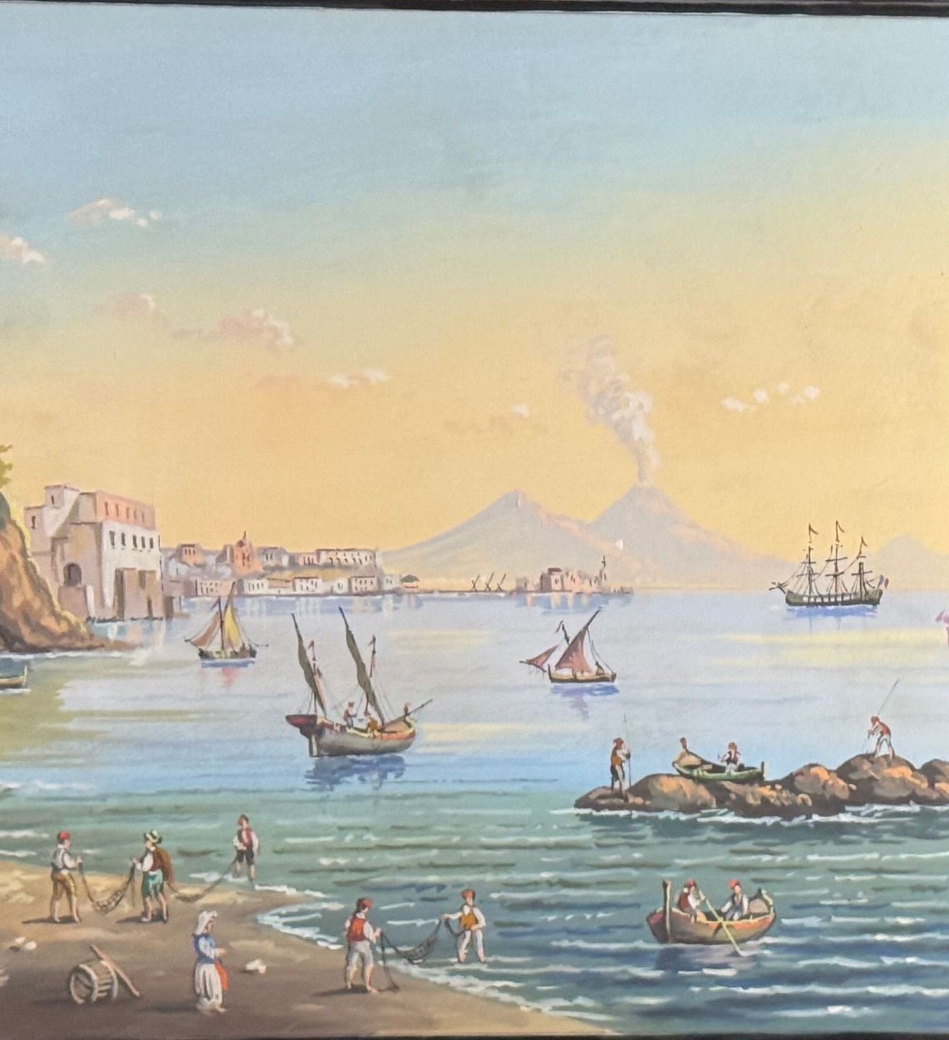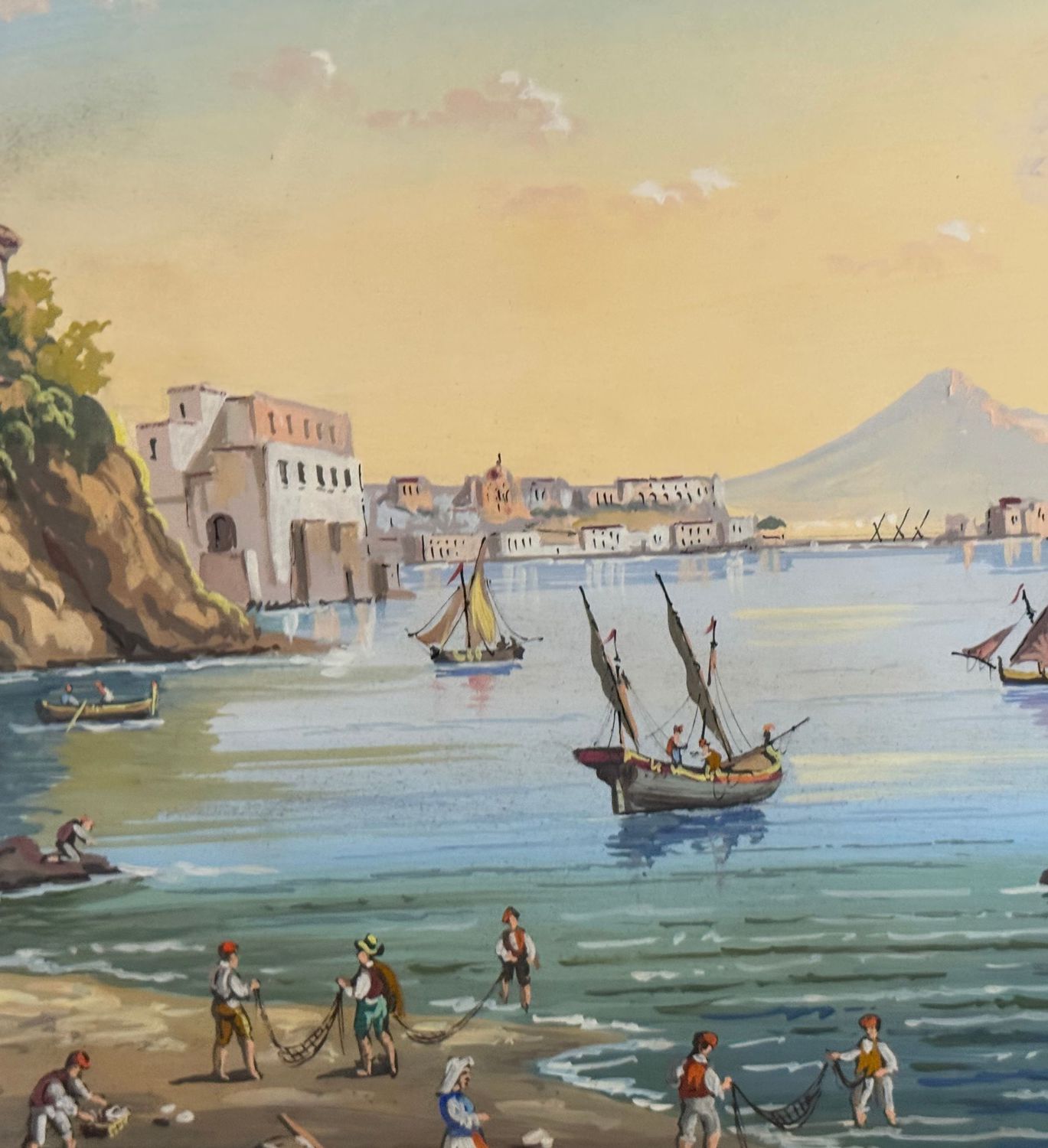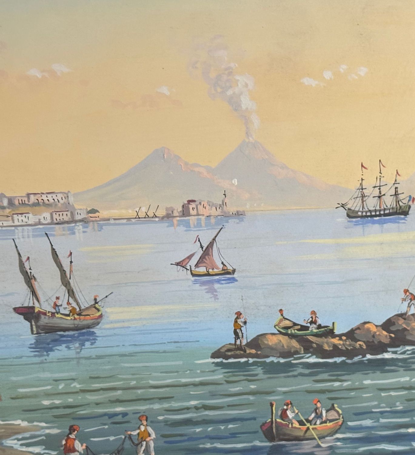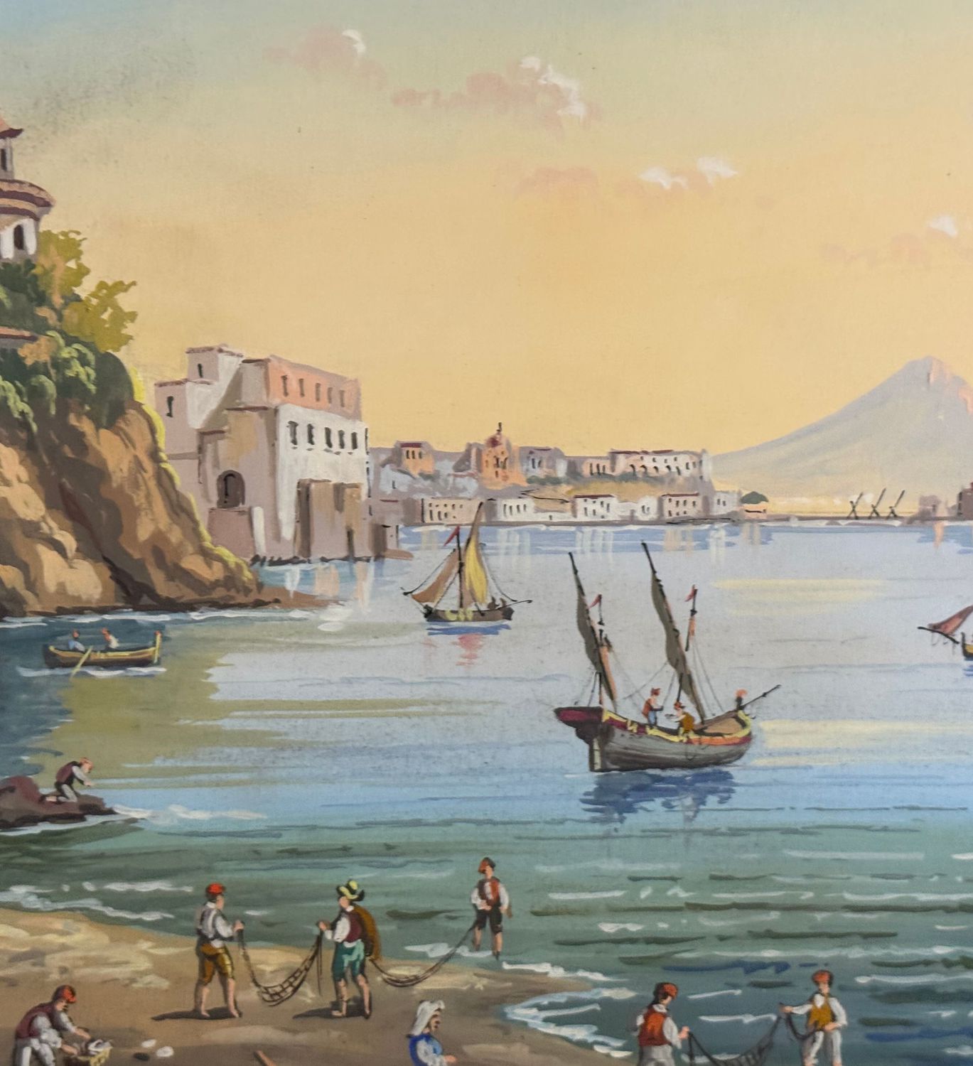 Dipinto guazzo (tempera su carta), periodo XX secolo, scuola Italiana, raffigurante Il mare di Posillipo. Dimensioni compreso cornice: 60x47 m. Dimensioni interno cornice: 48x34 cm. Artista anonimo. Opera in buone condizioni. Cornice da restaurare.