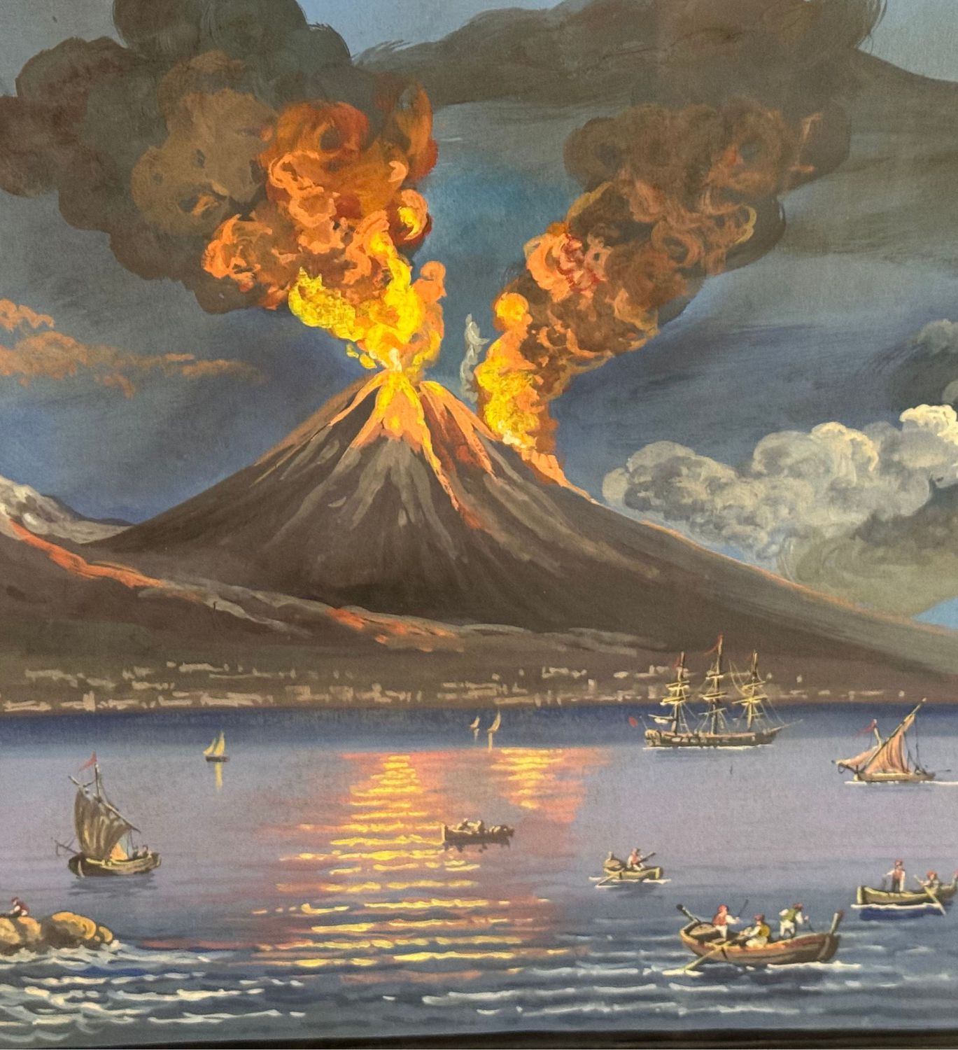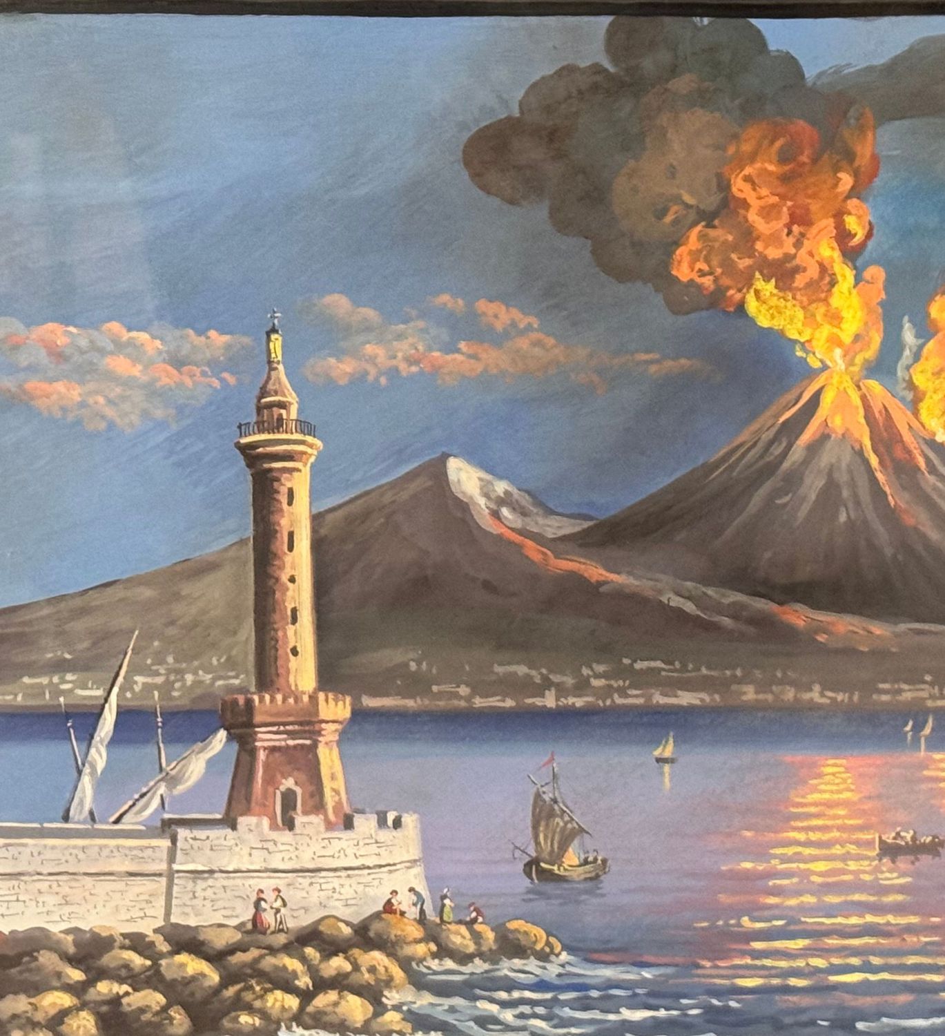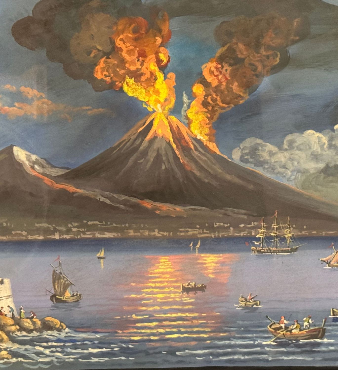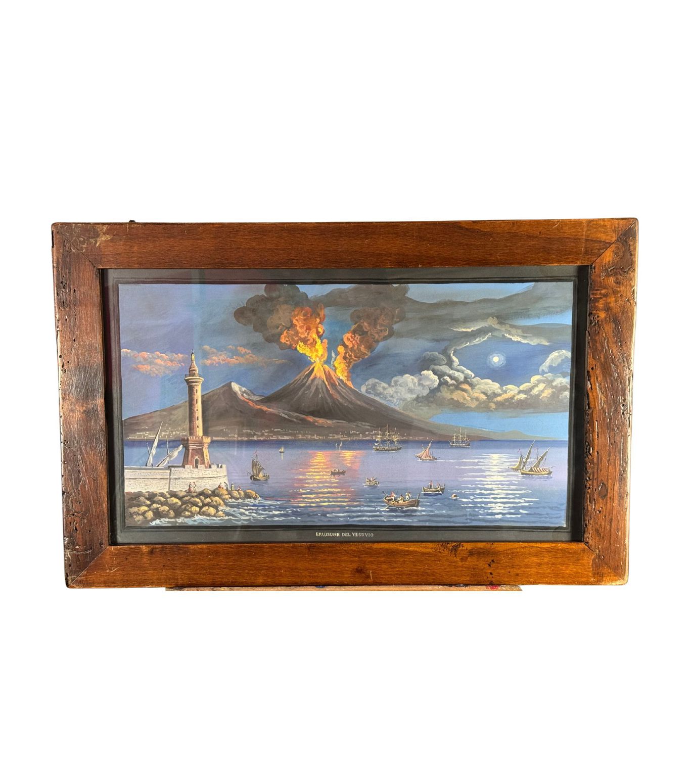 Dipinto guazzo (tempera su carta), periodo XX secolo, scuola Italiana, raffigurante Eruzione del Vesuvio. Dimensioni compreso cornice: 76x48 cm. Dimensioni interno cornice: 64x37 cm. Artista anonimo. Opera in buone condizioni. Cornice da restaurare.