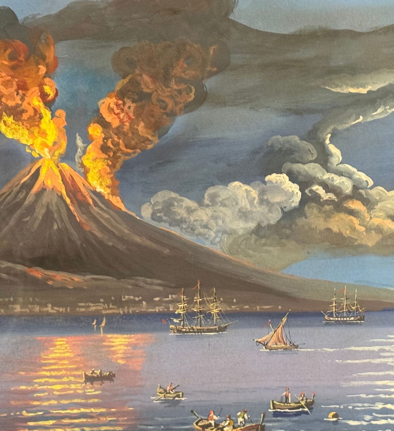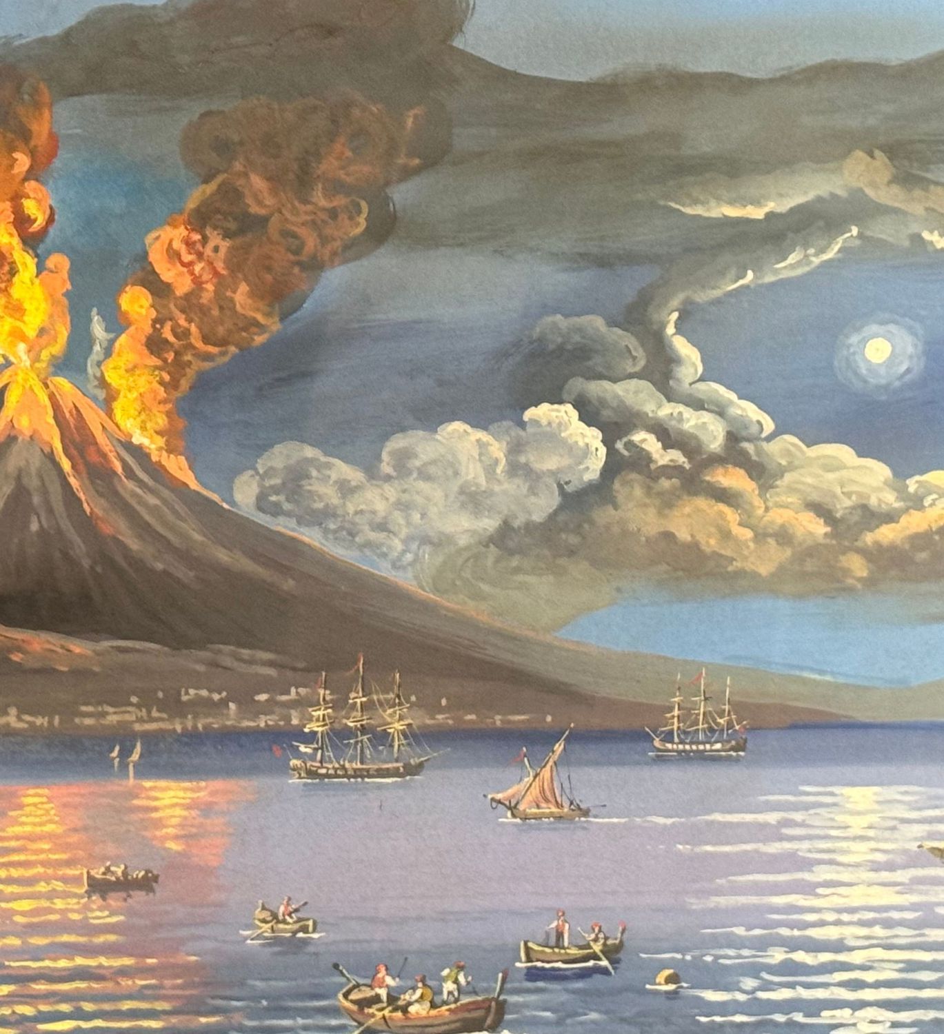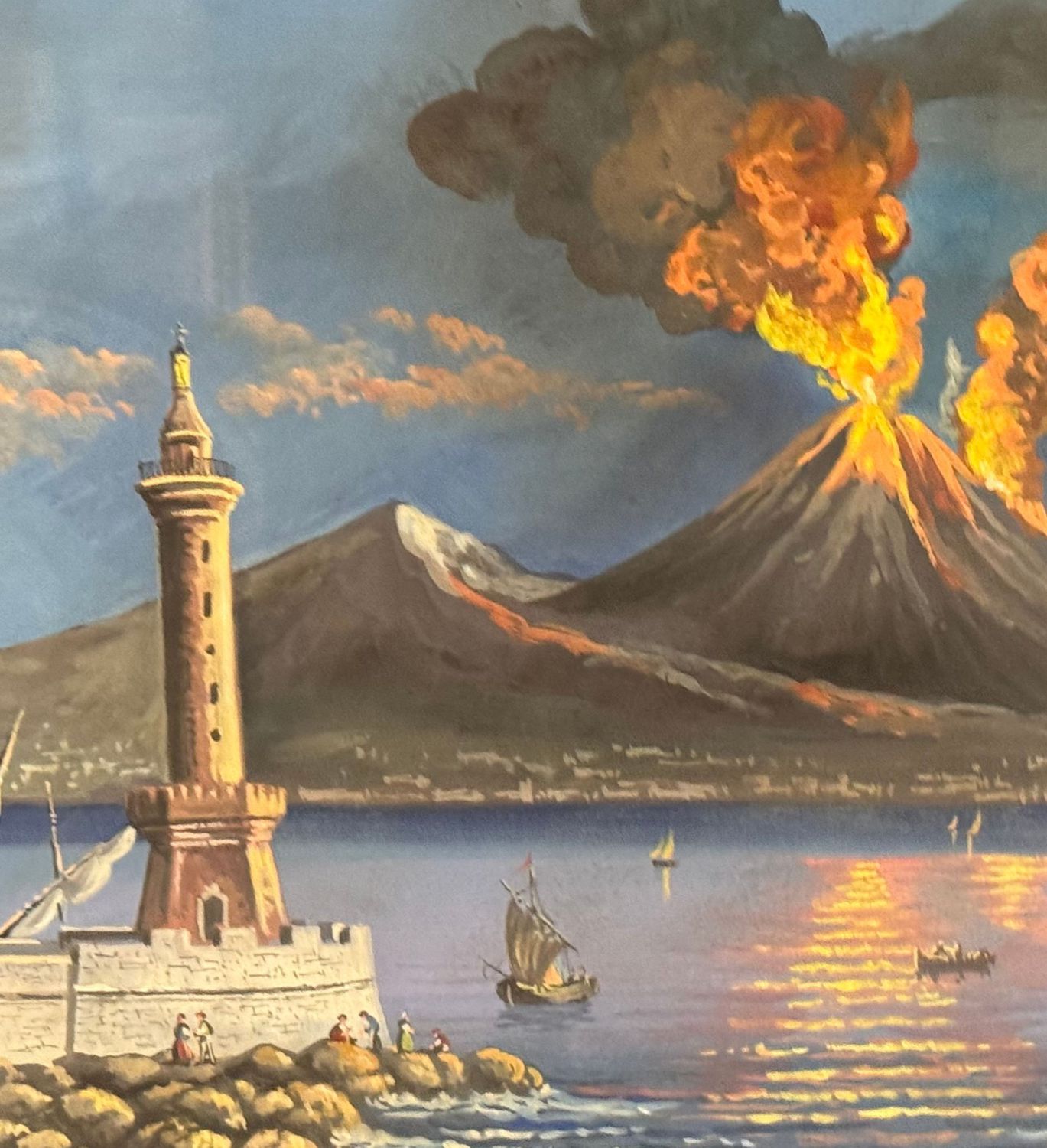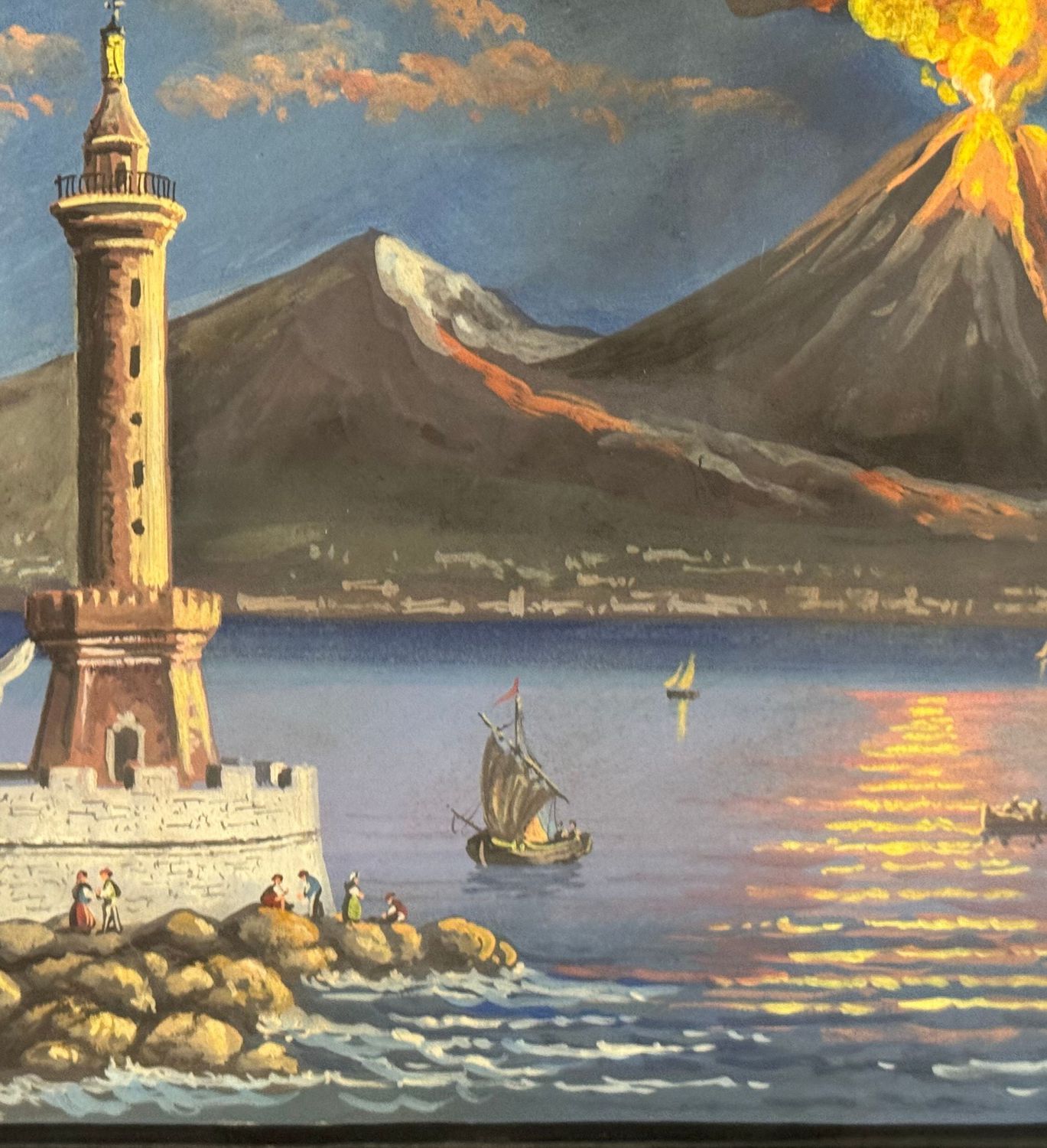 Dipinto guazzo (tempera su carta), periodo XX secolo, scuola Italiana, raffigurante Eruzione del Vesuvio. Dimensioni compreso cornice: 76x48 cm. Dimensioni interno cornice: 64x37 cm. Artista anonimo. Opera in buone condizioni. Cornice da restaurare.