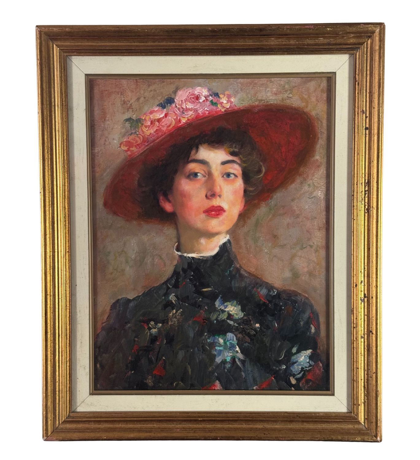 Dipinto olio su cartoncino telato, periodo XX secolo, scuola Italiana, raffigurante Ritratto di donna con cappello. Dimensioni compreso cornice: 40x49 cm. Dimensioni interno cornice: 30x40 cm. Artista anonimo. Opera in buone condizioni.