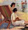 Dipinto olio su cartoncino telato, periodo XX secolo, scuola Italiana, raffigurante Bagnanti. Dimensioni compreso cornice: 54x44 cm. Dimensioni interno cornice: 30x40 cm. Firmato in basso a destra artista non identificato. Opera in buone condizioni.
