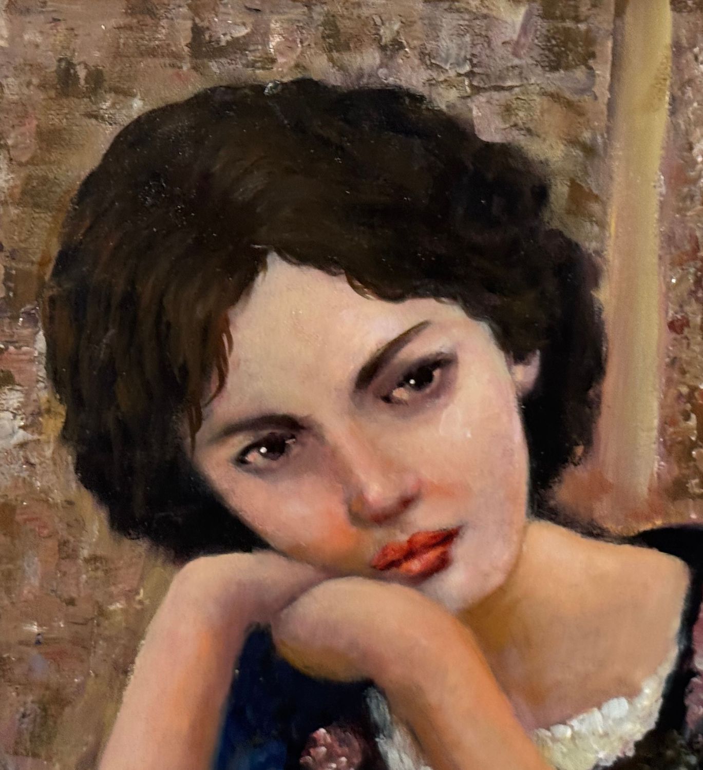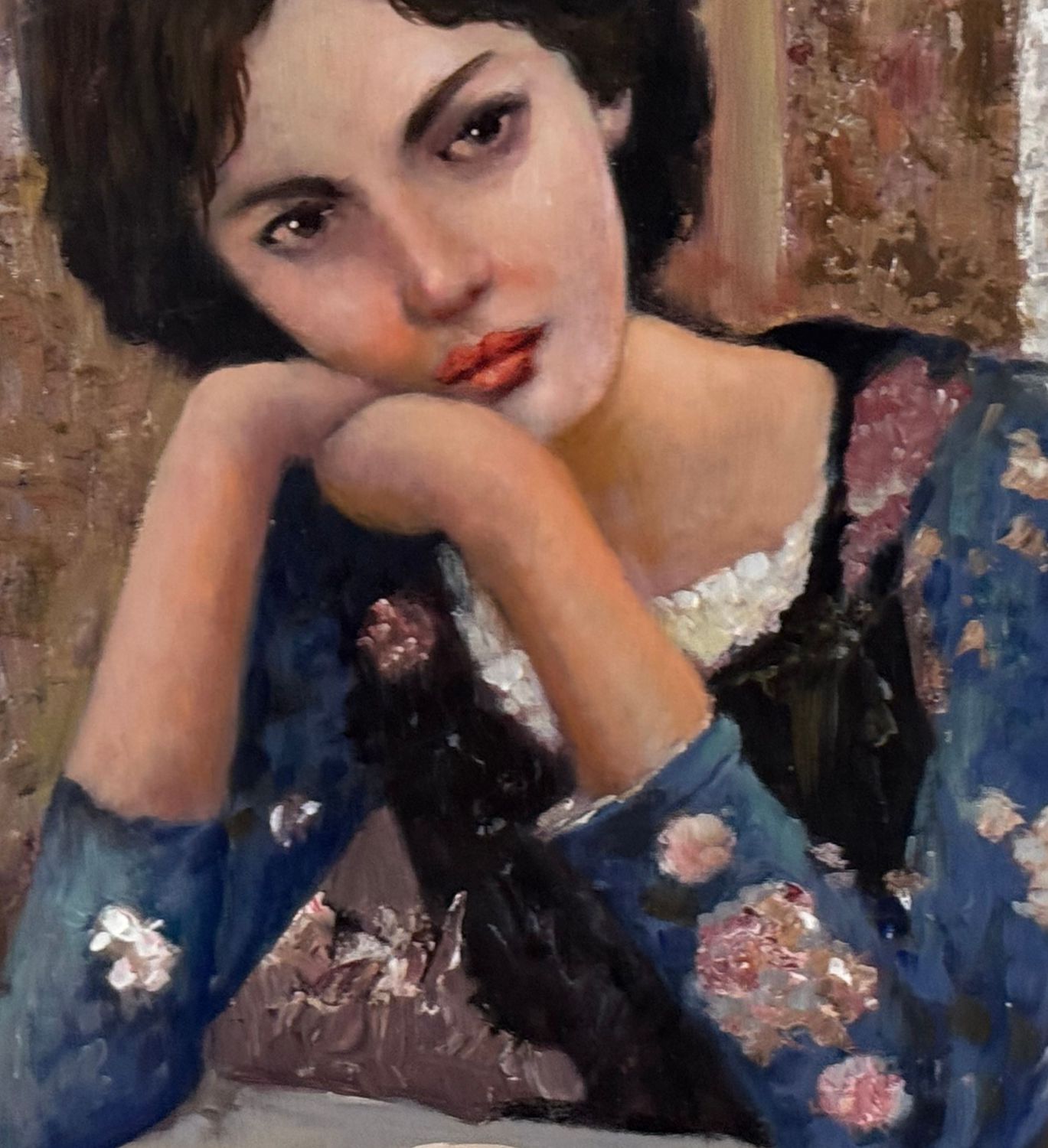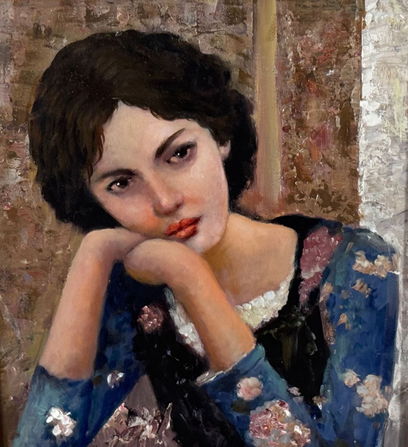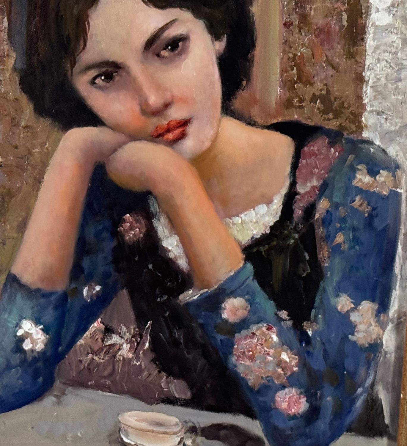 Dipinto olio su cartoncino telato, periodo XX secolo, scuola Italiana, raffigurante Ritratto di giovane donna al bar. Dimensioni compreso cornice: 37x47 cm. Dimensioni interno cornice: 30x40 cm. Artista anonimo. Opera in buone condizioni.